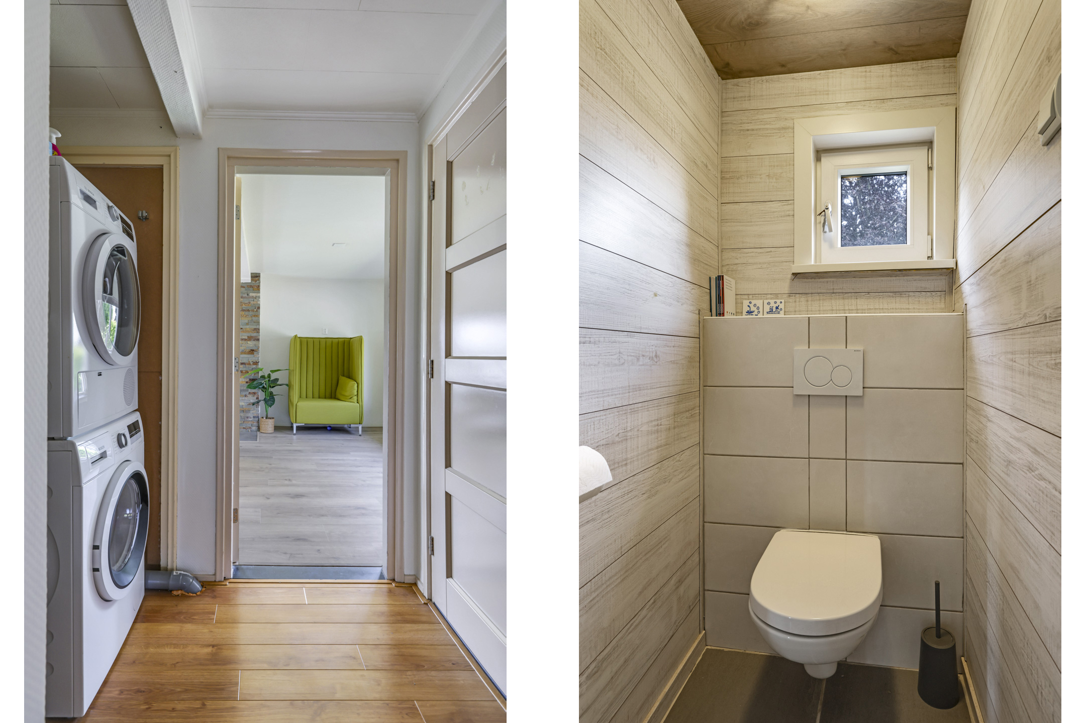 Praktische bijkeuken met extra keukenopstelling en witgoedaansluitingen