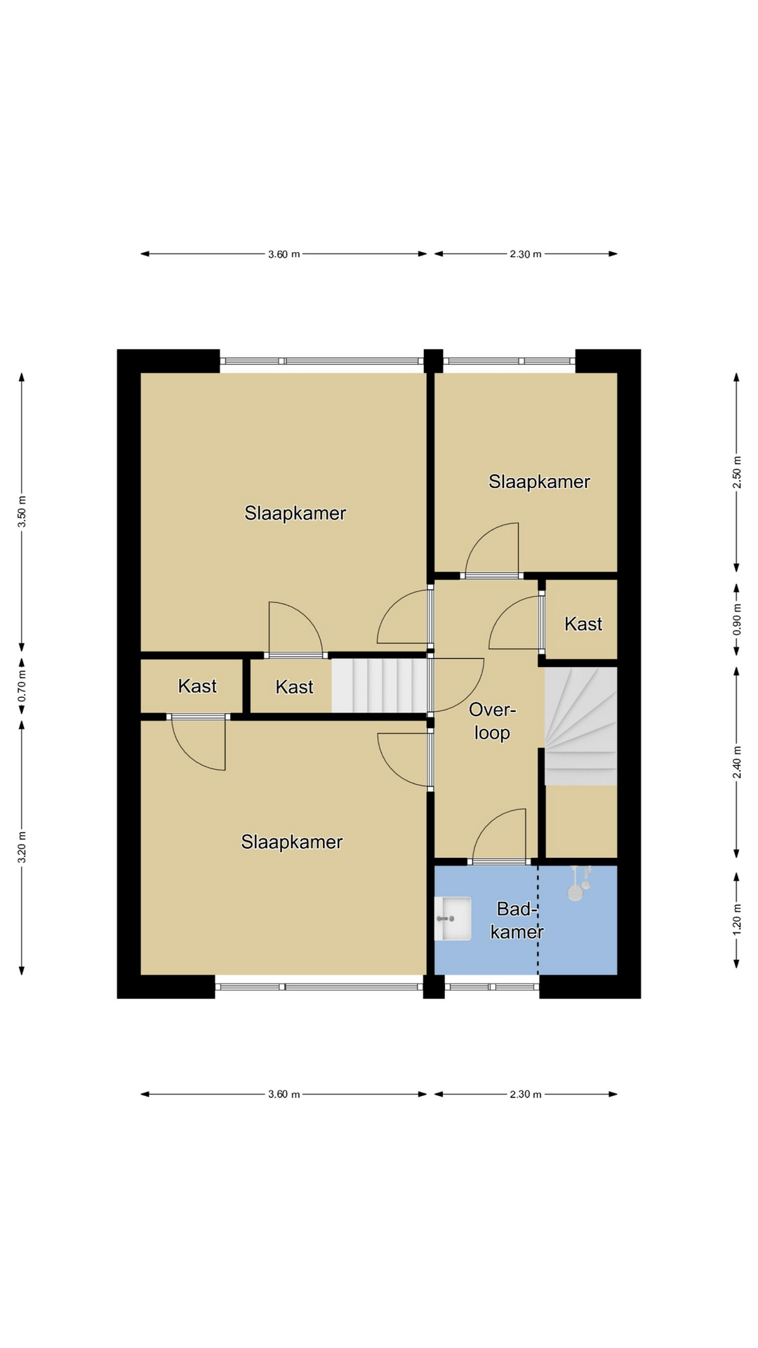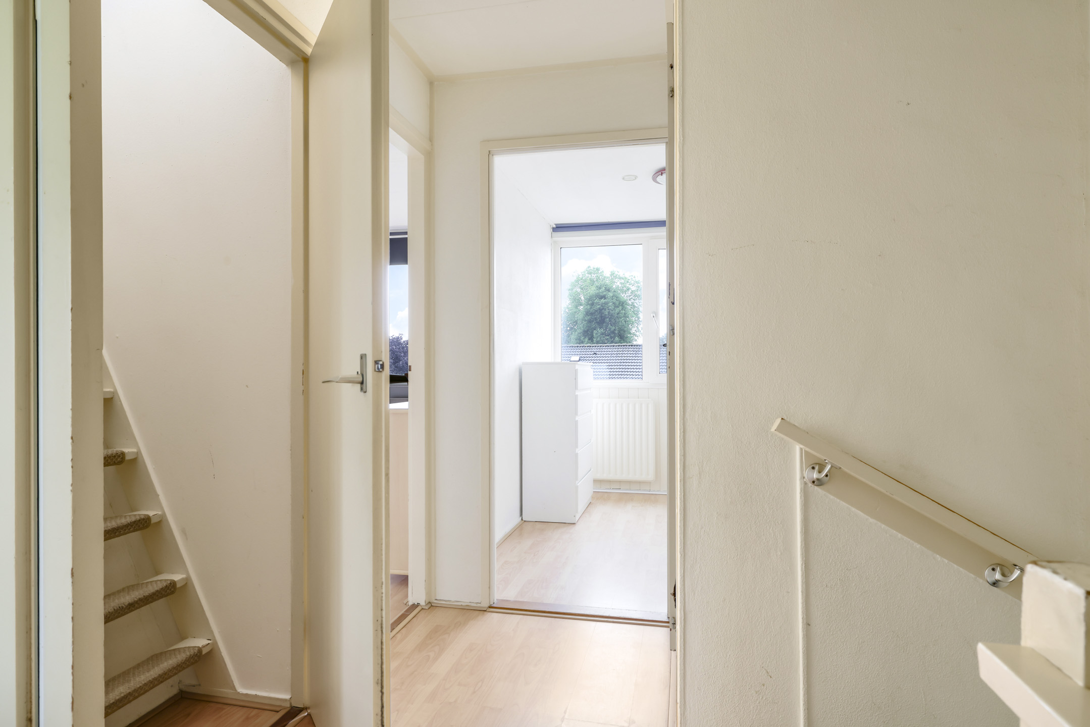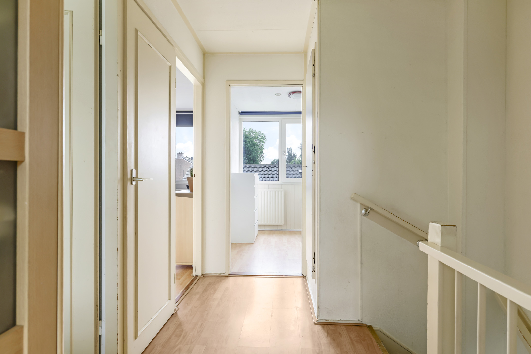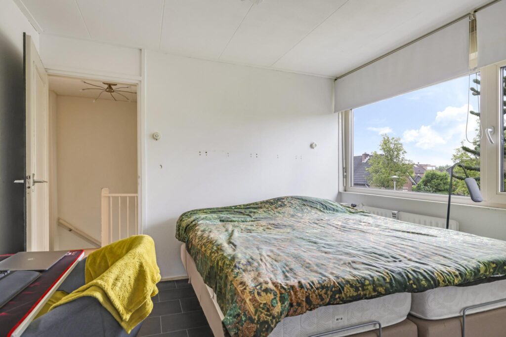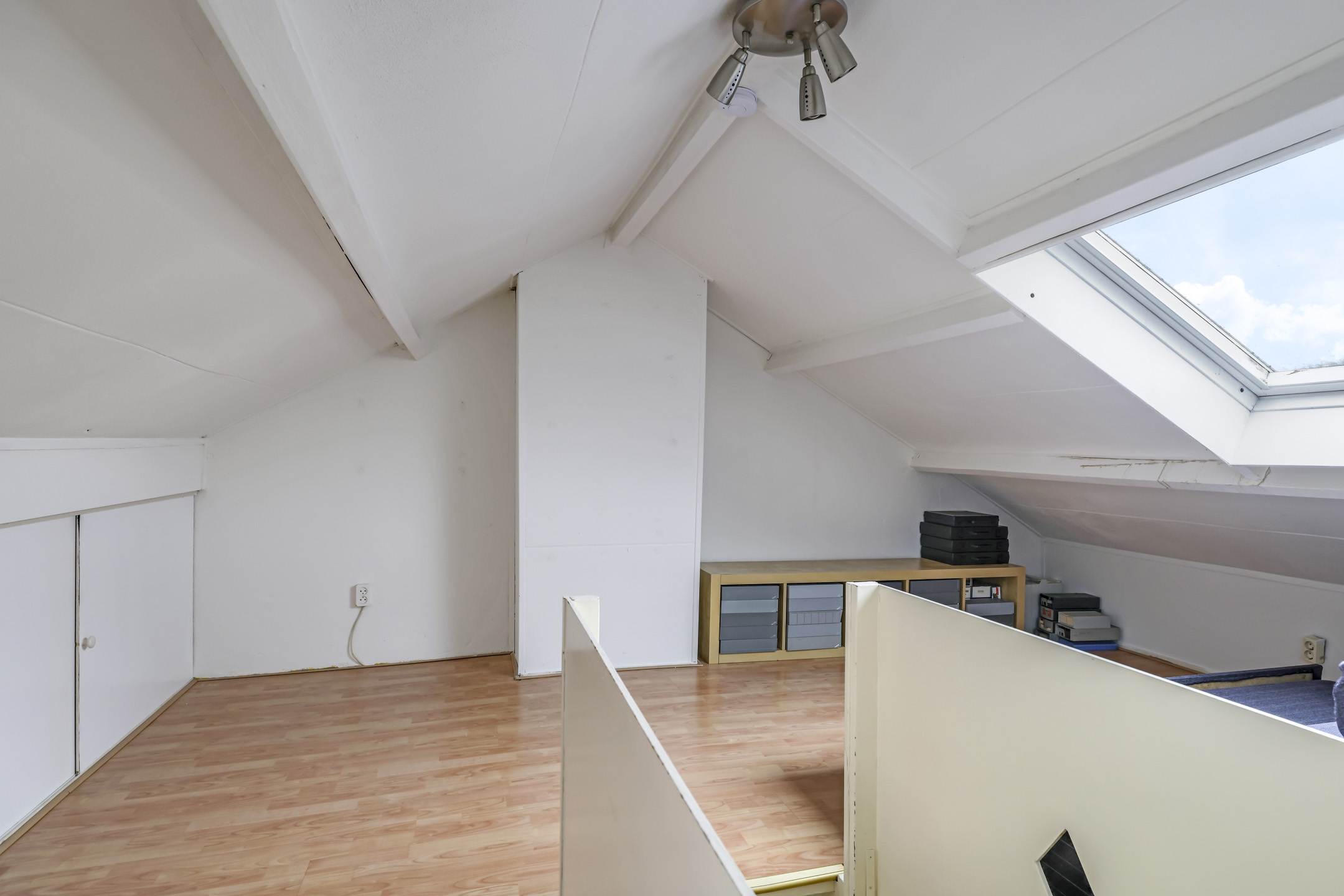 Tussen de 2 grootste slaapkamers op de 1e verdieping in, zit een vaste, afgesloten trapopgang naar de 2e verdieping. Hierdoor is de 2e verdieping eenvoudig te bereiken. Deze woonlaag met stahoogte biedt veel opbergruimte en plaats voor de opstelling van de cv-ketel. Door de aanwezigheid van een vaste trap kan je hier ook een 4e slaapkamer creëren. Eventueel in combinatie met een dakkapel om de leefruimte te vergroten. 2 dakramen bieden in de huidige situatie een fijn lichtinval.