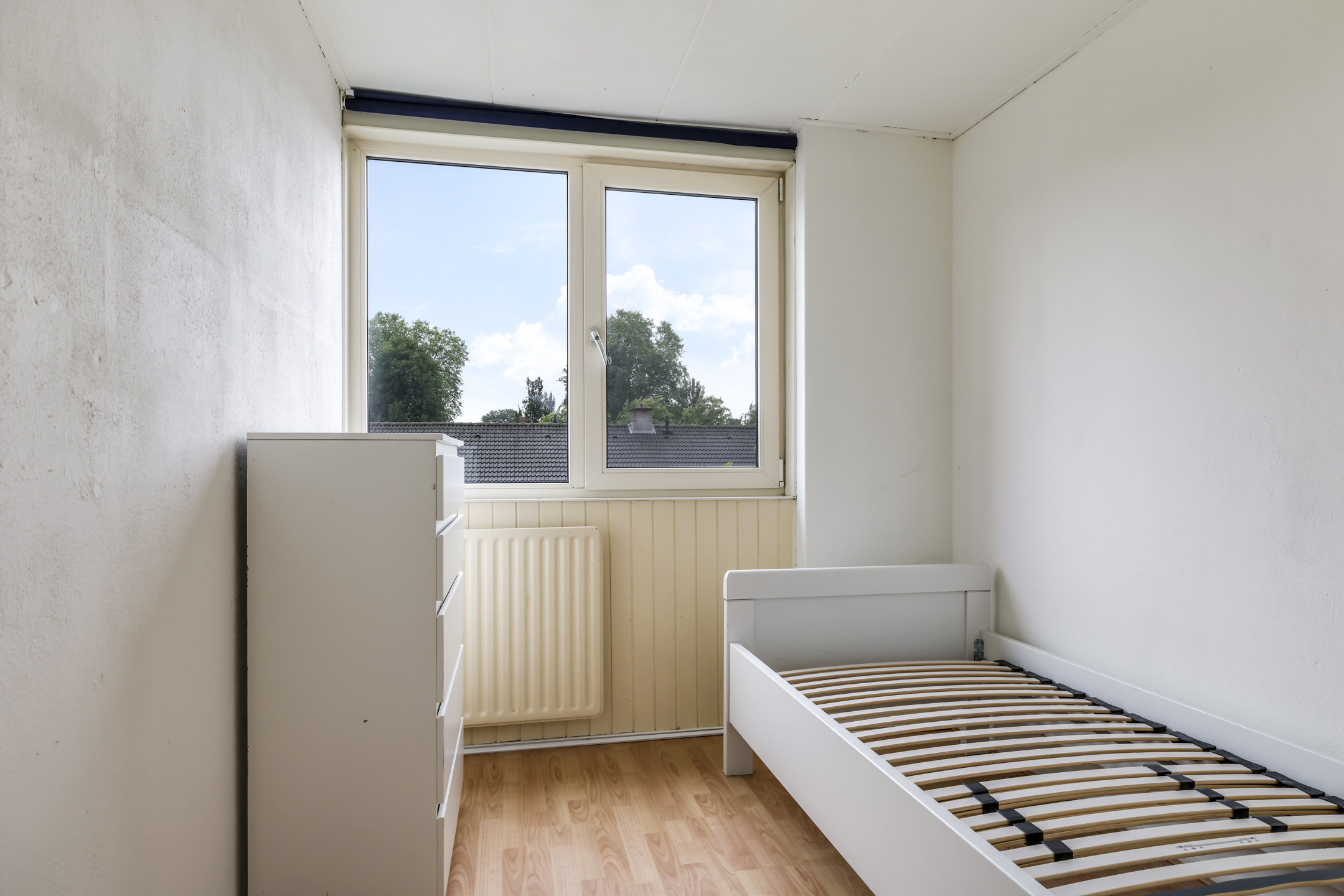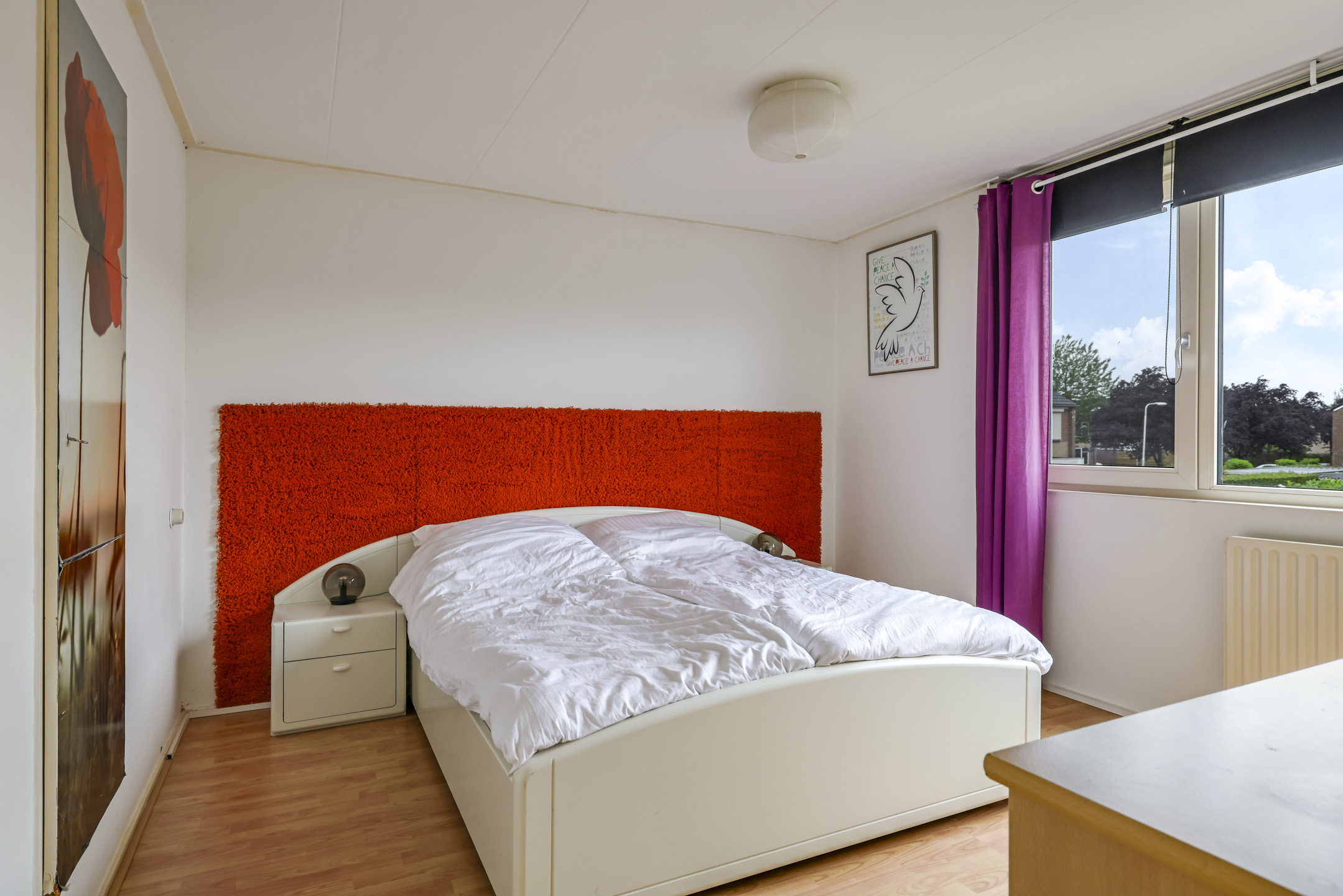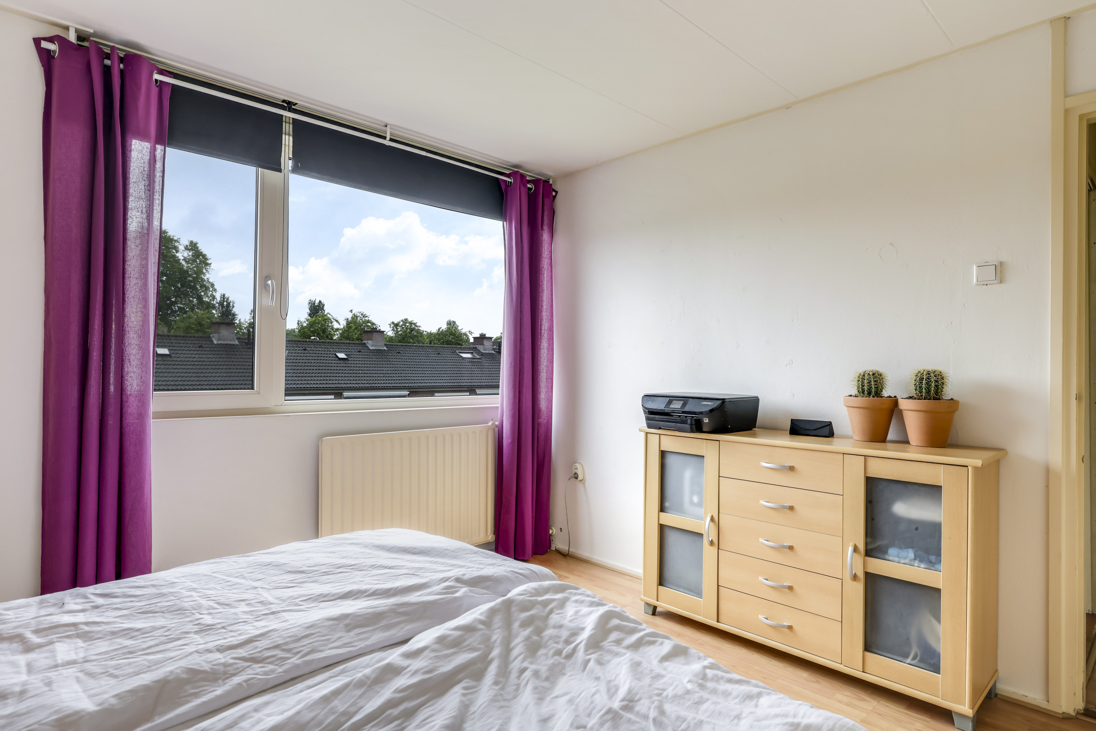 prettige opbergruimte biedt. De slaapkamers zijn respectievelijk 13m², 12m² en 6m² groot. De 2 grootste kamers zijn beide voorzien van een vaste inbouwkast. De slaapkamer aan de voorzijde is voorzien van een rolluik. Alle kamers zijn voorzien van eveneens kunststof kozijnen met draai/kiepramen en horren.