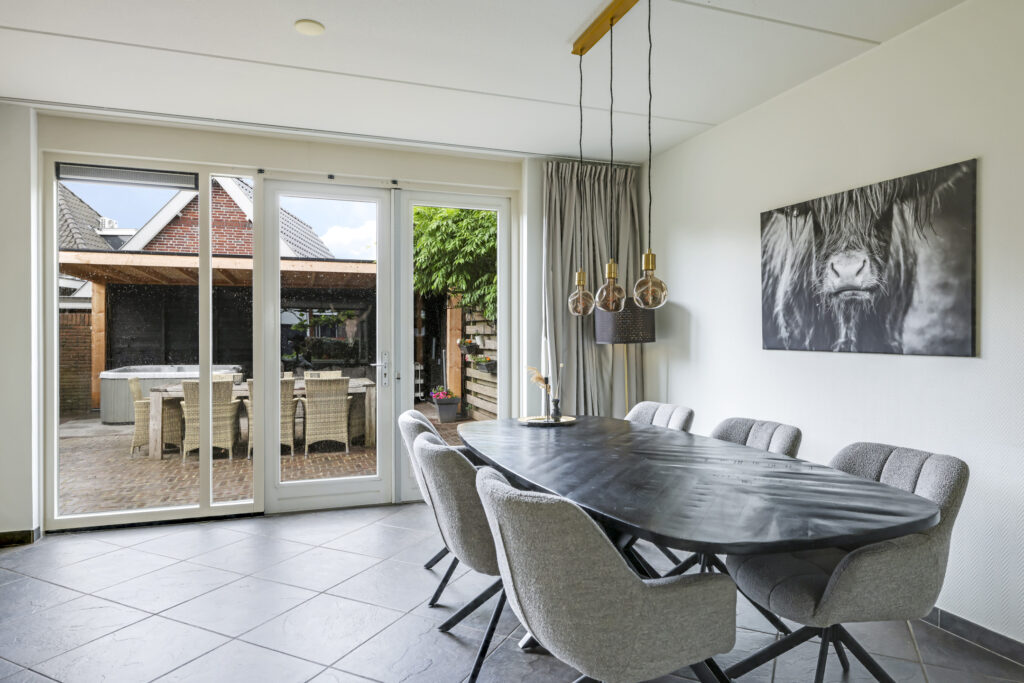 Uitgebouwde leefkeuken met eethoek en dubbele terrasdeuren