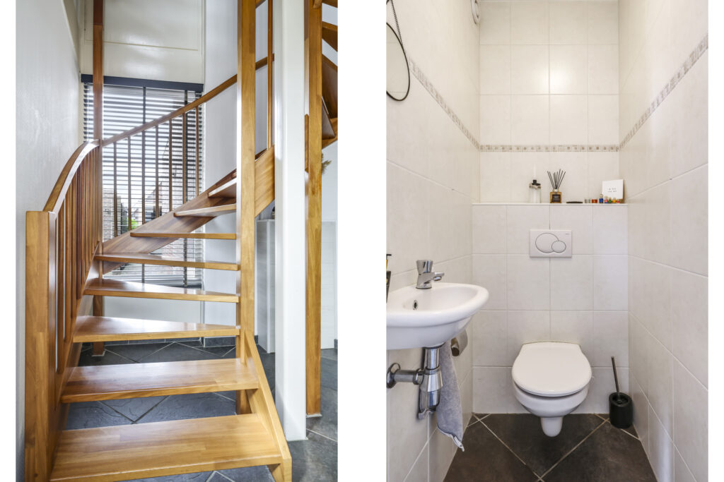 Wanneer je de woning via de hal/entree binnen loopt, dan weet je gelijk wat we bedoelen. De hal loopt namelijk ‘buiten’ de gevel door waarbij grote raampartijen tegenover elkaar voor een bijzondere beleving en lichtinval zorgen. En dat is niet alleen in de hal, maar ook op de overloop en het trappenhuis naar de 2e verdieping.