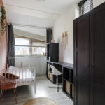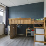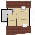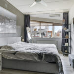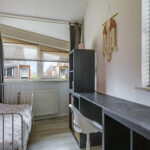 De bovenste woonlaag mag met recht verrassend genoemd worden. Niet alleen vanwege de lessenaarskap met hoge ramen in de (3,4 meter hoge) nok, maar ook omdat er nog een extra slaapkamer is gemaakt. Dit betreft een volwaardige slaapkamer van ca. 8m² meter. Dat is gemeten vanaf 1,5 meter hoogte waardoor deze kamer eigenlijk nog groter is. Een groot dakvenster zorgt voor de nodige lichtinval.