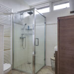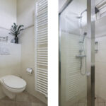 De laatste deur op de overloop is van de badkamer. Deze ruimte is ingedeeld met onder andere een inloopdouche, een wastafelmeubel en een 2e toilet (zwevend geplaatst). Het wastafelmeubel is voorzien van veel opbergruimte waardoor je hier als je toiletspullen en handdoeken kwijt kan. Ook de handdoekradiator ontbreekt niet in de ruimte. Een hooggeplaatst raam zorgt voor lichtinval en een ventilatiemogelijkheid. Ook is er mechanische ventilatie is aanwezig.