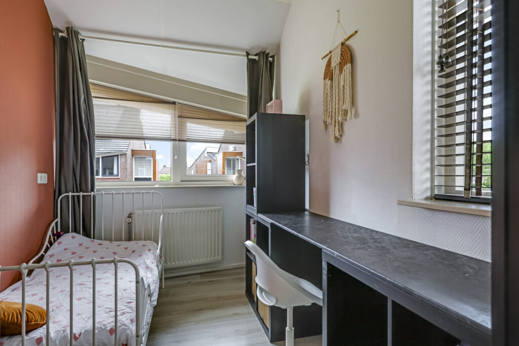 Voor de garage ligt een diepe oprit waardoor je ten alle tijden een auto op eigen terrein kan parkeren. Zo hoef je niet te zoeken naar een beschikbaar in de straat.