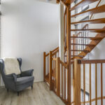 Hardhouten trap naar 1e verdieping wit geschilderd (frisse uitstraling)