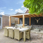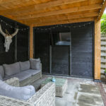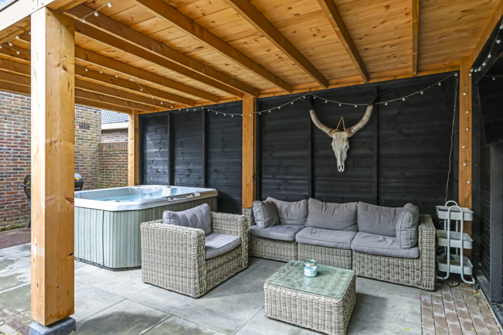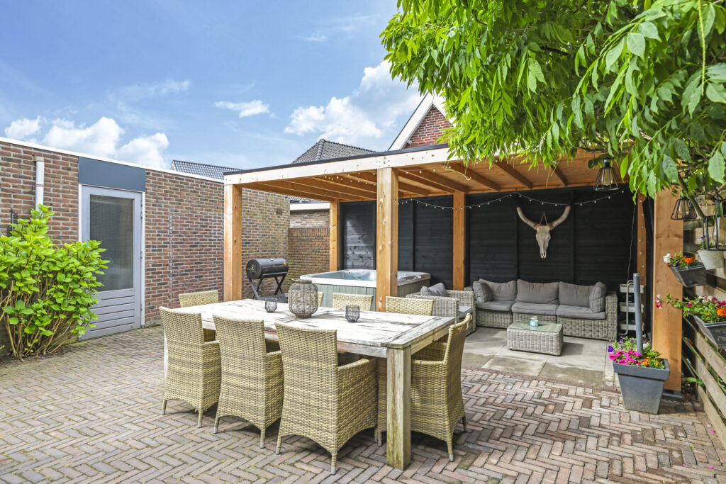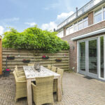Ben je een tuin- en zonliefhebber, dan zal je deze achtertuin zeker aanspreken. Ten eerste omdat deze tuin een gunstige oriëntatie op de zon heeft, namelijk het zuidwesten. Hierdoor vangt de tuin bijna de gehele dag zon. Ten tweede omdat je relatief veel vrijheid en privacy geniet. De achtergelegen (vrijstaande) woningen zijn relatief ‘laag’ waardoor deze nauwelijks opvallen. Nog een pluspunt is de opvallende breedtemaat. De tuin is maar liefst 10 meter breed hetgeen je ook naast de woning zult merken. Achter in de tuin is een sfeervolle verande geplaatst waardoor je hier een heerlijke, beschutte plek hebt om lekker van het buitenleven te kunnen genieten.
