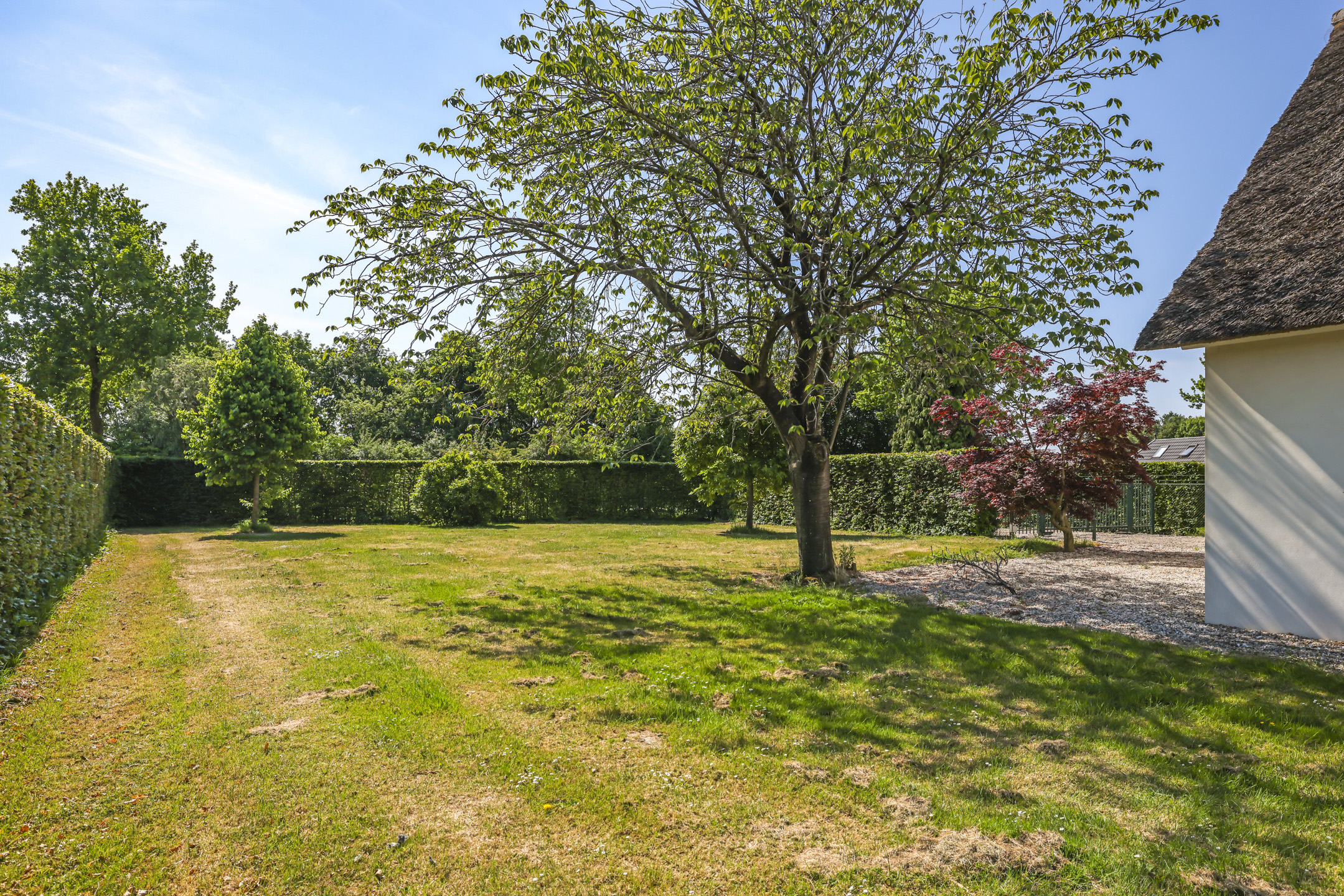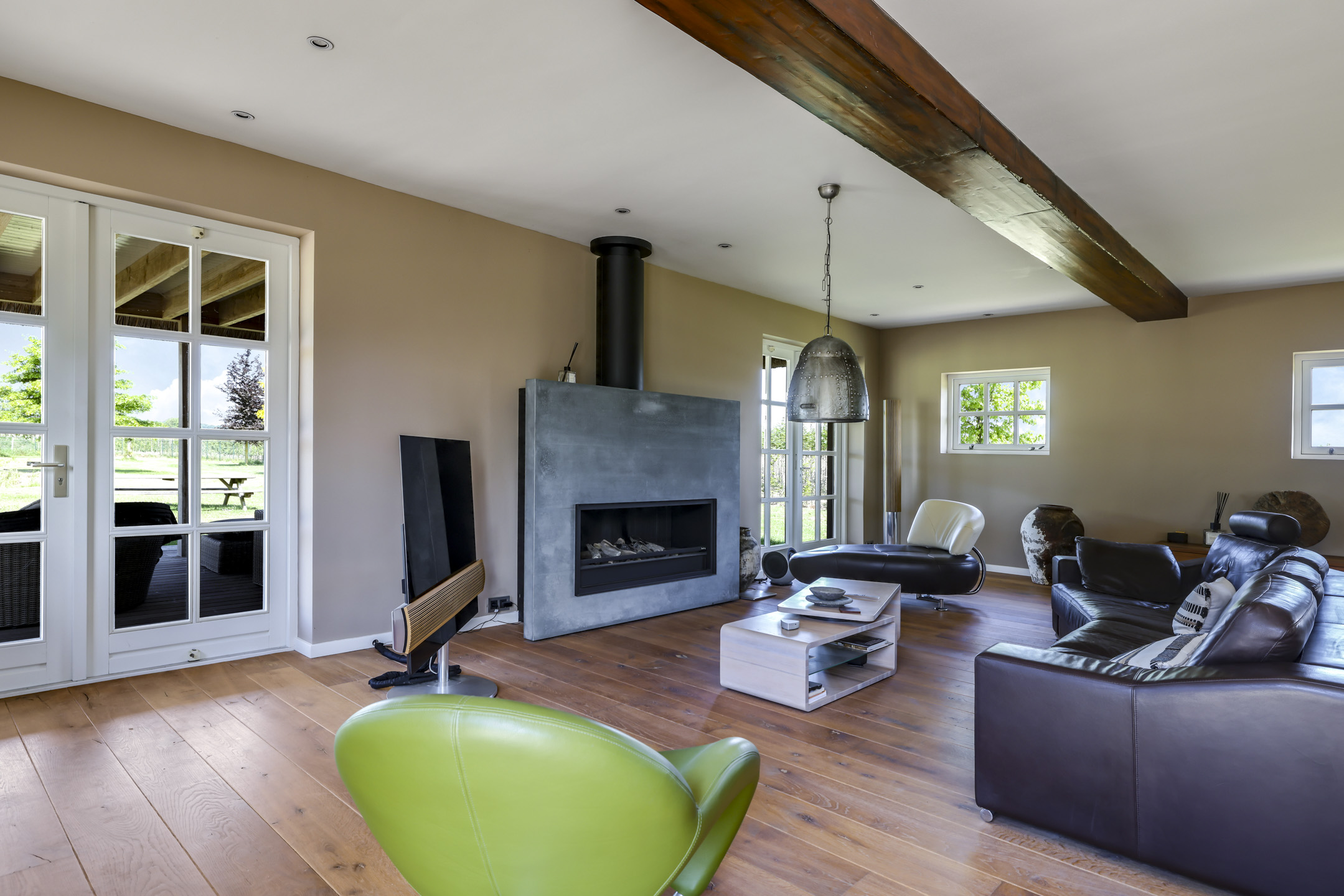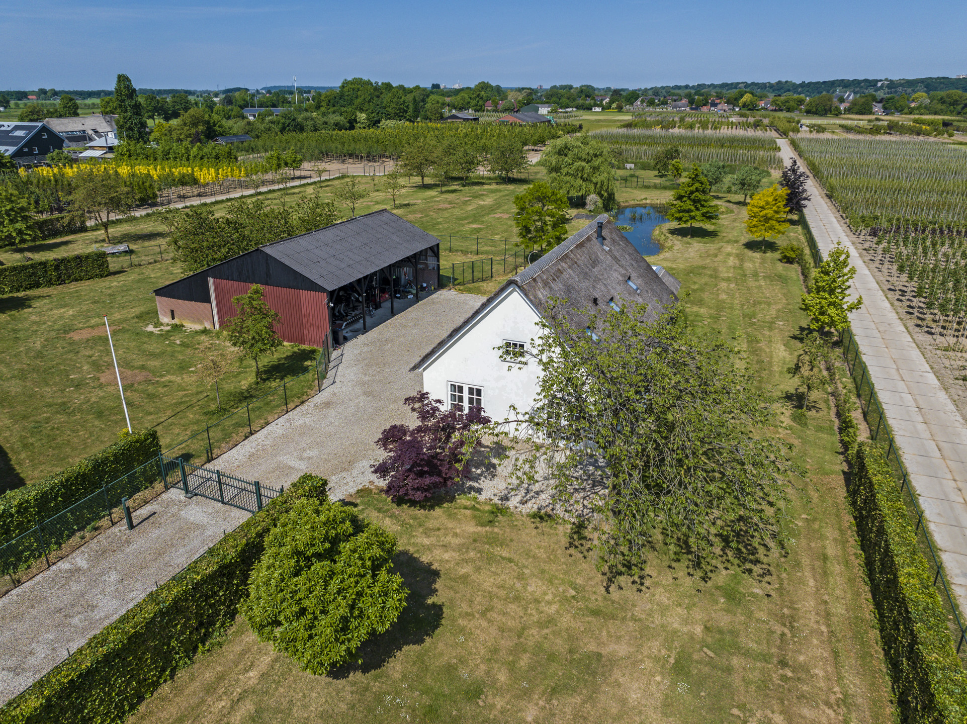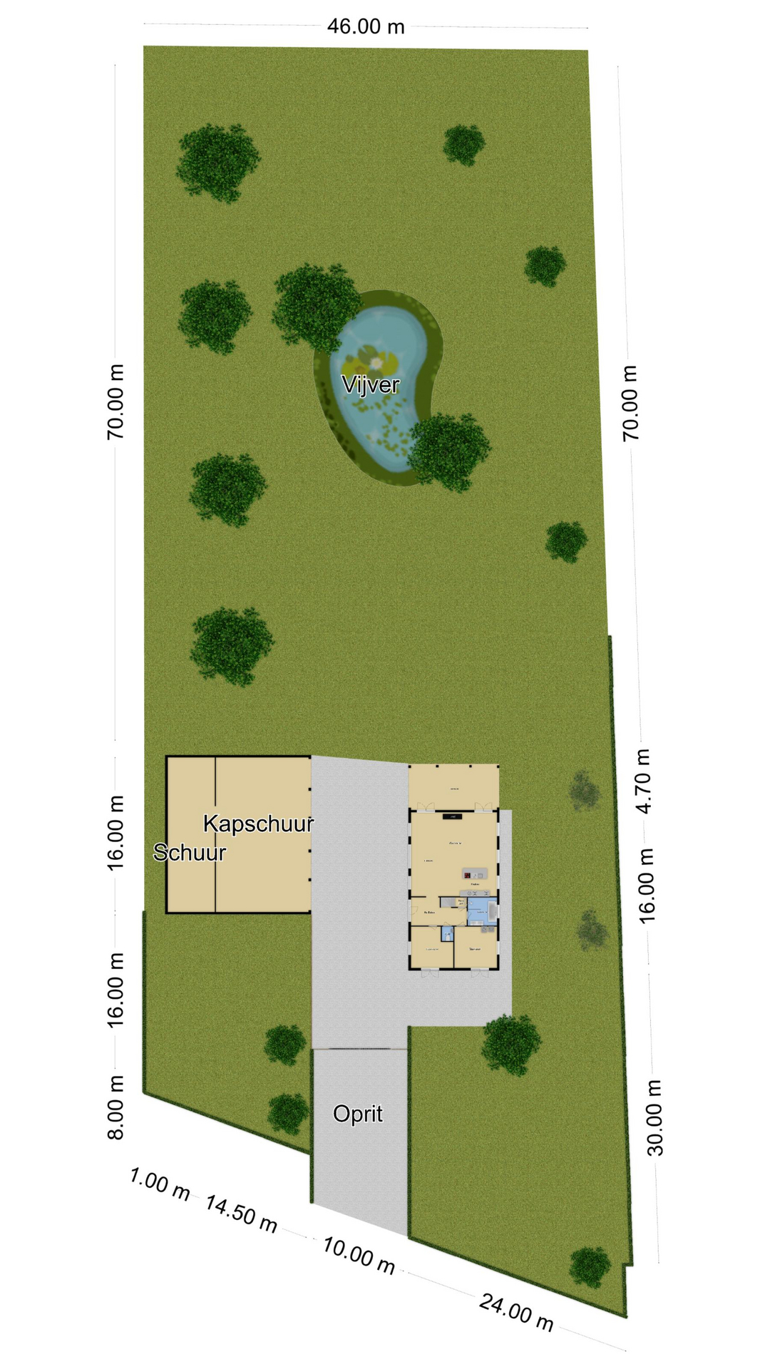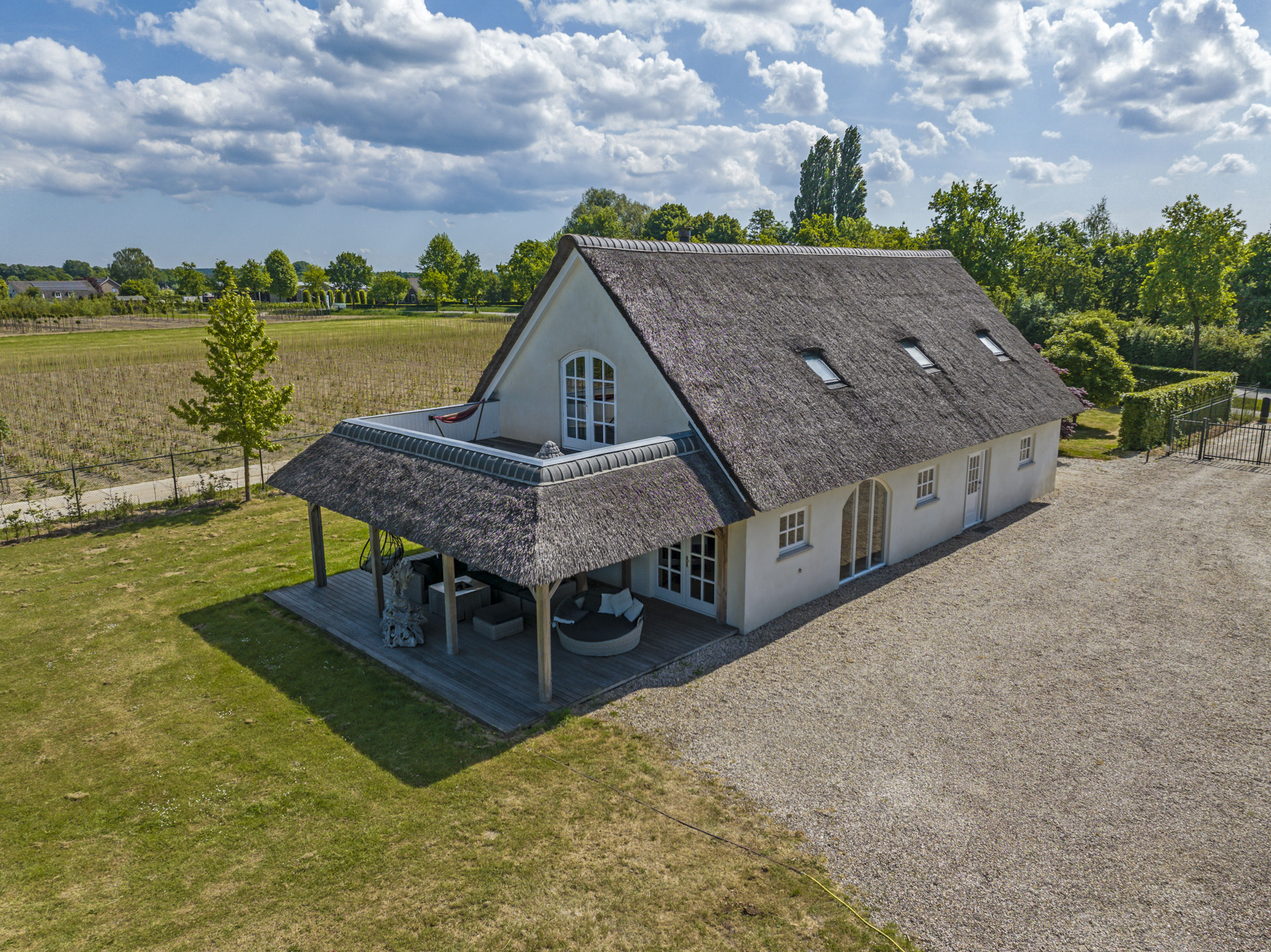 Ben je op zoek naar meer buitenleven, dan zal deze tuin je zeker aanspreken. Aan alle zijden van de woning geniet van je van veel vrijheid en daarmee ook veel privacy. In het midden van de tuin is een grote vijver geplaatst welke zorgt voor veen biodiversiteit in de tuin. Verder in het grasveld tref je verschillende bomen waaronder ook kersenbomen. Direct aan de woning is een veranda van ca. 40m² geplaatst waar je heerlijk kan genieten van het vrije zicht over het erf. Zie jij jezelf hier ’s ochtends al een kopje koffie drinken?