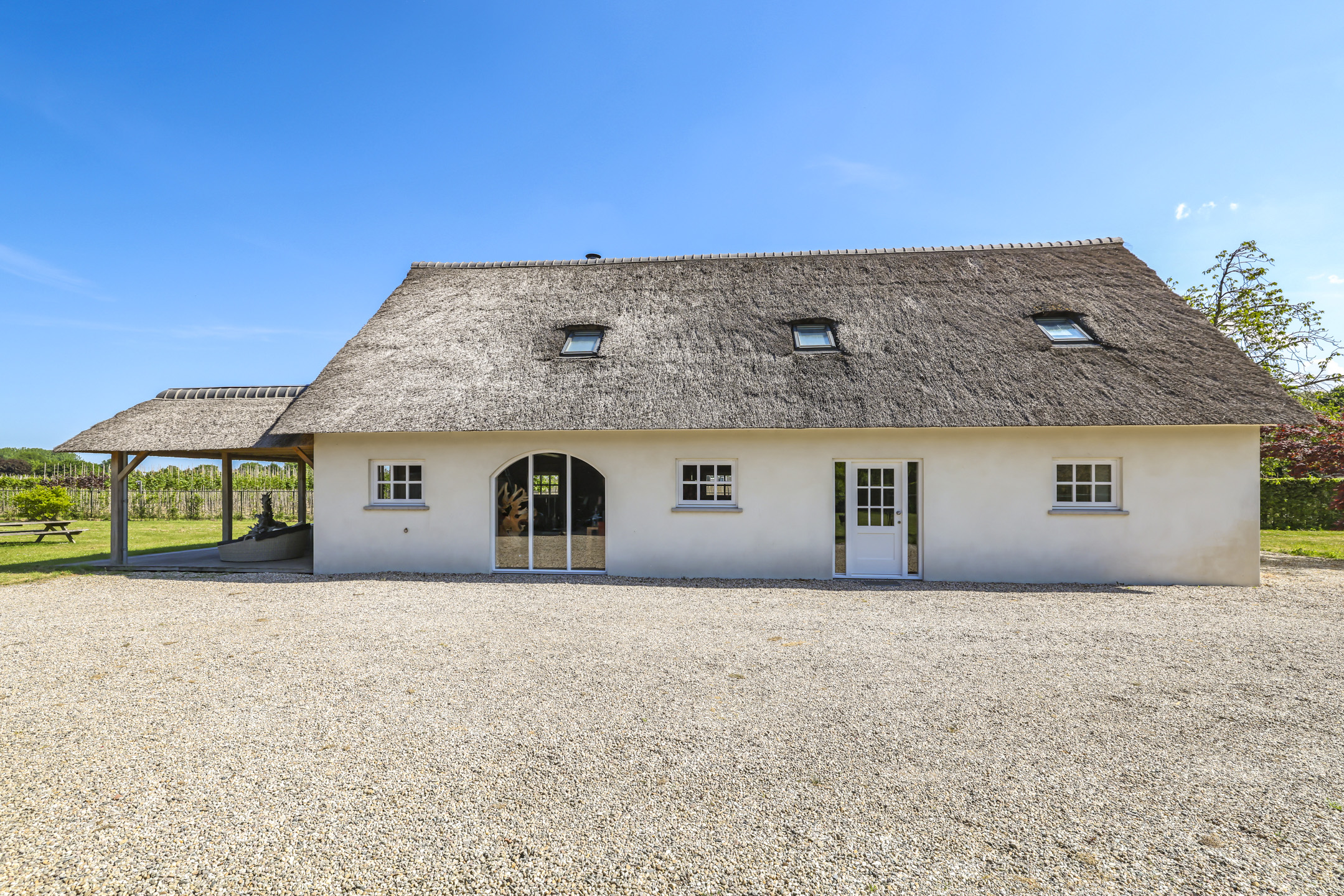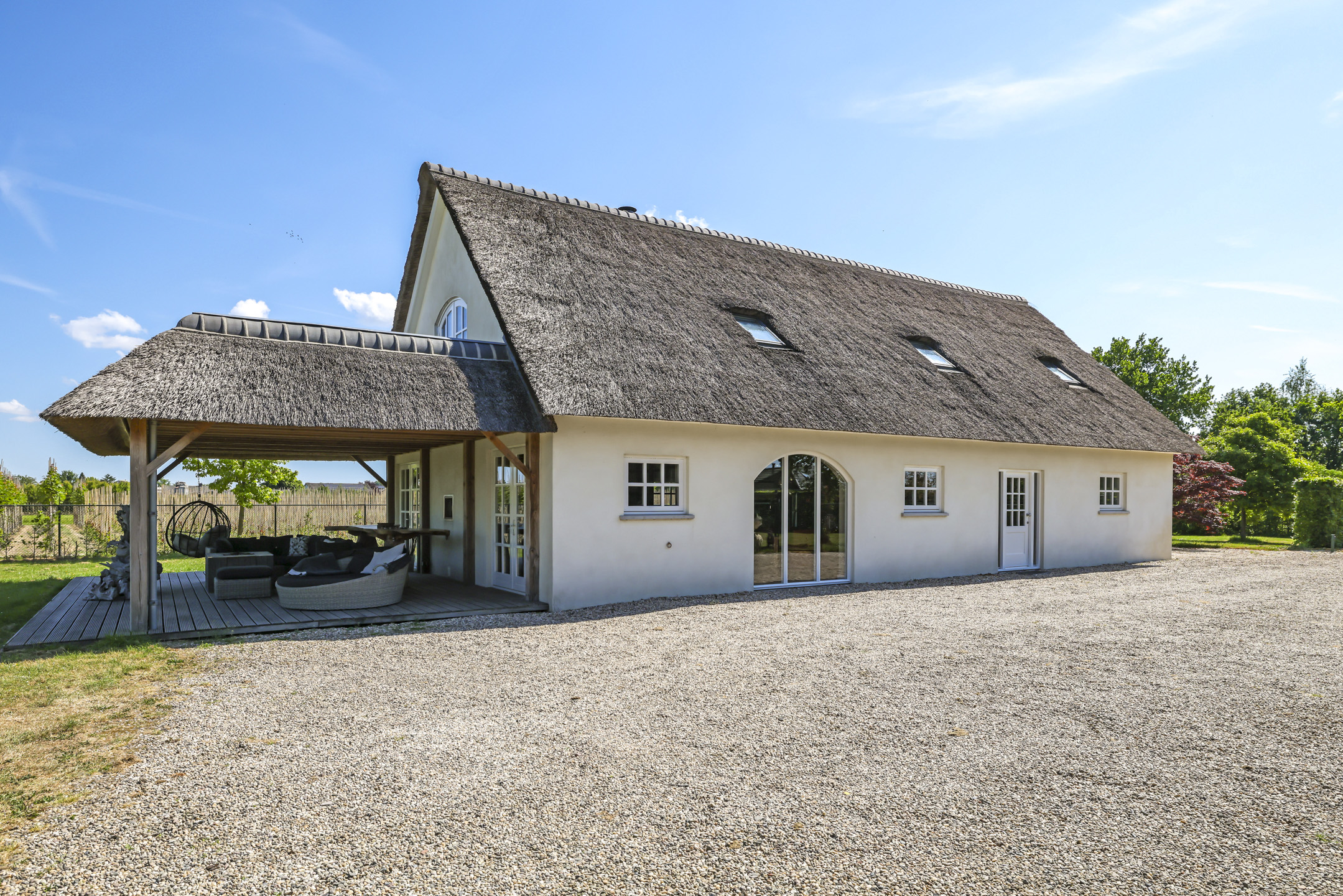 Een witgestucte boerderij met een rietenkap en ramen met roedeverdelingen, bij wie staat dit nu niet op het wensenlijstje. Deze woning is in de loop van de jaren flink onder handen genomen. Zo is de voormalige deel omgetoverd tot een ware living. De voormalige woonkamer en keuken hebben plaats gemaakt voor 2 slaapkamers en een badkamer op de begane grond. Het stukje verduurzaming is hierbij zeker niet overgeslagen. Zo is er gekozen voor een warmtepomp (2025) in combinatie met een 300L elektrische boiler. Vloerverwarming zorgt daarbij voor een aangenaam klimaat. Ook het onderhoud is niet overgeslagen, het buitenschilderwerk is bijvoorbeeld recent nog uitgevoerd. Krijg jij al zin om van deze woning je nieuwe thuis te maken?