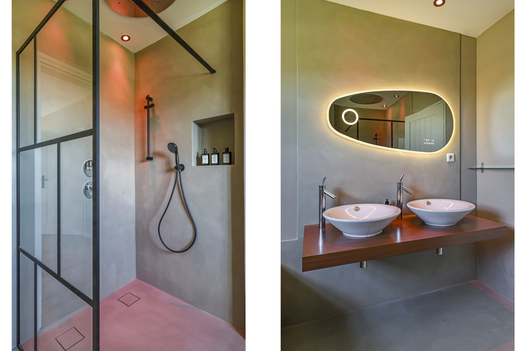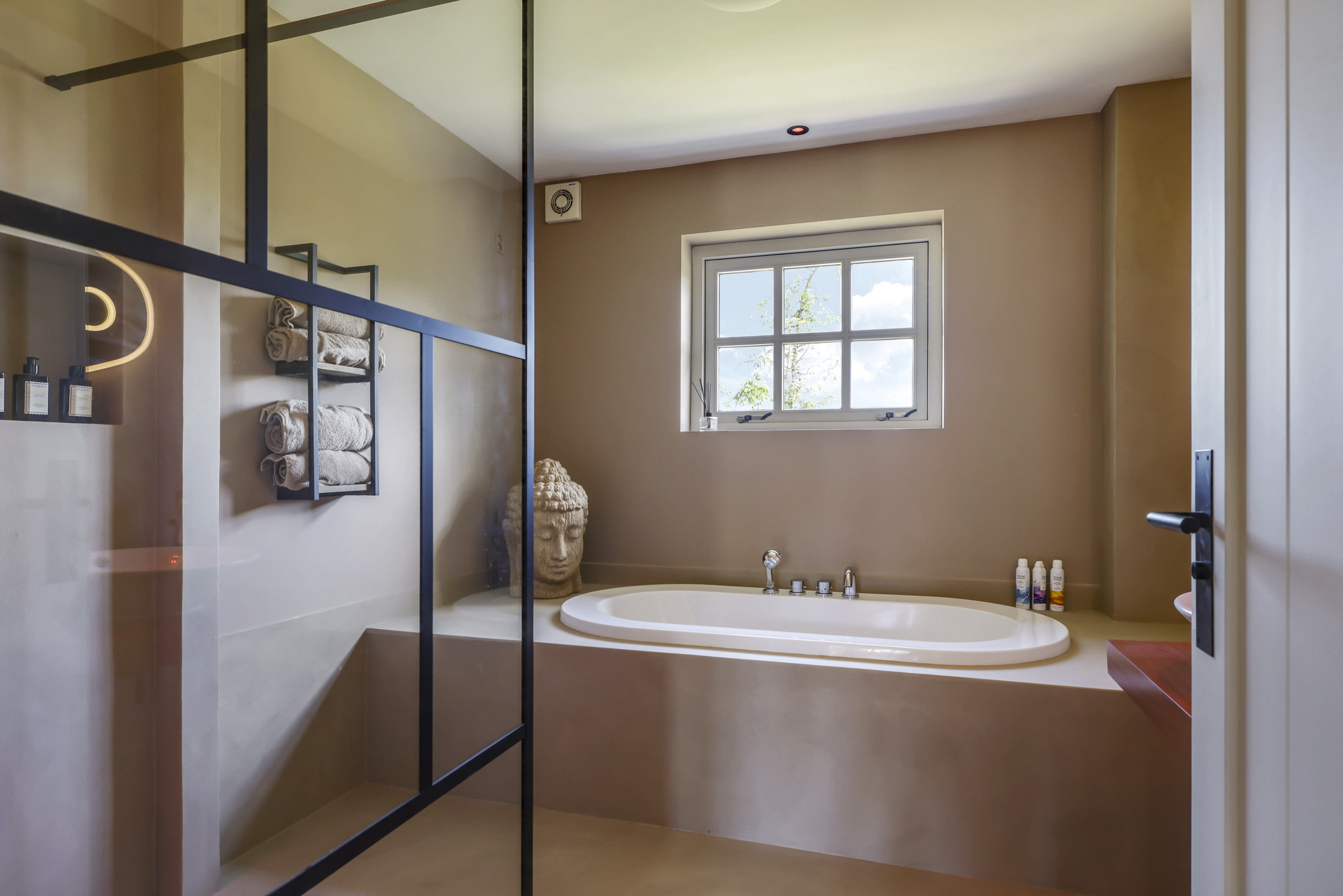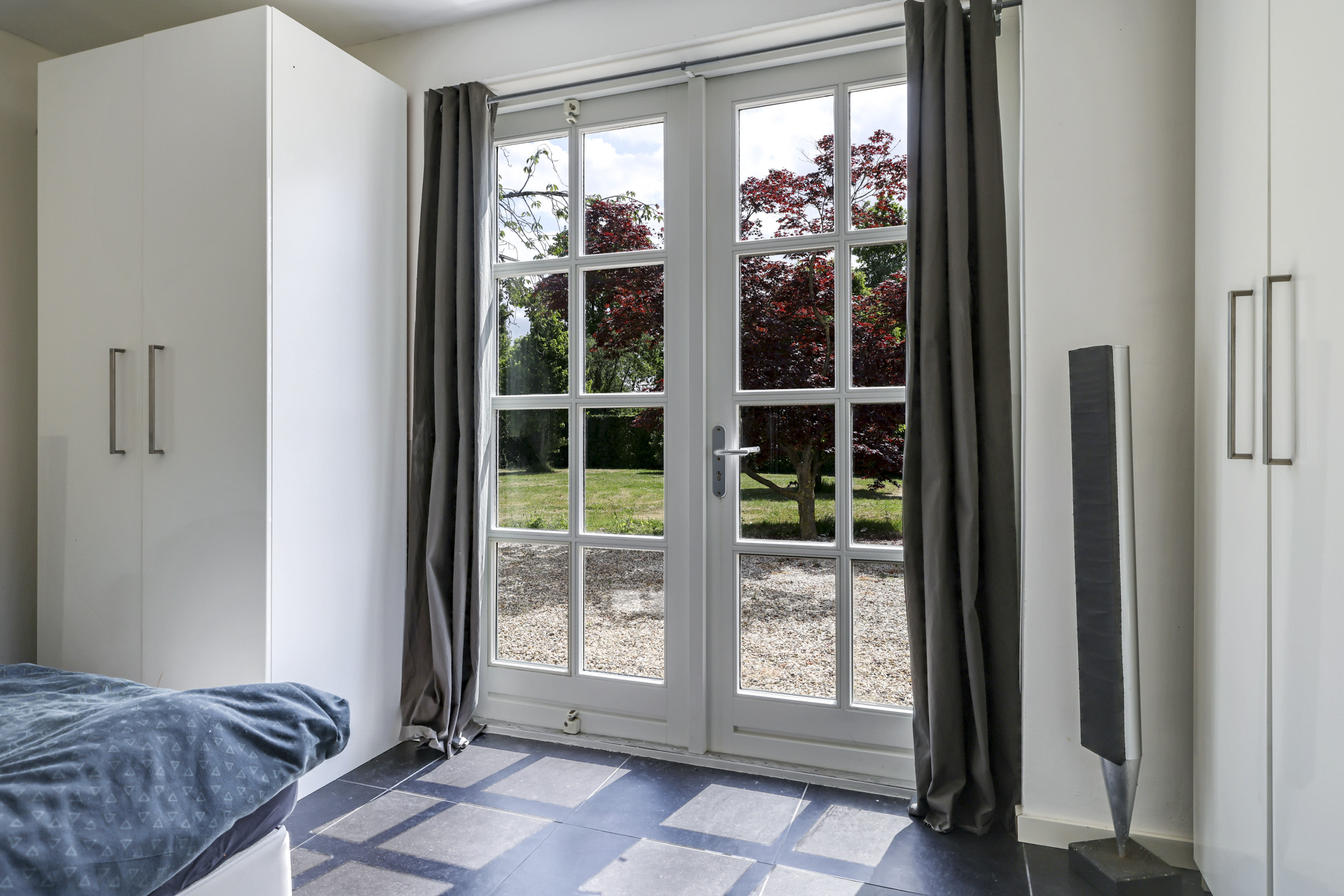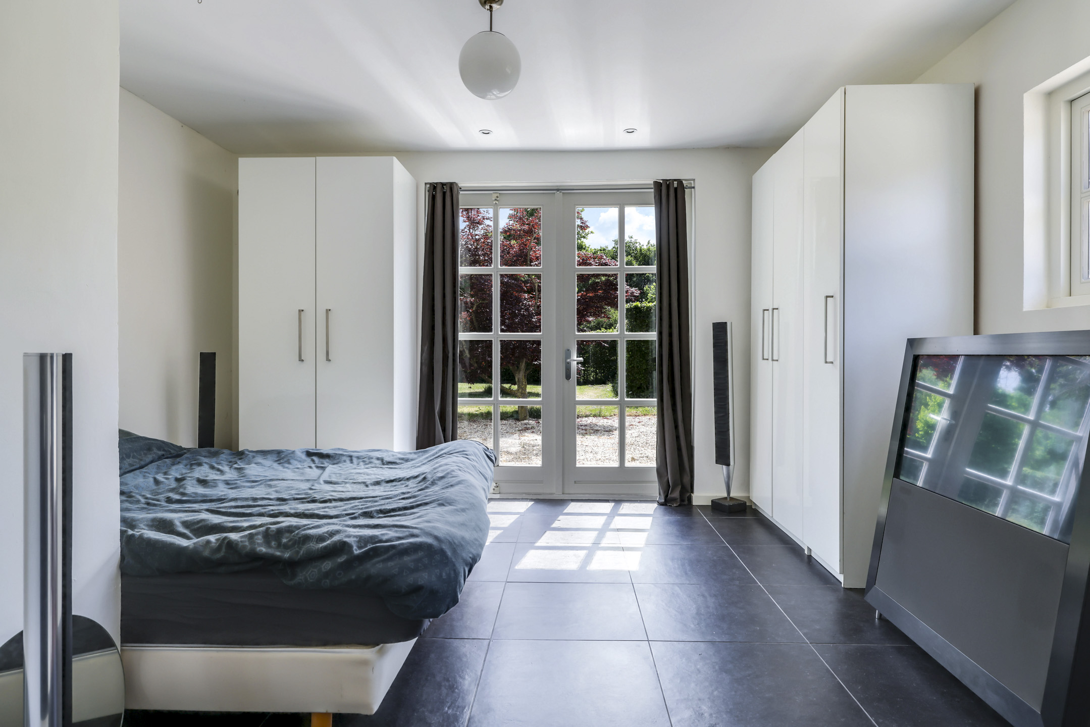 Doordat alle voorzieningen op de begane grond aanwezig zijn, is deze woning ook levensloopbestendig te bewonen. Er zijn 2 ruime slaapkamers en een uitgebreide badkamer aanwezig. De slaapkamers zijn voorzien van vloerverwarming onder een plavuizen vloer en hebben allebei openslaande tuindeuren. De luxe badkamer is voorzien van een ligbad, een brede inloopdouche met glazen wand, een dubbel wastafelmeubel en een spiegel met verlichting. Hier is gebruik gemaakt van het merk Philip Starck. Een groot pluspunt is dat het toilet is afgescheiden van de badkamer.