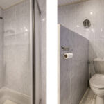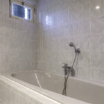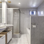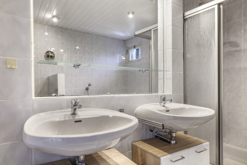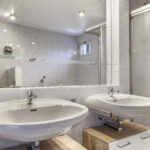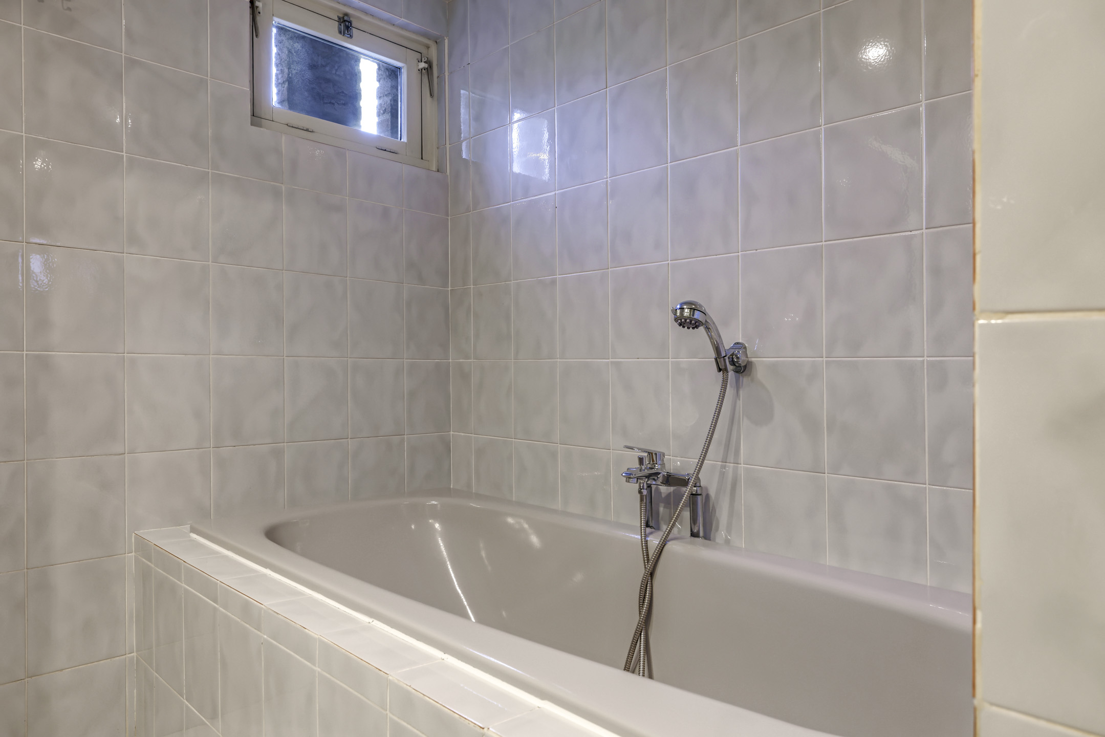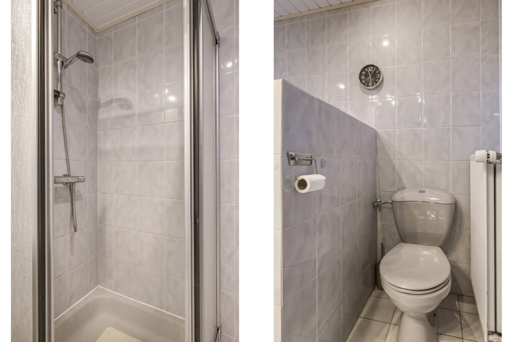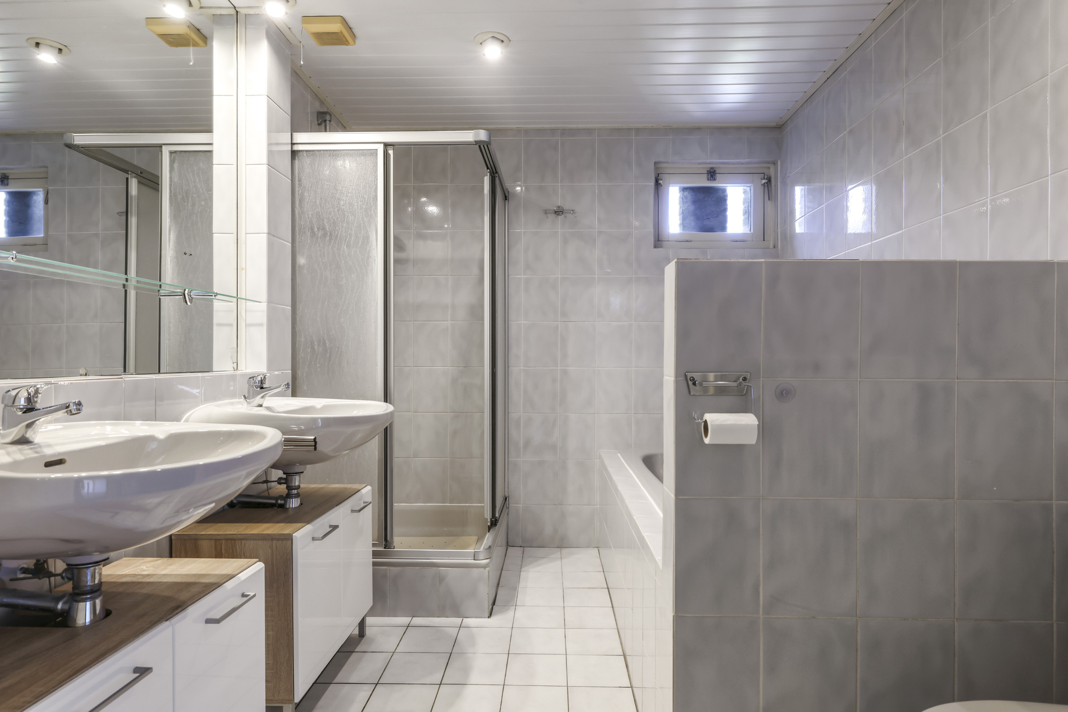 Tussen de slaapkamers in, is de badkamer gelegen. Geheel in verhouding met de rest van de woning is ook de badkamer goed bemeten. Er is dankbaar gebruik gemaakt van de ruimte door deze compleet in te richten met een ligbad, een aparte douchecel, 2 wastafels en een 2e toilet. De badkamer mag dan een ietwat ‘gedateerde’ uitstraling hebben, praktisch is de badkamer zeker. Doordat de badkamer zo compleet is, is de badkamer zeker comfortabel te noemen. Erg fijn is het raampje die niet alleen voor een stukje daglicht zorgt, maar ook voor een prima ventilatiemogelijkheid.