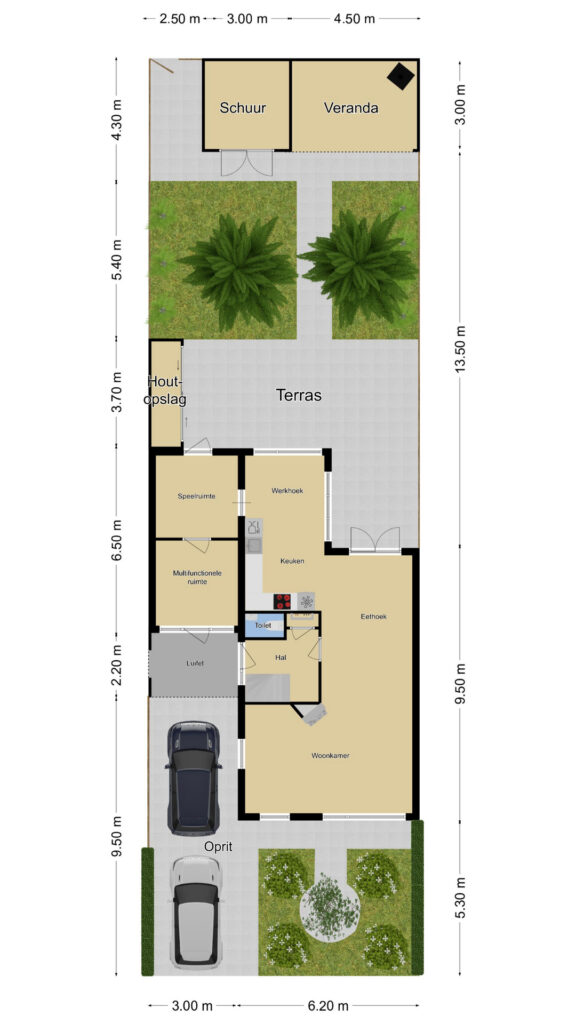 Oprit met plaats voor 2 auto’s op eigen terrein