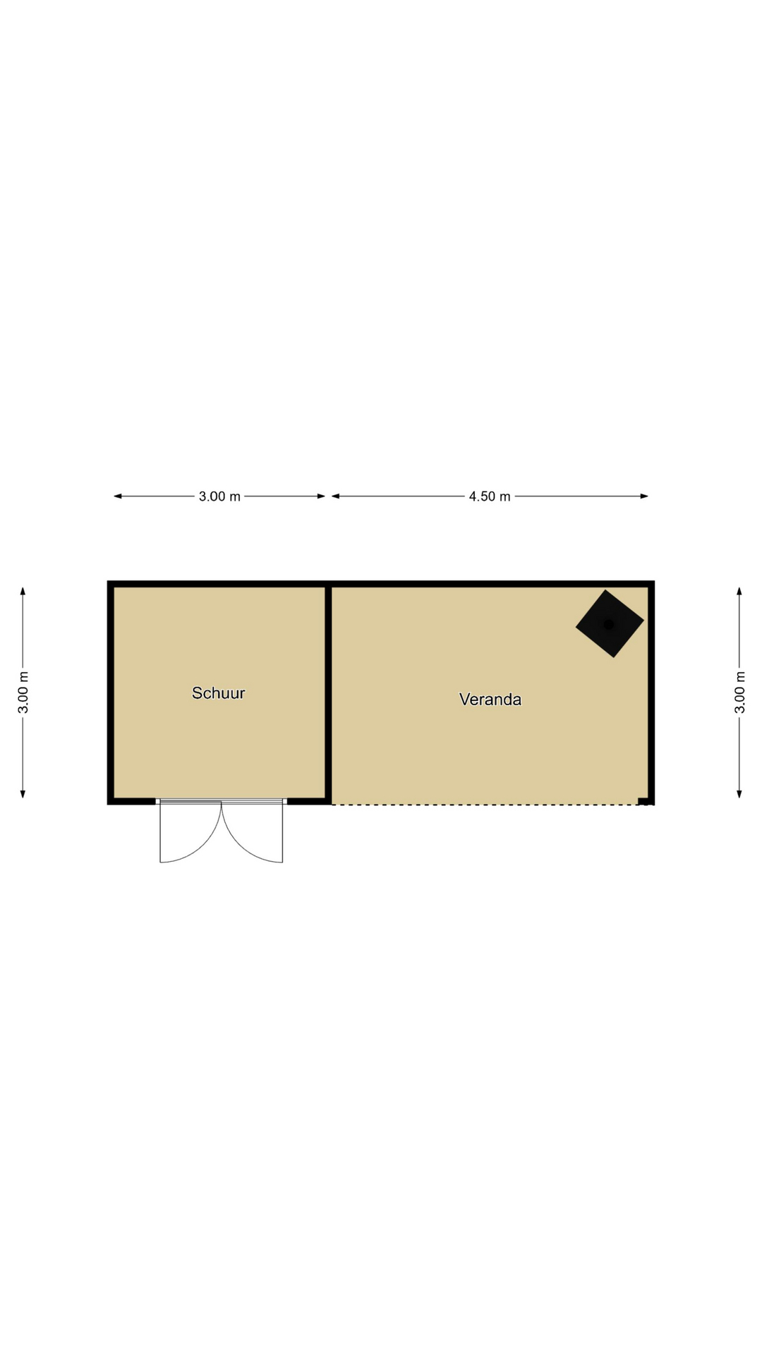 Inpandige berging/stallingsruimte met deur naar oprit .