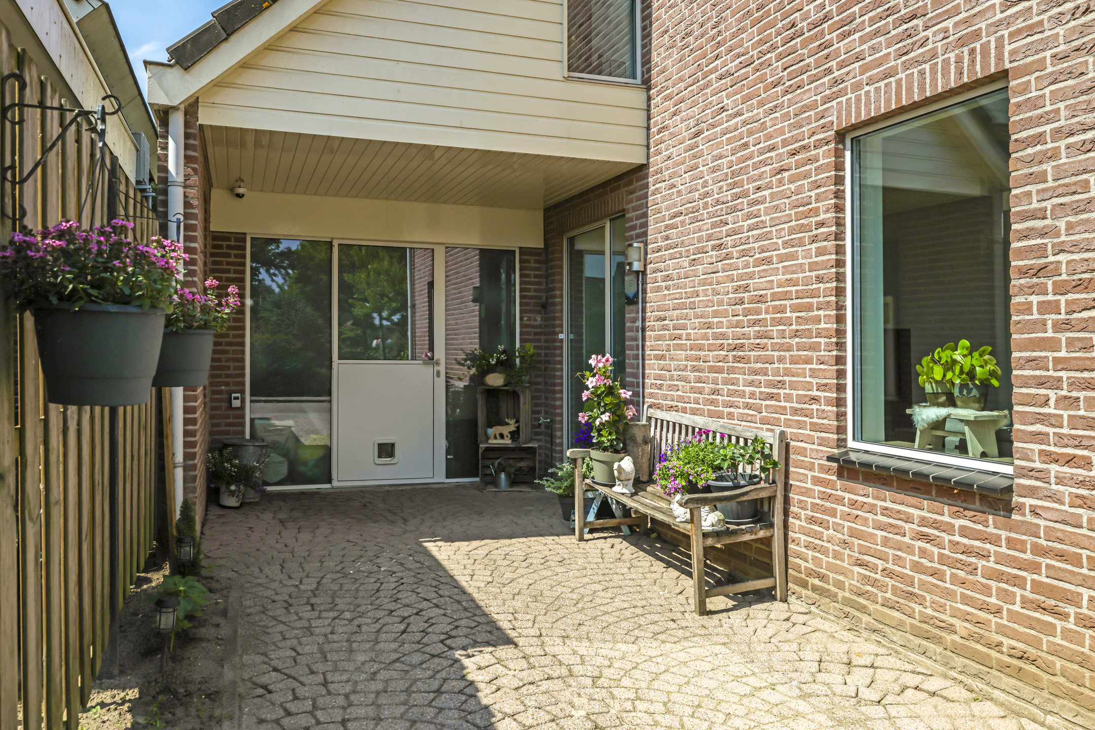 De achtertuin van meer dan 16 meter diep heeft een gunstige zonligging op het zuid/westen. En doordat de tuin aan een groenvoorziening grenst, heb je geen achterburen en woon je bijzonder vrij. Er is zelfs een ‘ophaalbrug’ aanwezig die een ontsluiting geeft over de achtergelegen sloot naar de speelweide. Aan de voorzijde ligt een oprit met plaats voor 2 auto’s. Het gedeelte bij de voordeur wordt overkapt waardoor je er altijd droog staat. Vanuit de Sadatstraat kun je lopend naar de dorpskern, basisscholen én Landgoed Hemmen.