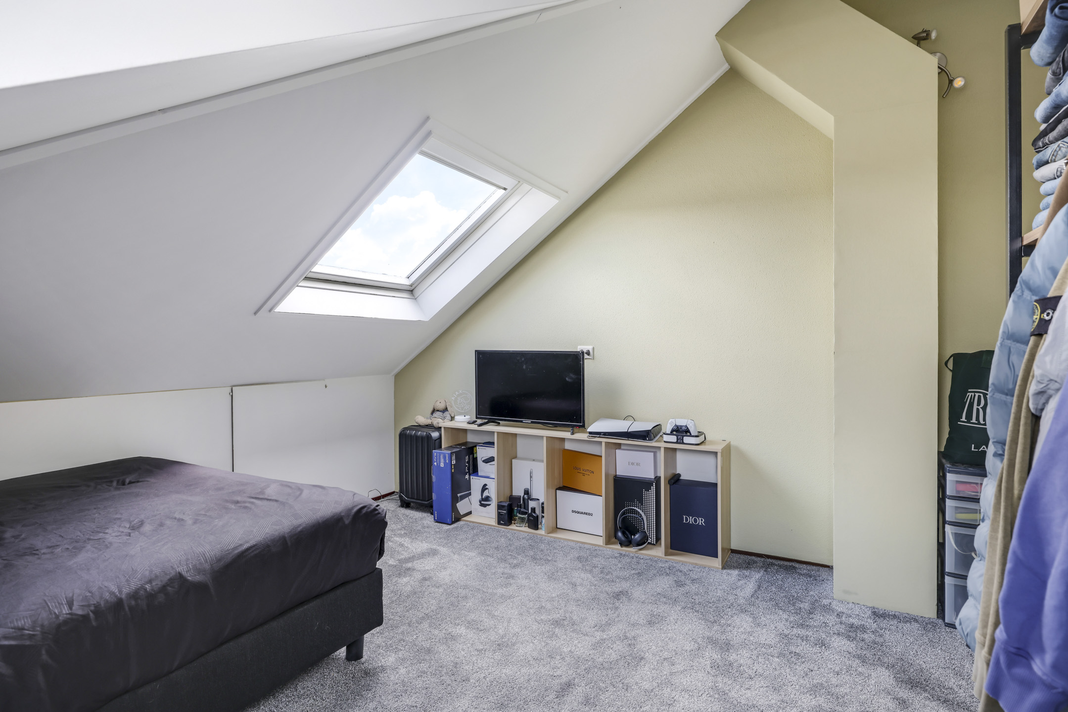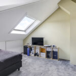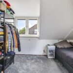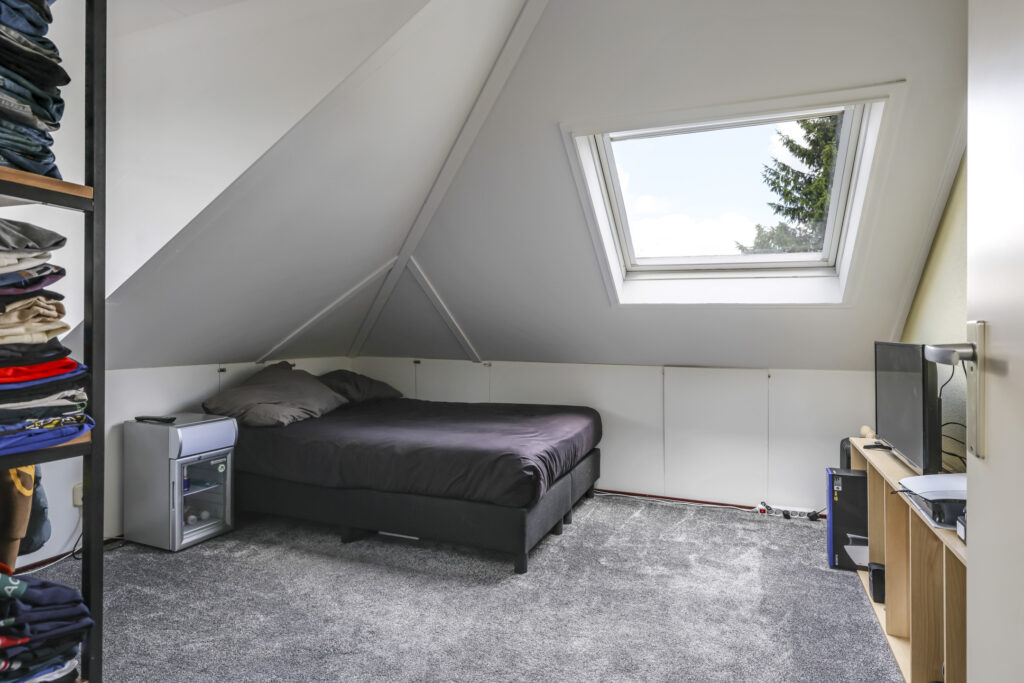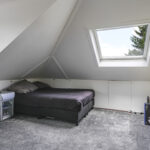 Een 4e volwaardige slaapkamer vinden we op de 2e verdieping. Deze woonlaag is opgedeeld waardoor er zowel een voorzolder als een slaap is ontstaan. De ruimte is tevens vergroot door de geplaatste dakkapel. Een groot dakraam zorgt daarbij voor nog meer lichtinval. Onder de schuine kanten zijn knieschotten t.b.v. opbergmogelijkheden aangebracht.