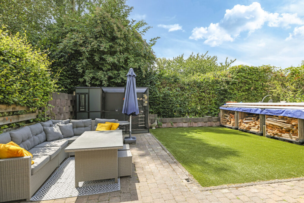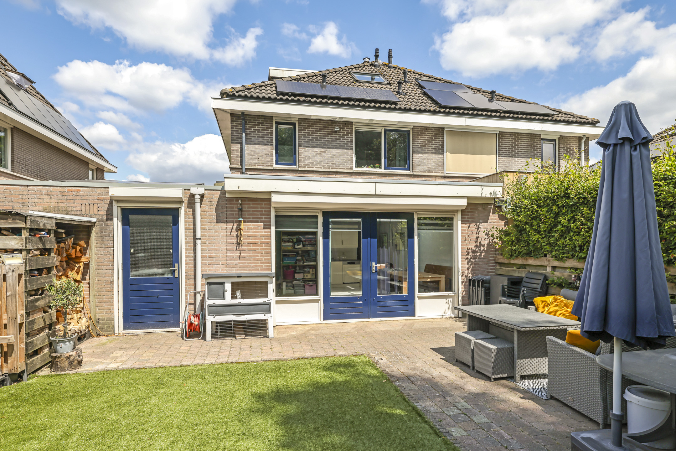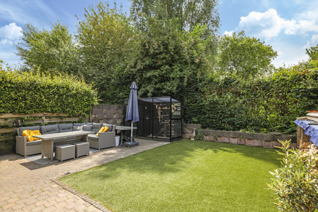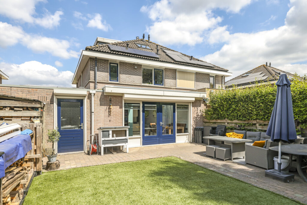 Bij de ideale gezinswoning hoort ook een aantrekkelijke achtertuin. Doordat de garage naast de woning is gelegen is de tuin breder dan gemiddeld waardoor je veel buitenruimte treft. Doordat er achter de woning vrijstaande woningen zijn gelegen geniet je hier van opvallend veel privacy. De tuin is aangelegd met een groot terras en een grasstrook. Aan de achtergevel is zonwering geplaatst waardoor je hier een fijne schaduwplek kan creëren.
