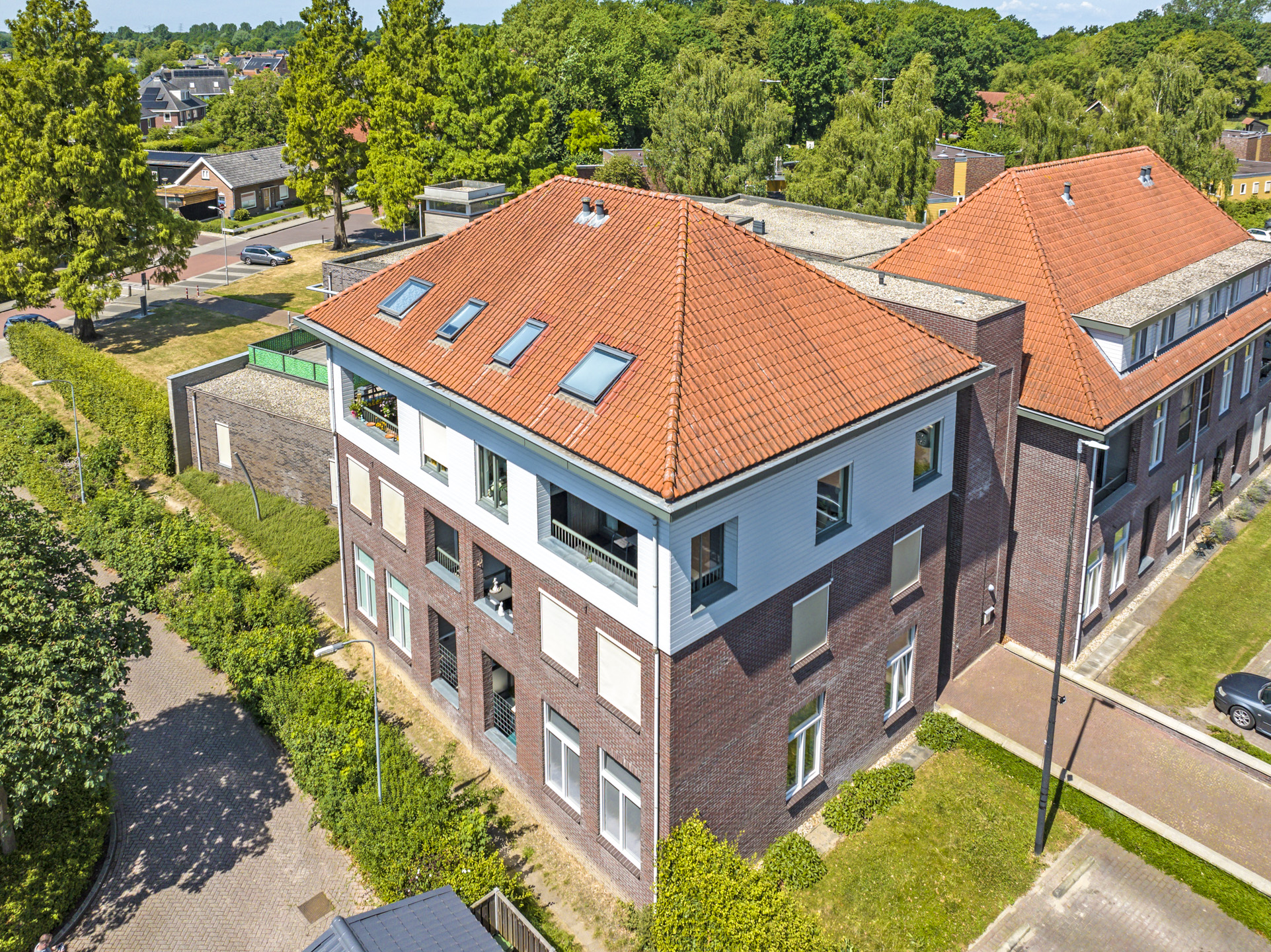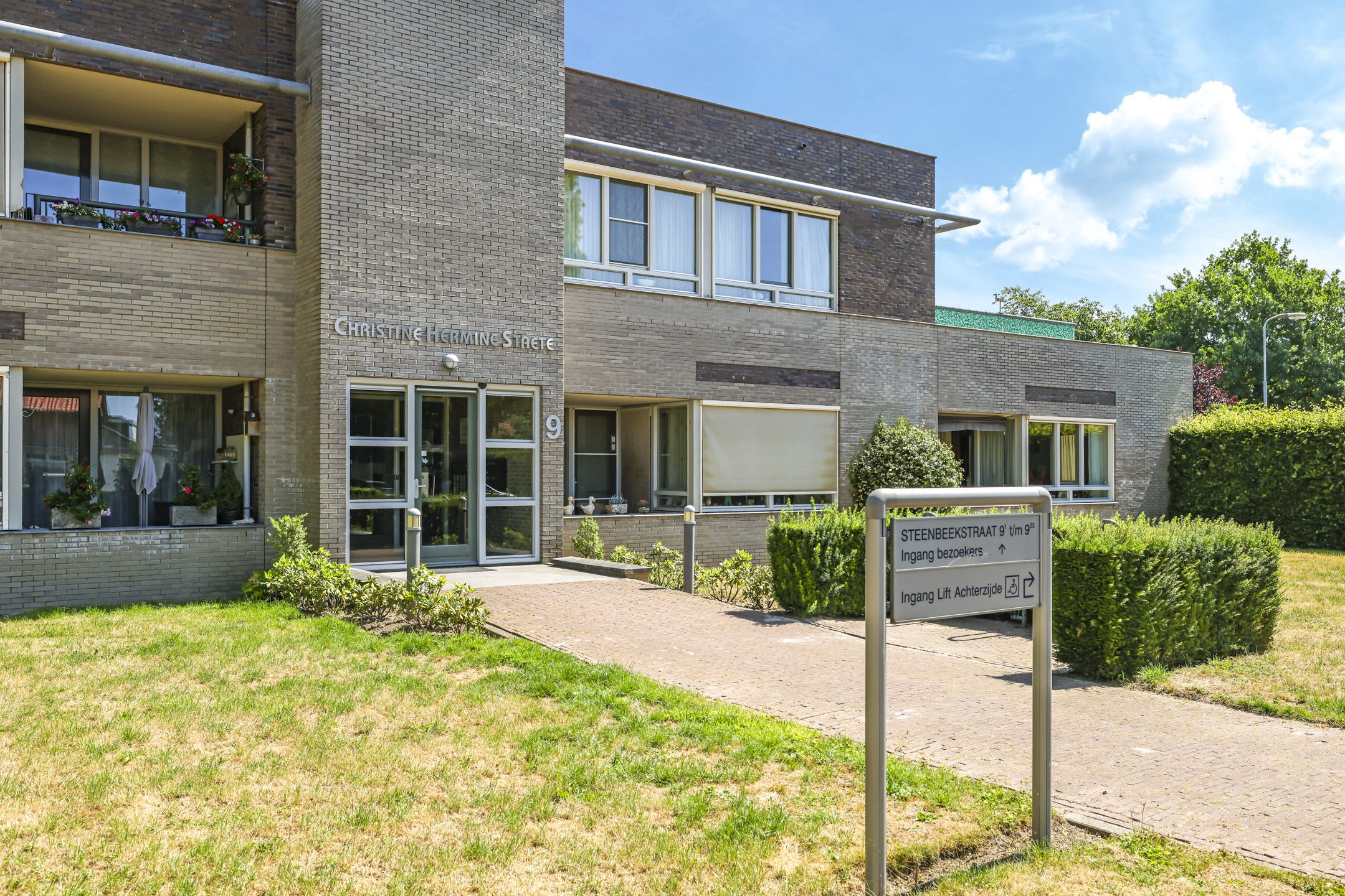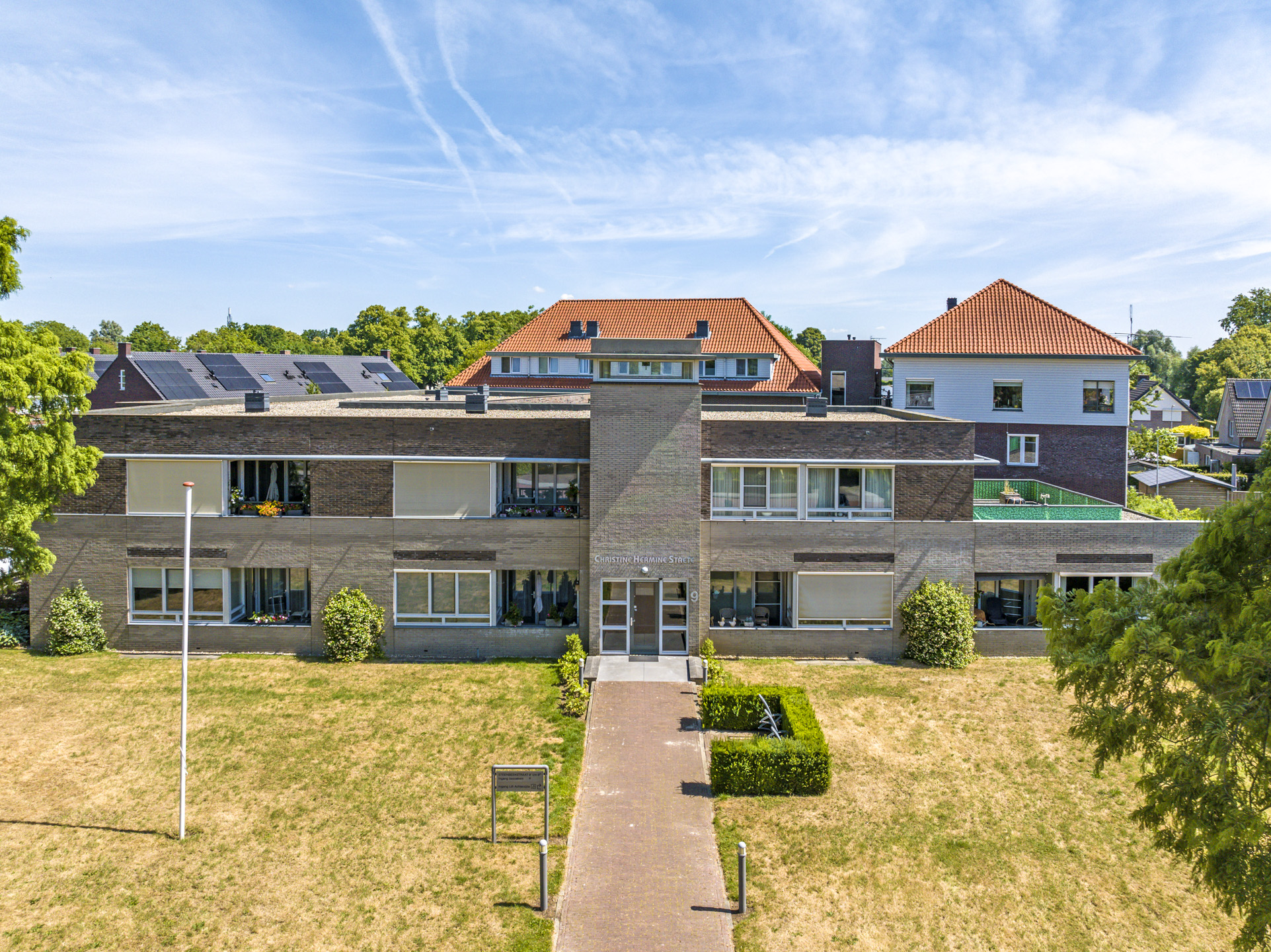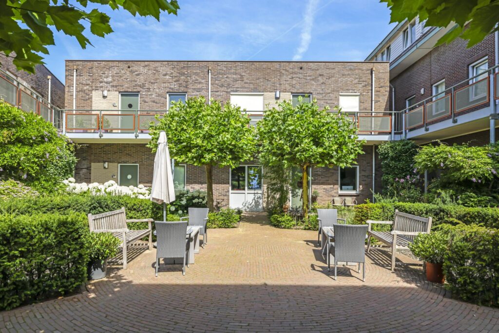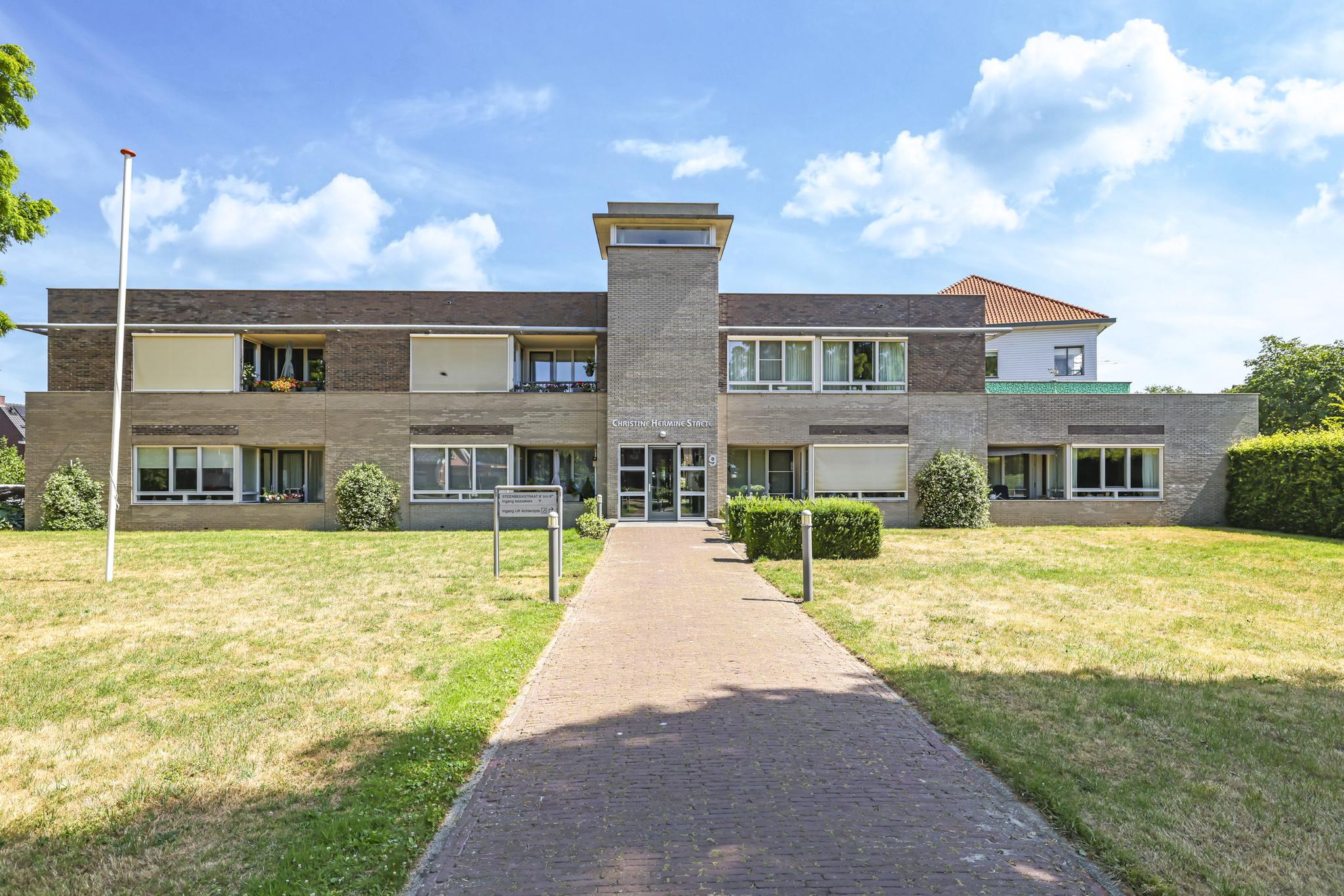Dit appartement vinden we terug in een markant gebouw met een rijke historie. In het complex vinden we 23 wooneenheden met een grote variëteit en zowel koop als huur. Vóór de bouw van het complex in 2003, stond hier de voormalige huishoudschool Christine Hermine, waarbij de oorsprong alweer uit 1916 dateert. De architect is er goed in geslaagd een ontwerp te maken die de vormgeving van het voormalige schoolgebouw benaderd. Daarbij is duidelijk rekening gehouden met de doelgroep waarbij het complex toegankelijk en beschermd is opgezet. In het complex is dan ook een liftinstallatie aanwezig. De opzet is speels te noemen met zowel een voor- als achteringang. De achteringang sluit aan op de parkeerplaatsen en de bergingen. In het midden van het complex is een gezellige binnentuin aangelegd.