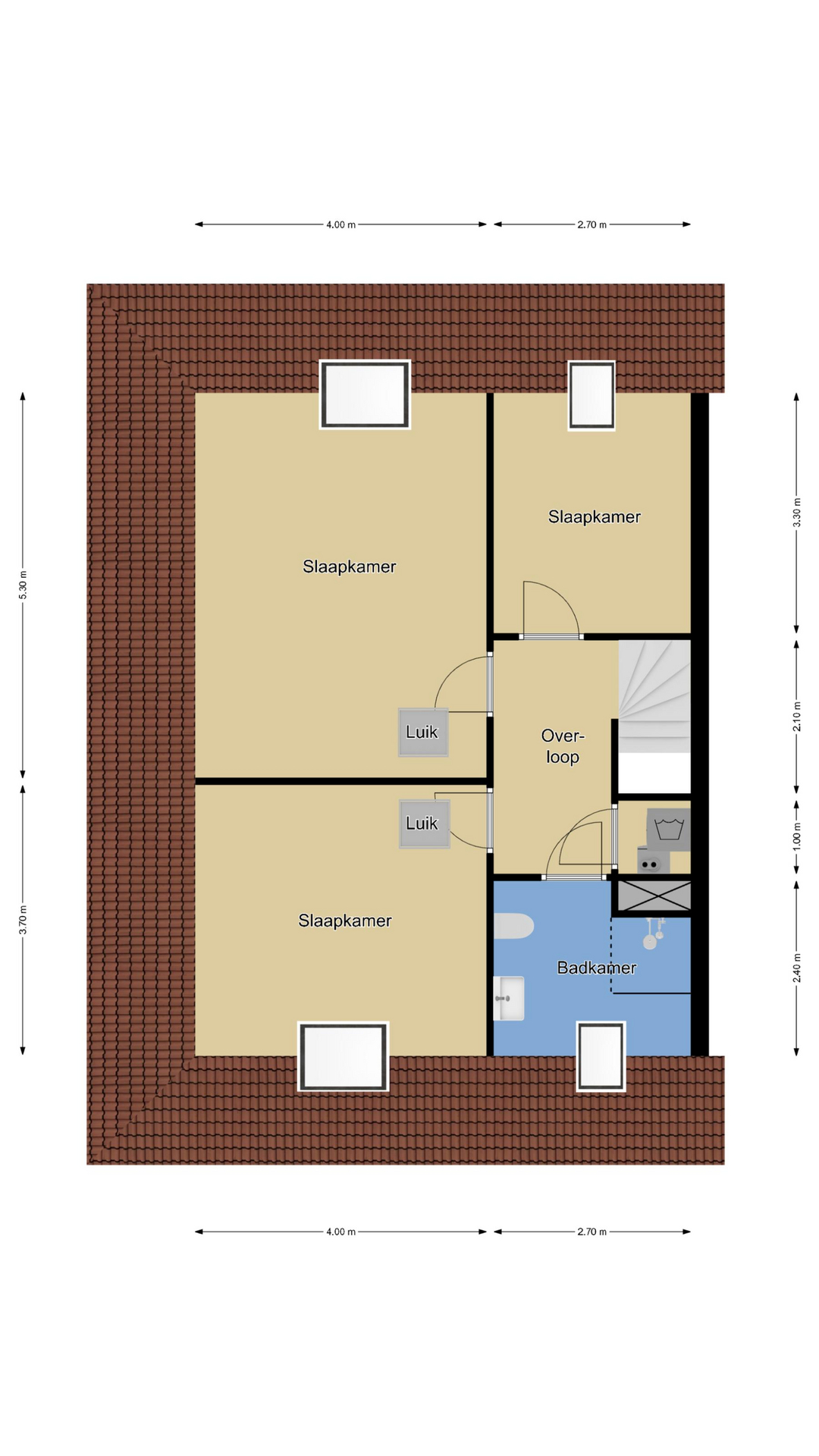 3 Slaapkamers met een Velux dakvenster en knieschot bergruimte