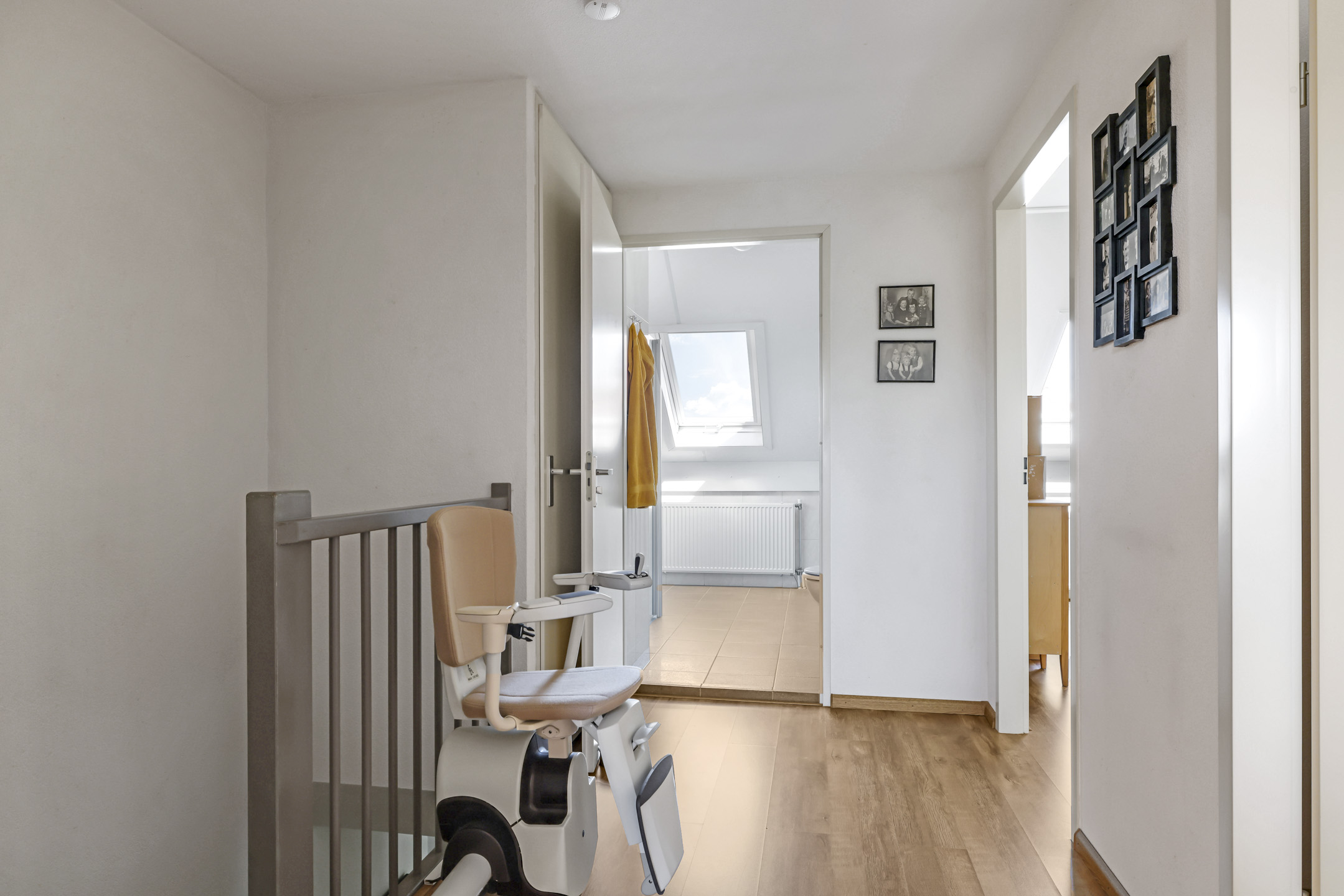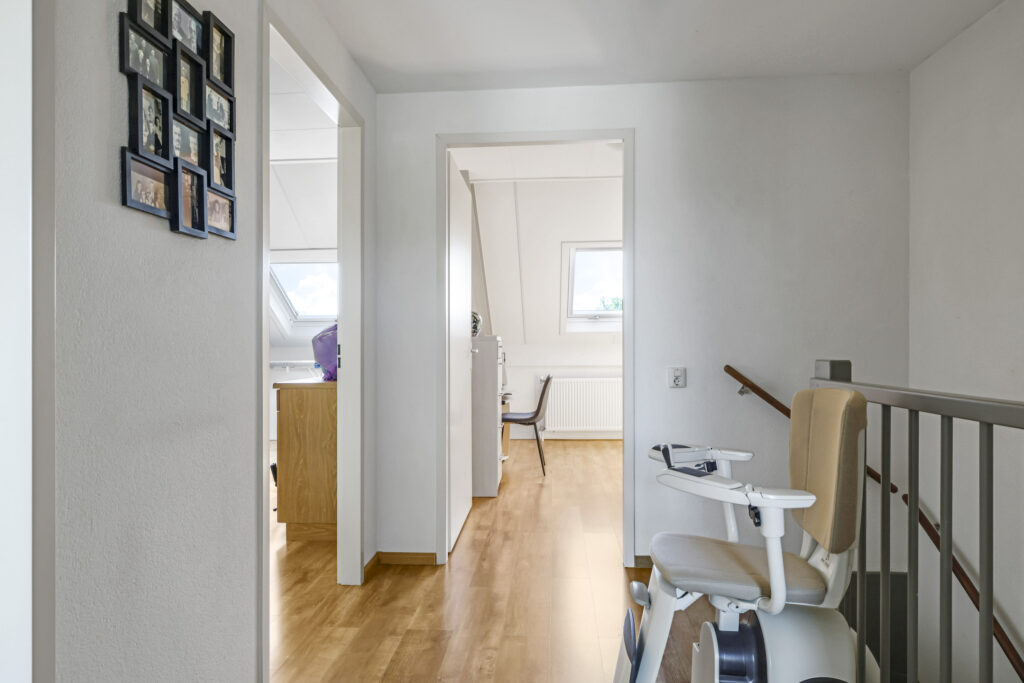 Trapopgang is te overbruggen middels de aanwezige traplift