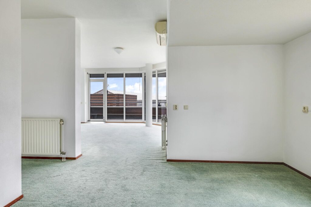 Wanneer u vanuit de hal de woonkamer in loopt, wordt u verrast door de verbazend ruime indeling en de grote raampartijen tot aan de vloer. De glaspuien beslaan de gehele zuid/westhoek waarbij u van een panoramisch uitzicht geniet over de wijk. Bovendien betreft het de zuid/west ligging waardoor u een maximaal aantal zonuren geniet. Om het op een warme zomerdag behaaglijk te houden, kunt u de screens (zonwering) voor de ramen laten zakken. De aanwezige airconditioning maakt het bijzonder aangenaam.