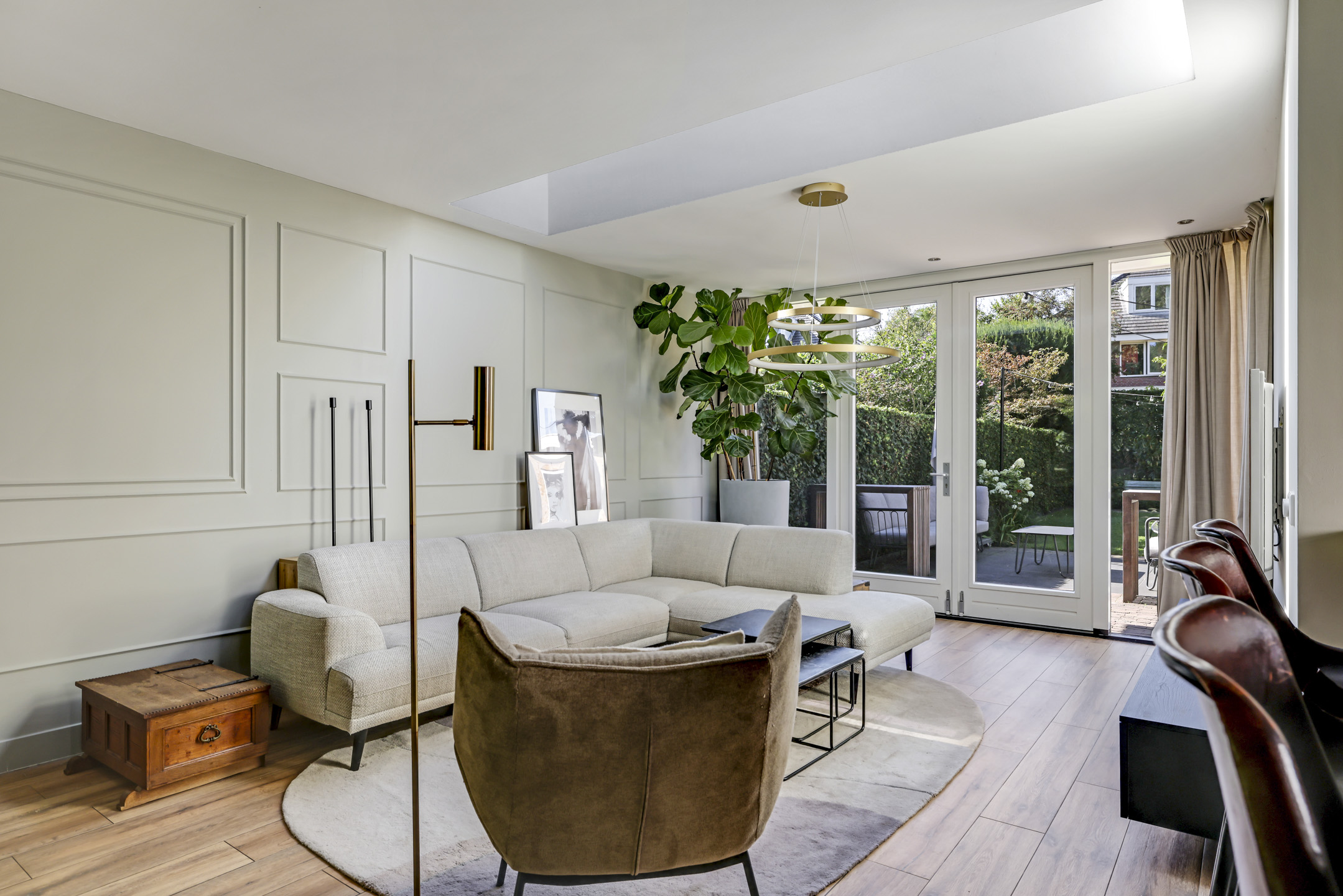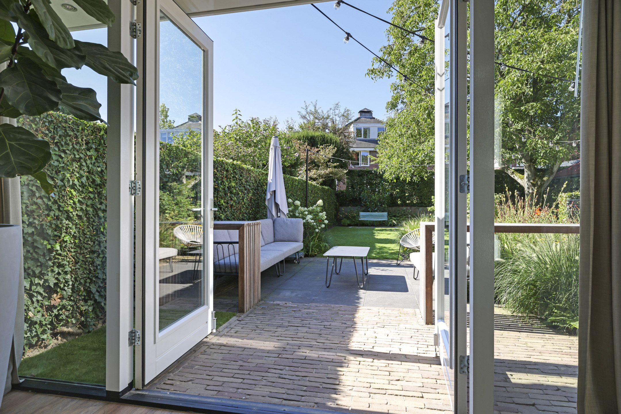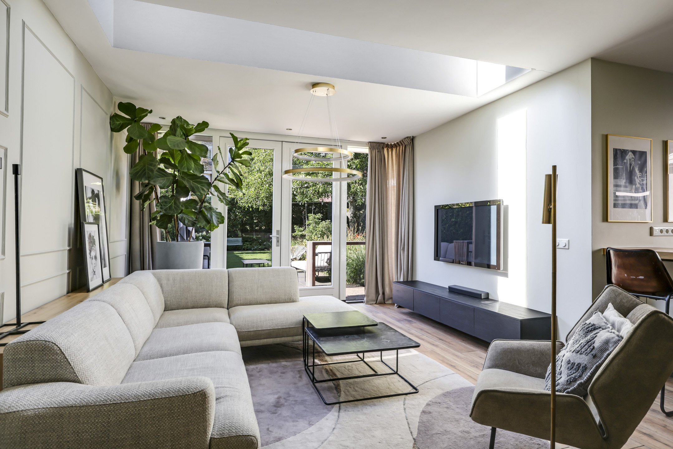 Uitbouw met fraaie lichtstraat, glaspuien tot aan de vloer en dubbele terrasdeuren