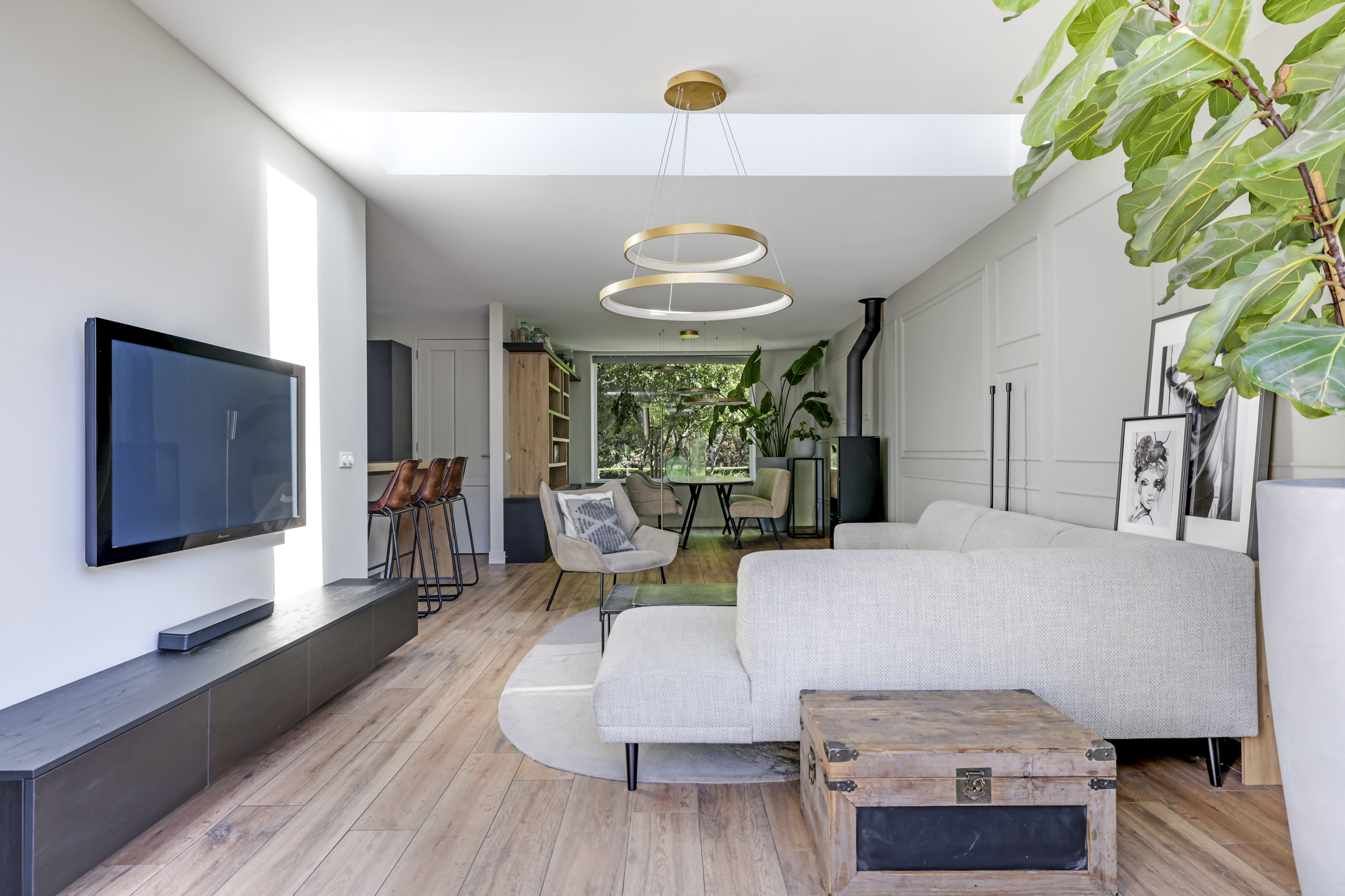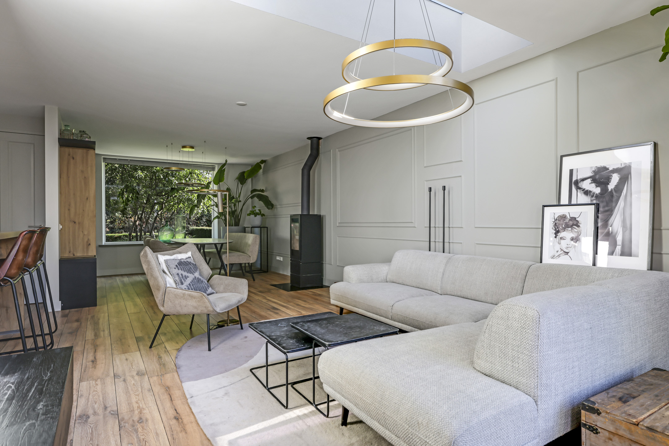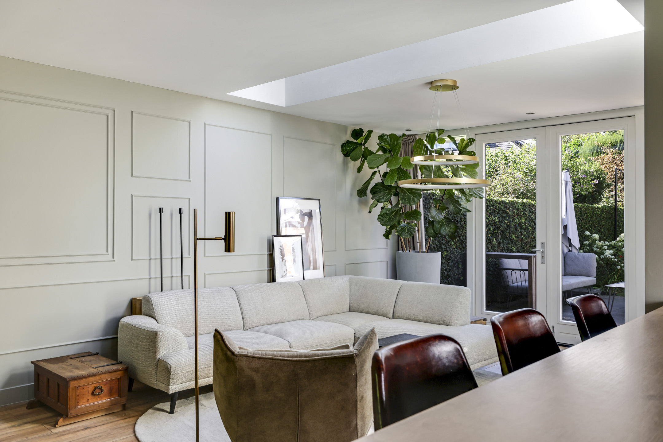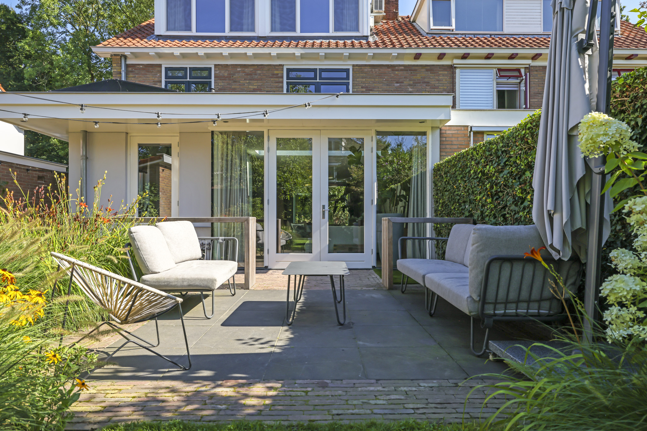 Uitbouw met fraaie lichtstraat, glaspuien tot aan de vloer en dubbele terrasdeuren