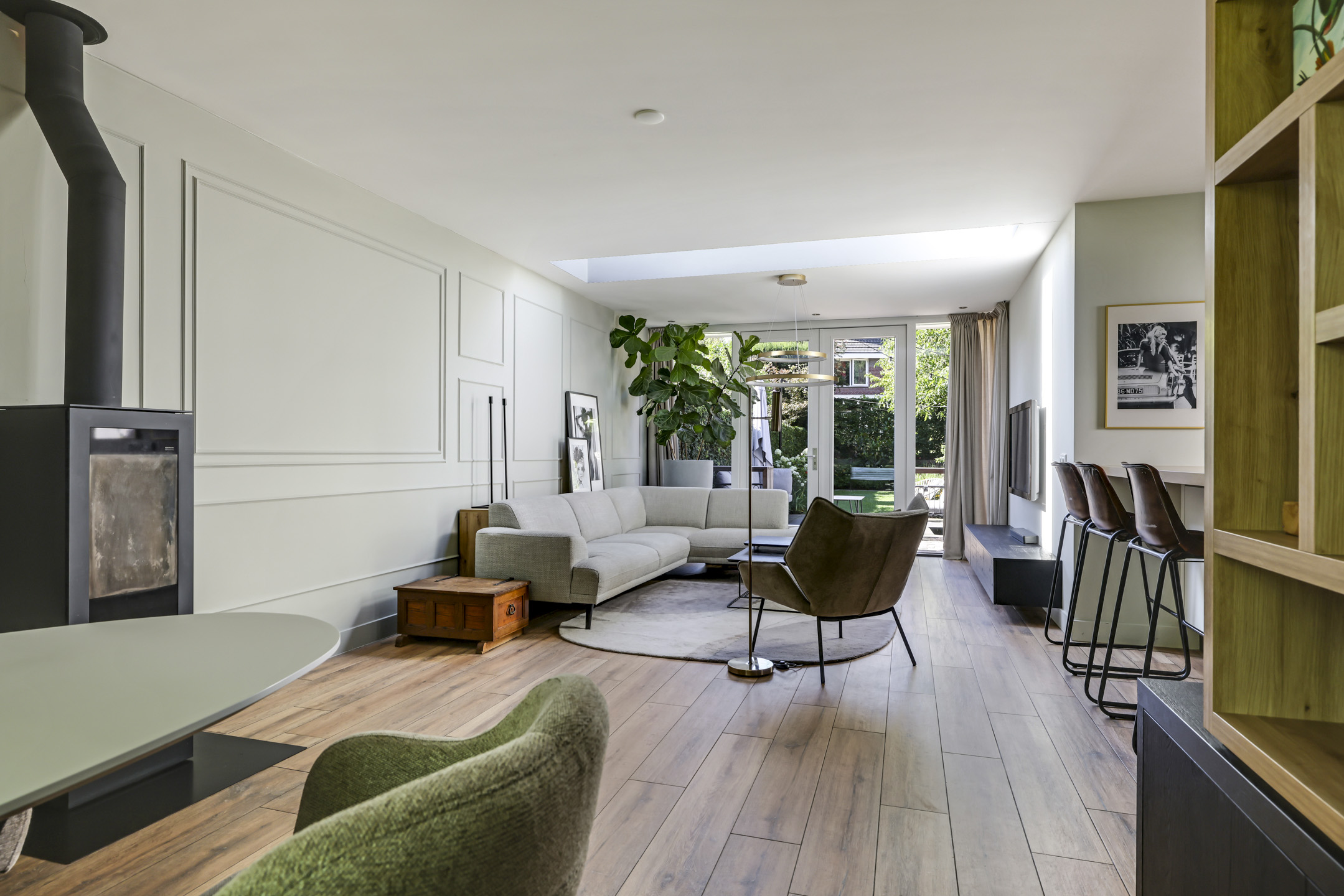 Deze karaktervolle gezinswoning (oorsprong 1948) met een uitzonderlijke breedtemaat van maar liefst 7,1m (binnenmaat) is nog geen 10 jaar geleden volledig gestript, gerenoveerd en verduurzaamd. Het resultaat is een bijzonder sfeervol en instapklaar huis met smaakvolle details dat aan alle wensen en wooncomfort voldoet. Denk daarbij aan een heerlijke doorzon-woonkamer met houtkachel, vloerverwarming, dubbele tuindeuren en een brede lichtstraat. De keuken is stijlvol met een schiereiland ontworpen en voorzien van een betonciré werkblad. De bijkeuken is met name erg praktisch te noemen.