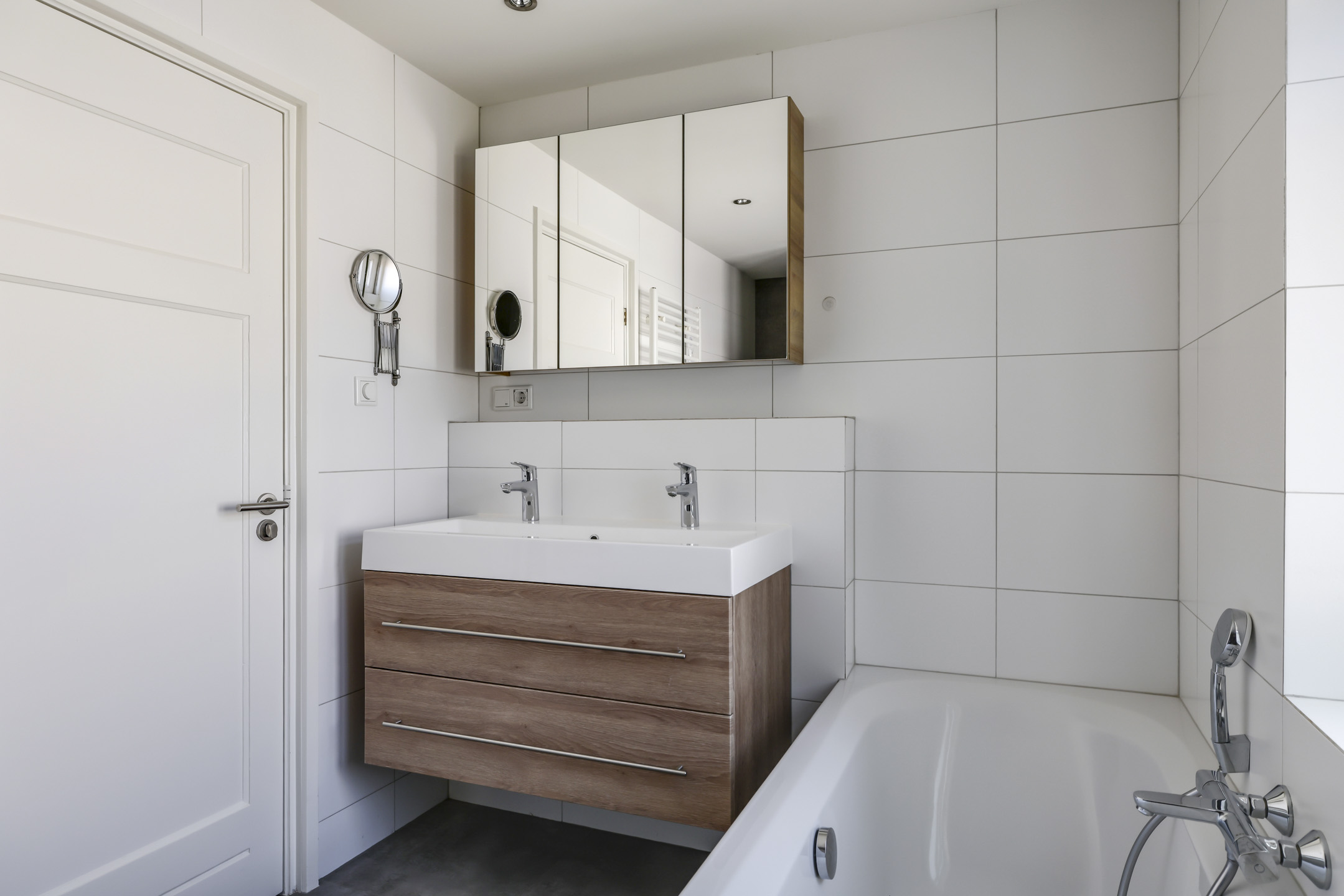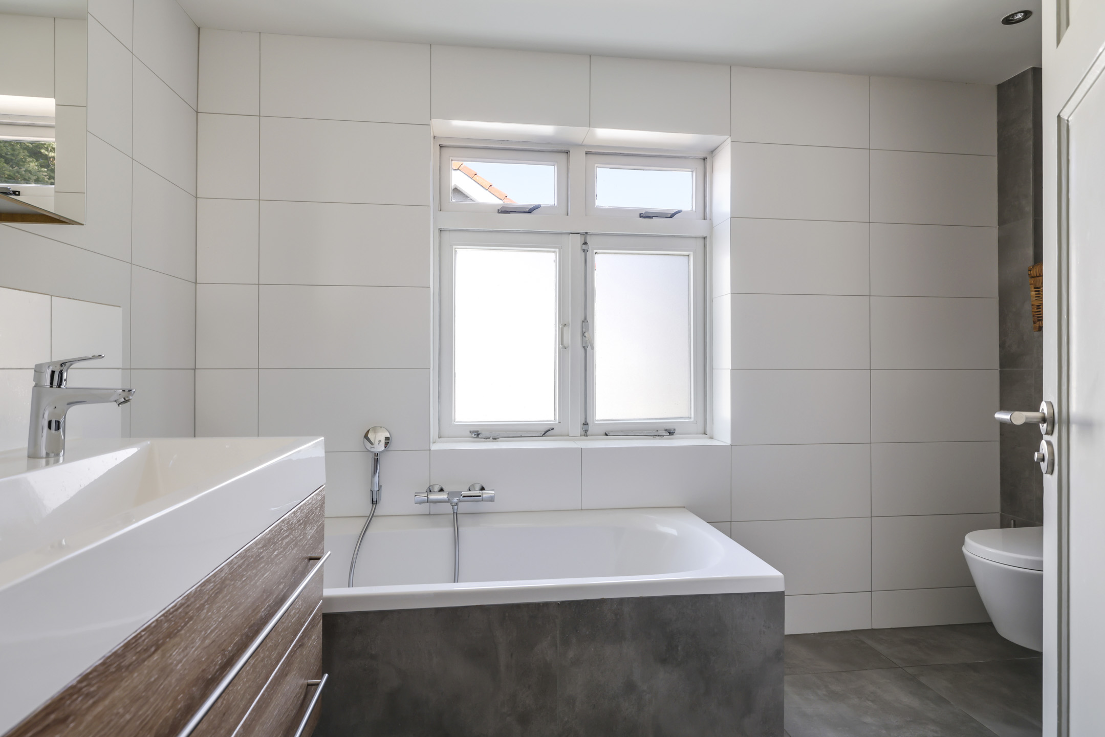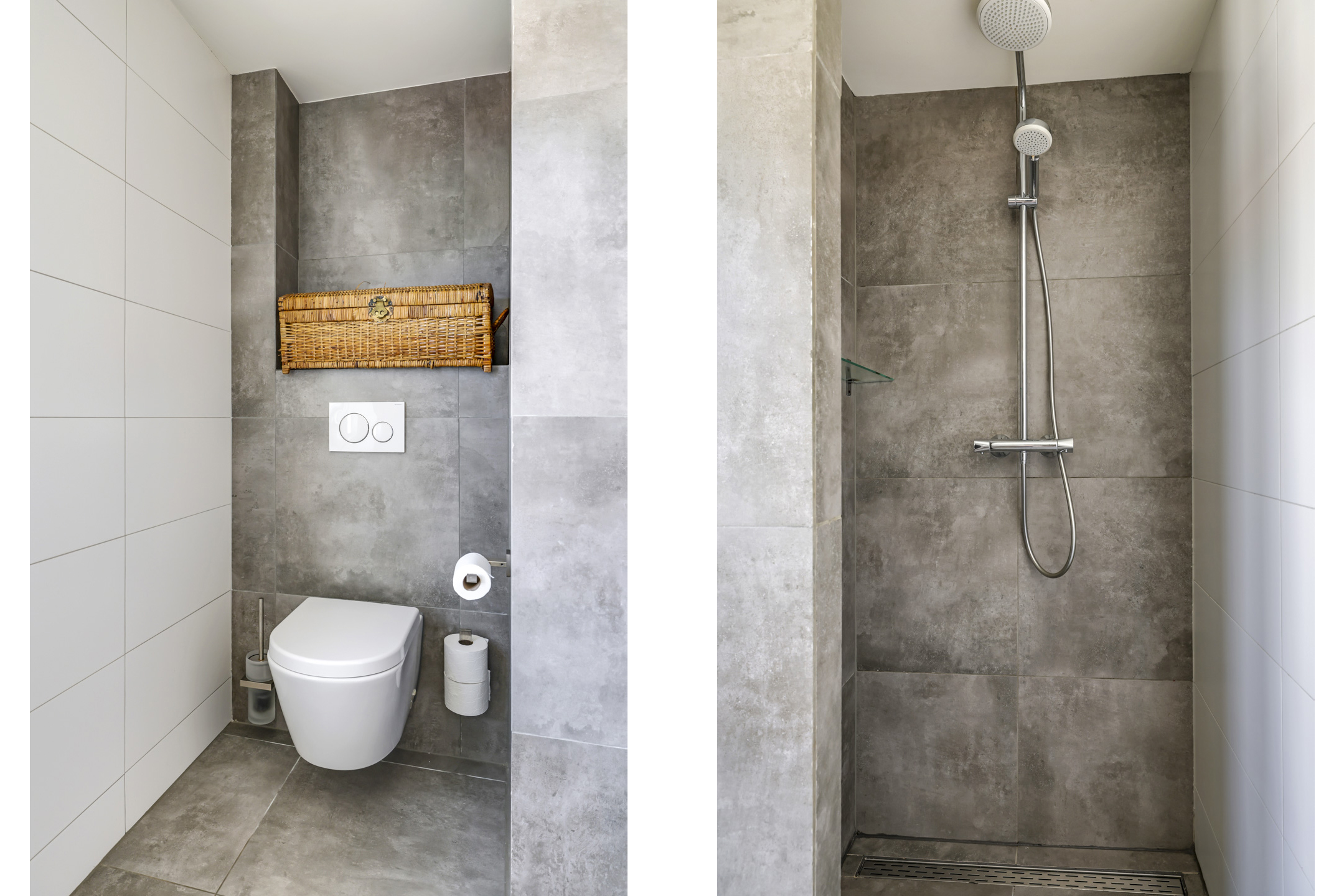 De badkamer betreft een voormalige slaapkamer en heeft daardoor eveneens een goed formaat. Er is dankbaar gebruik gemaakt van de ruimte door deze praktisch en compleet in te delen. Er is gekozen voor een comfortabele inloopdouche met rainshower, een handdouche en een drainafvoer, evenals voor een volwaardig ligbad. Het brede wastafelmeubel heeft handige opberglades en erboven is een spiegelkast geplaatst. En uiteraard ontbreekt het 2e toilet niet. Noemenswaardig is het hoge afwerkingsniveau waarbij het tegelwerk fraai in verstek is gezaagd (net als op het gastentoilet in de hal). Er is een designradiator geplaatst in combinatie met vloerverwarming (retourleiding). Een raam zorgt voor daglicht en de ideale ventilatiemogelijkheid, alhoewel er ook gewoon mechanische ventilatie met afstandsbediening is aangebracht.