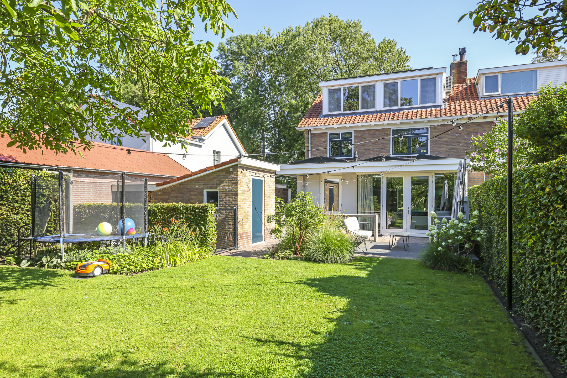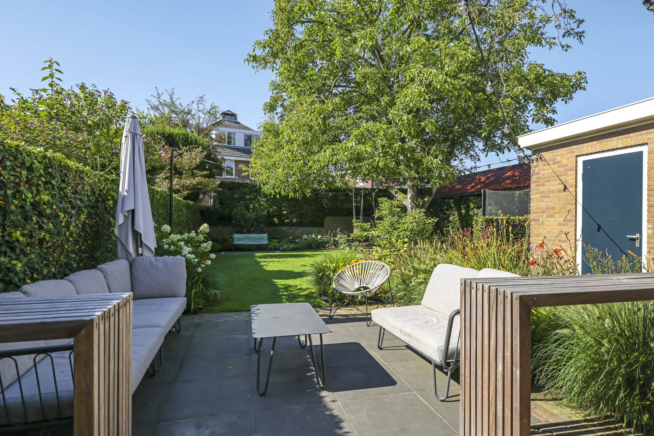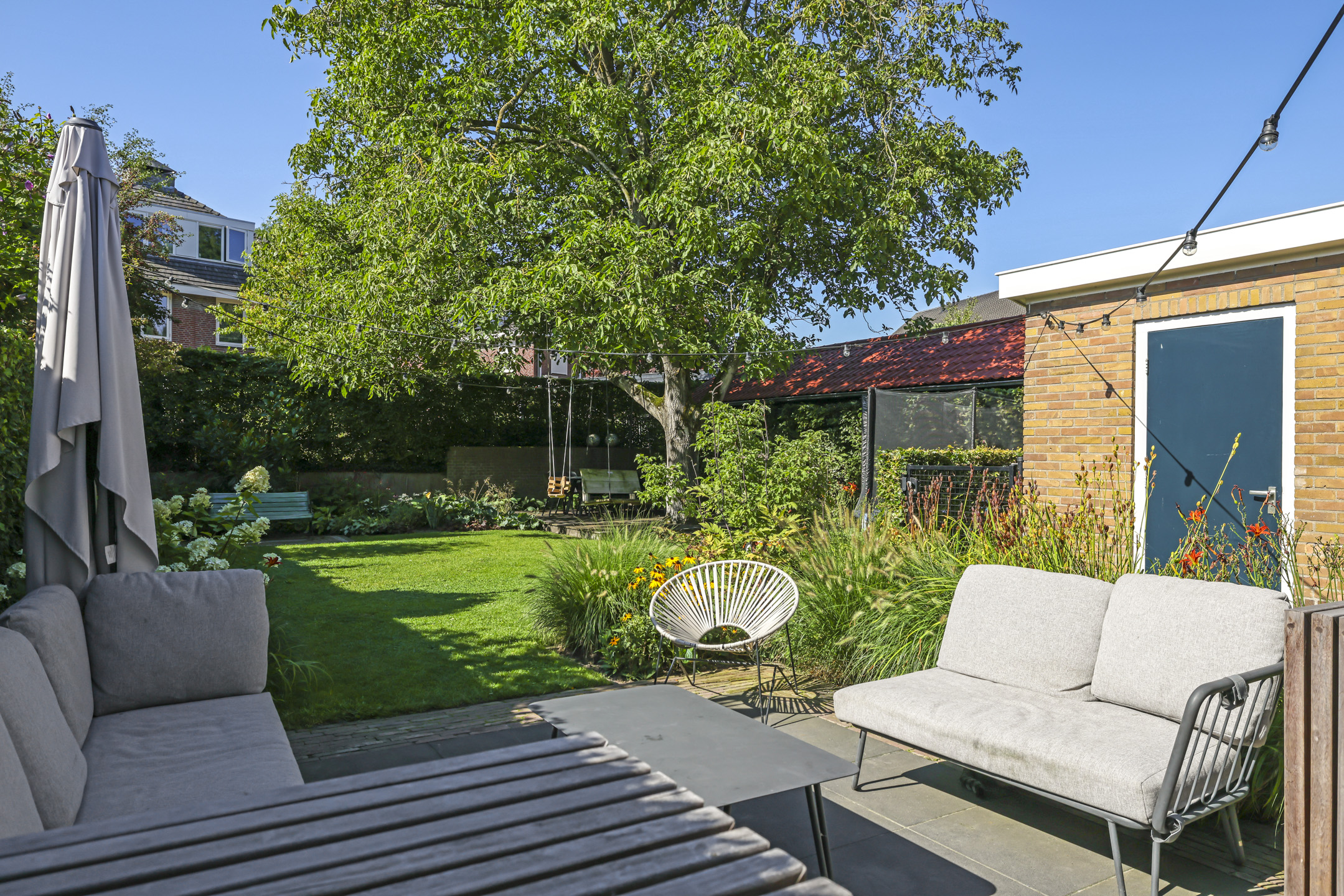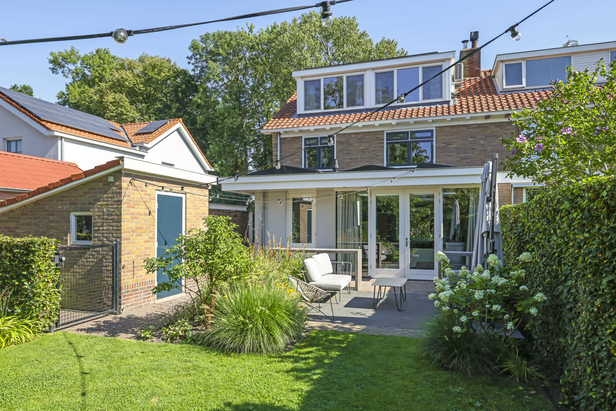 Op een verrassend groot perceel van 427m2 gelegen, stijlvol gemoderniseerde en fraai uitgebouwde 2-ONDER-1-KAPWONING, bestaande uit 3 volwaardige woonlagen, alsmede een onder architectuur aangelegde tuin met diepe OPRIT, een stenen GARAGE, een stenen SCHUUR en een houtopslag. De zonnige achtertuin op het zuid/westen is maar liefst ca. 20 meter diep en ca. 12 meter breed en heeft veel privacy, vrijheid en een groen karakter te bieden.