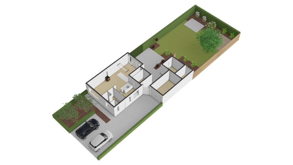 Iets wat we graag nog willen benadrukken is de vrije ligging aan de voorzijde. Er zijn geen overburen en je kijkt volledig groen weg. Ook dit zorgt voor een vrij gevoel in huis.
