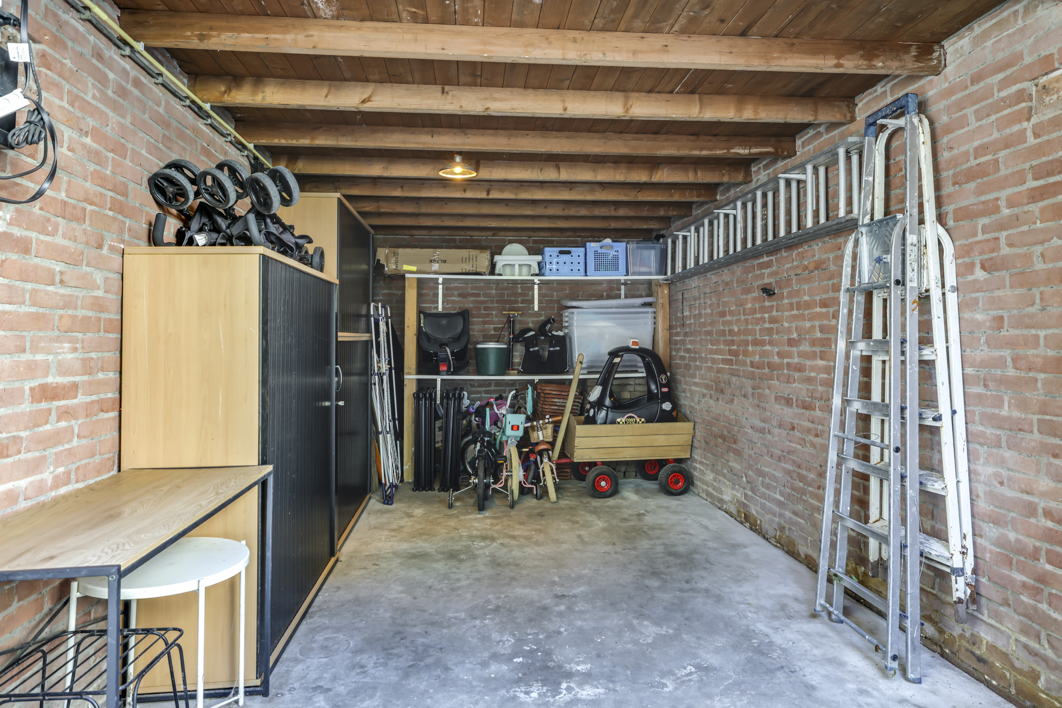 Achter de garage vinden we de schuur (8m2), hetgeen vroeger het kolenhok was. Deze schuur is ideaal voor het opbergen van tuingereedschap, tuinkussens en buitenspeelgoed voor kinderen. Direct achter de schuur is nog een houtopslag gecreëerd ten behoeve van kachelhout.