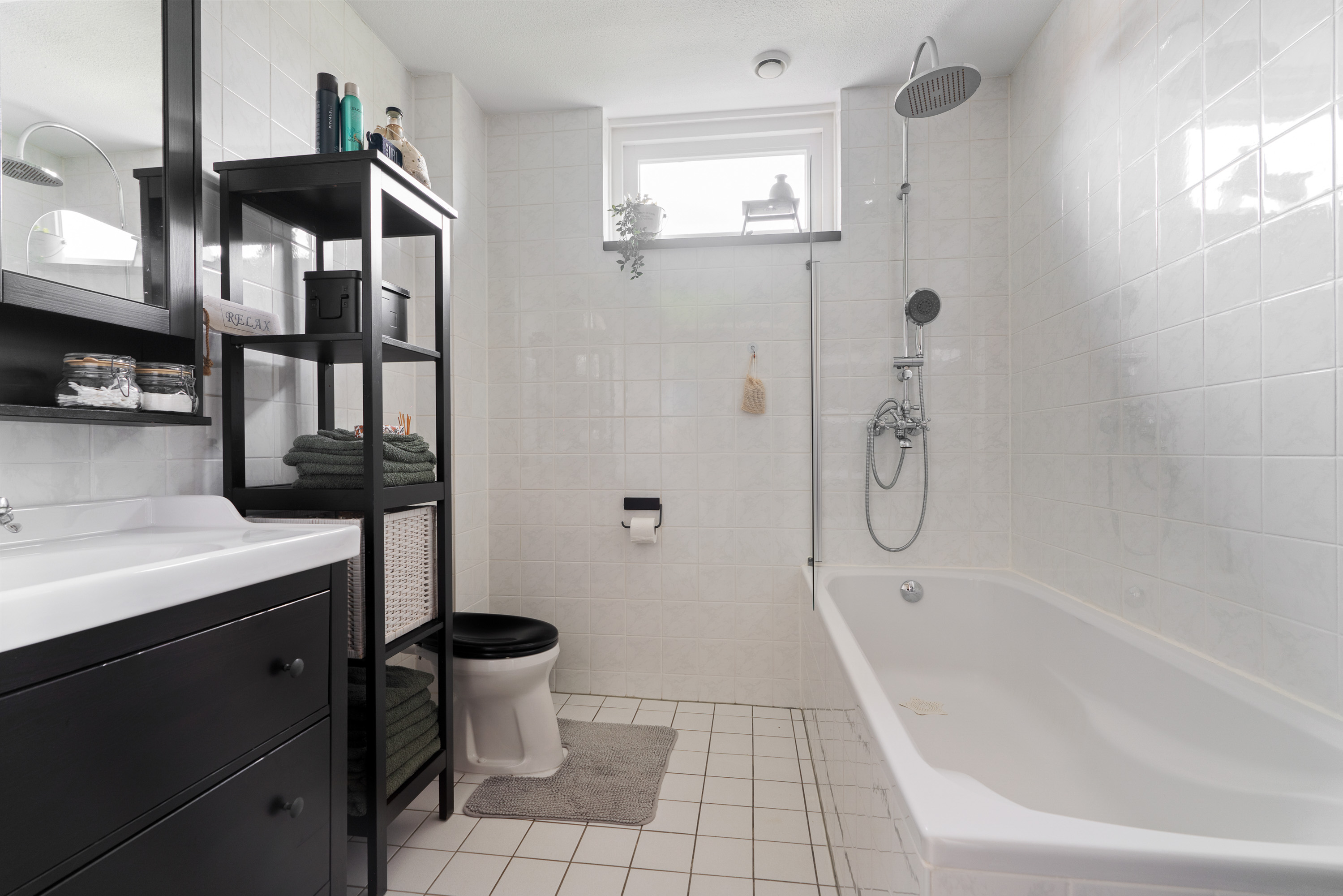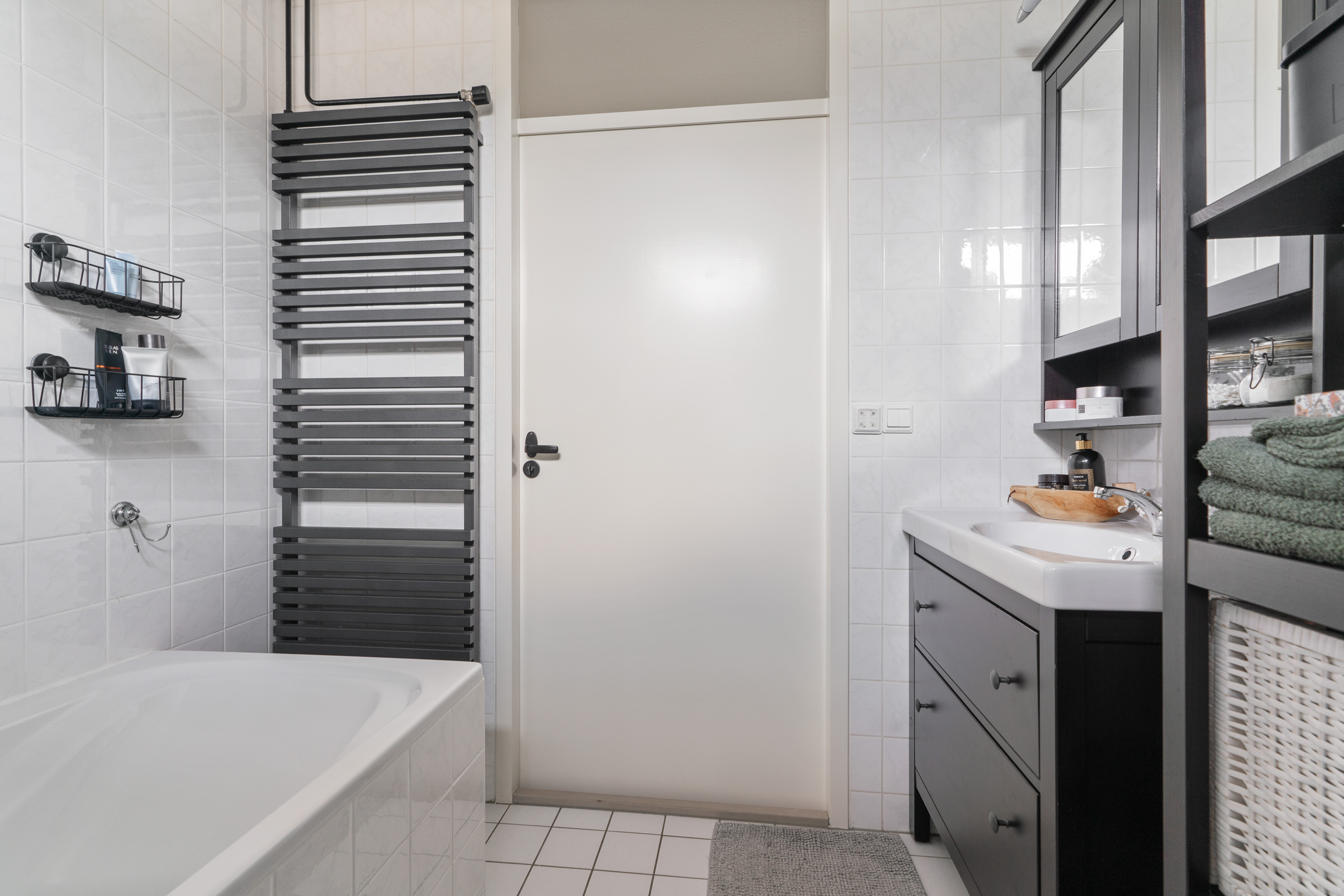 Tussen de slaapkamers in, is de badkamer gelegen. Deze is neutraal en degelijk afgewerkt en heeft een frisse en schone uitstraling. De ruimte is ingedeeld met een ligbad/douche (met rainshower en handdouche), een 2e toilet en een wastafelmeubel. Dit meubel wordt vergezeld door een spiegelkast. Beiden bieden handige opbergruimte voor diverse toiletspullen. Een designradiator maakt de ruimte compleet. En niet te vergeten het uitzetraam. Deze biedt niet alleen een prettige ventilatiemogelijkheid maar ook een stukje daglicht. Wanneer je het raam dicht hebt, kun je overigens ook afzuigen met de mechanische ventilatie.