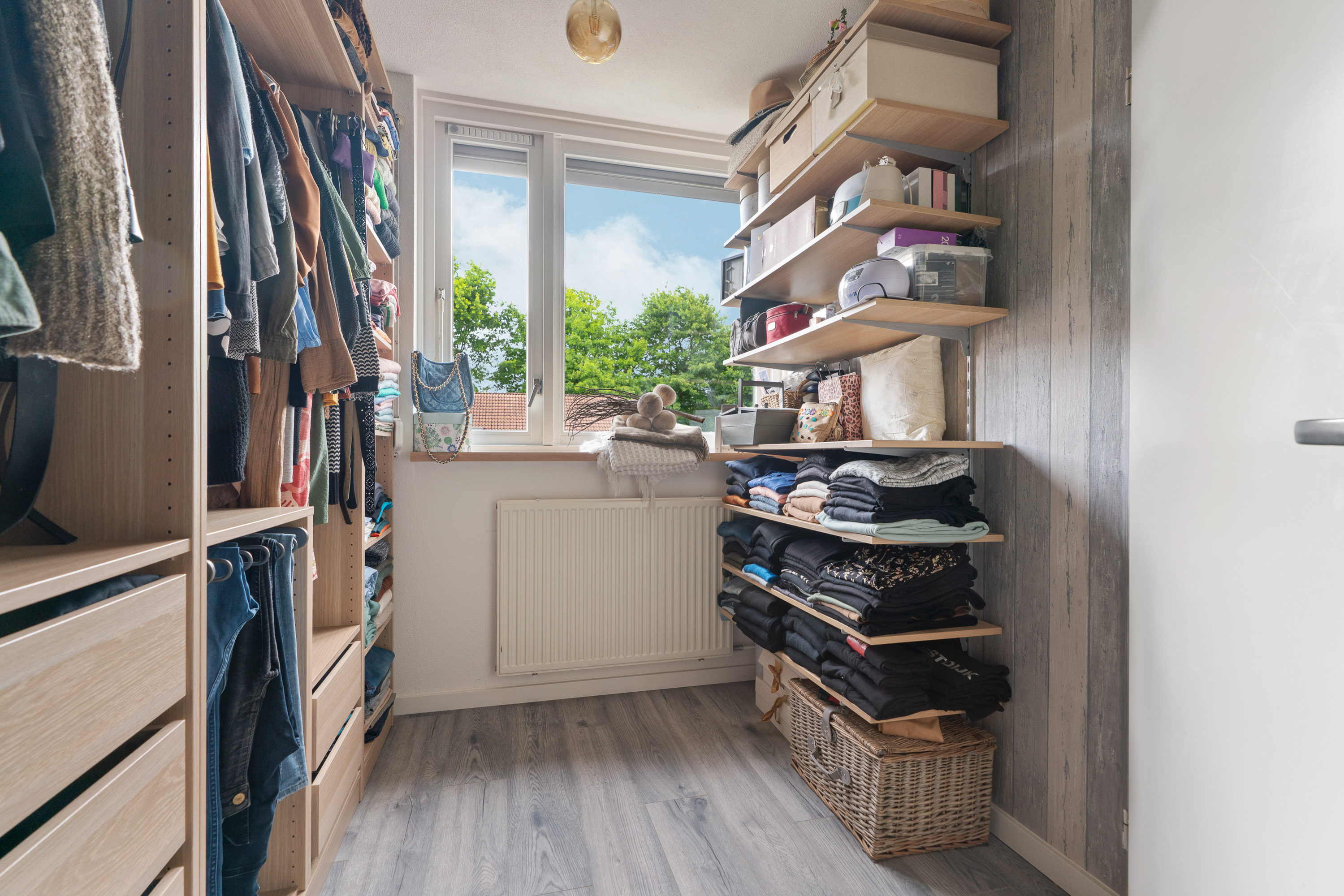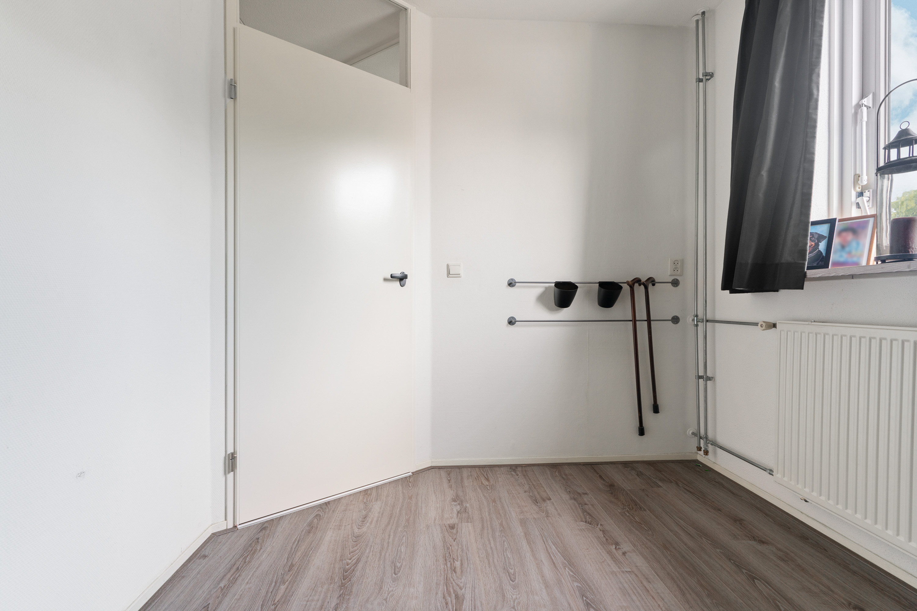 De 2e kamer zou je ook als wasruimte kunnen bestempelen. Hier kun je namelijk de wasmachine en wasdroger aansluiten. Een vaste kast met schuifdeuren biedt extra opbergmogelijkheden.