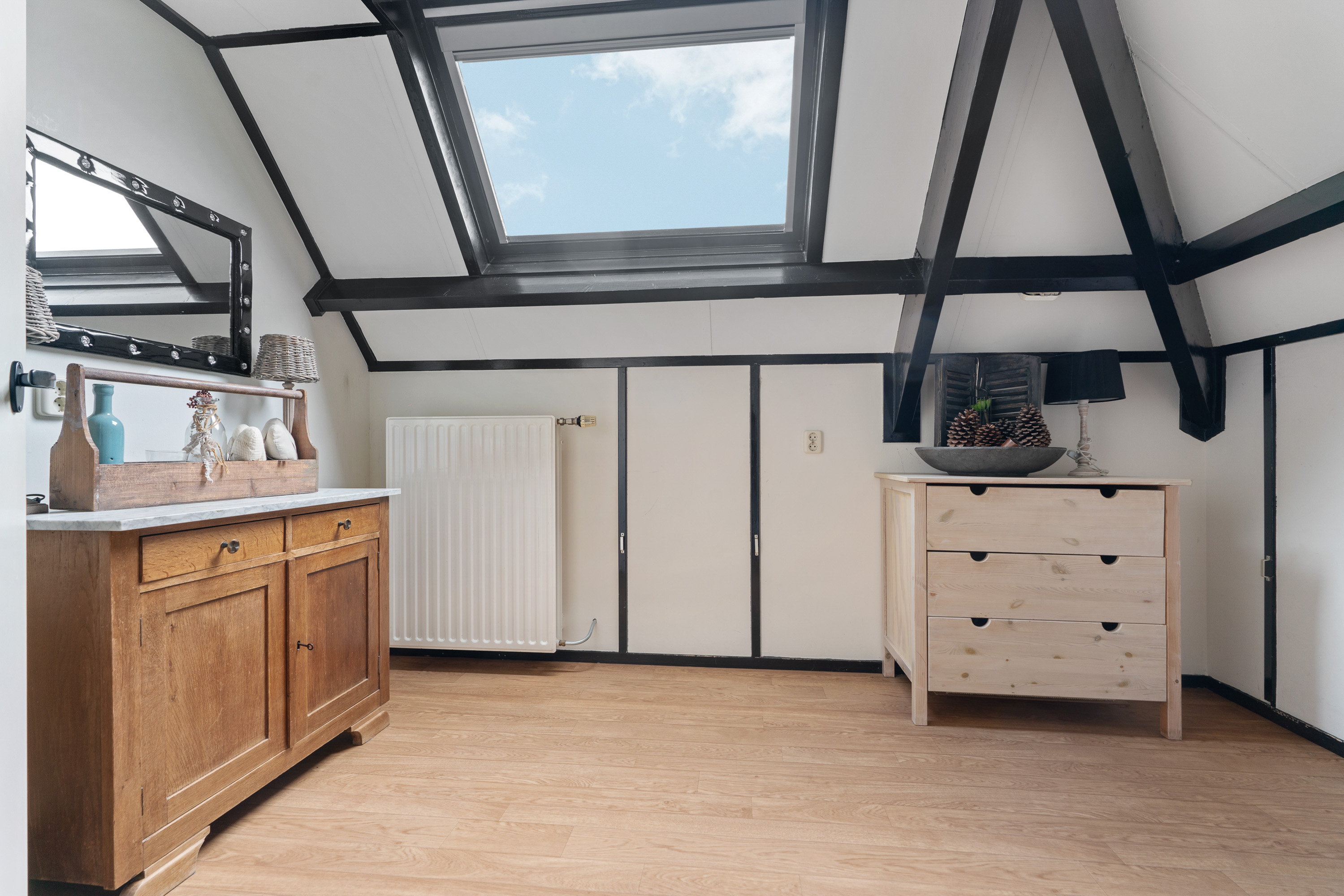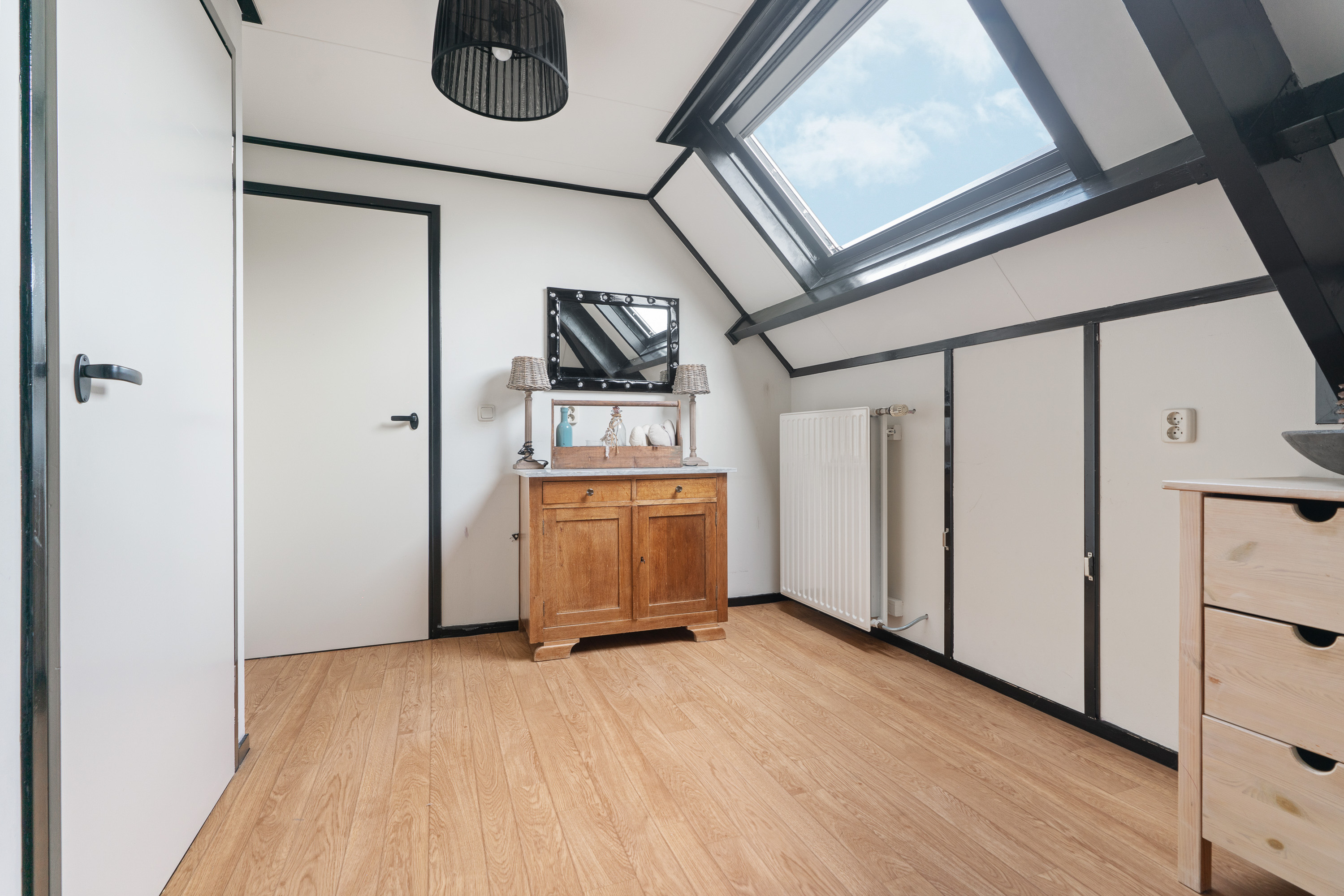 Afsluitbare, multifunctionele ruimte met groot dakvenster en knieschot opbergruimte