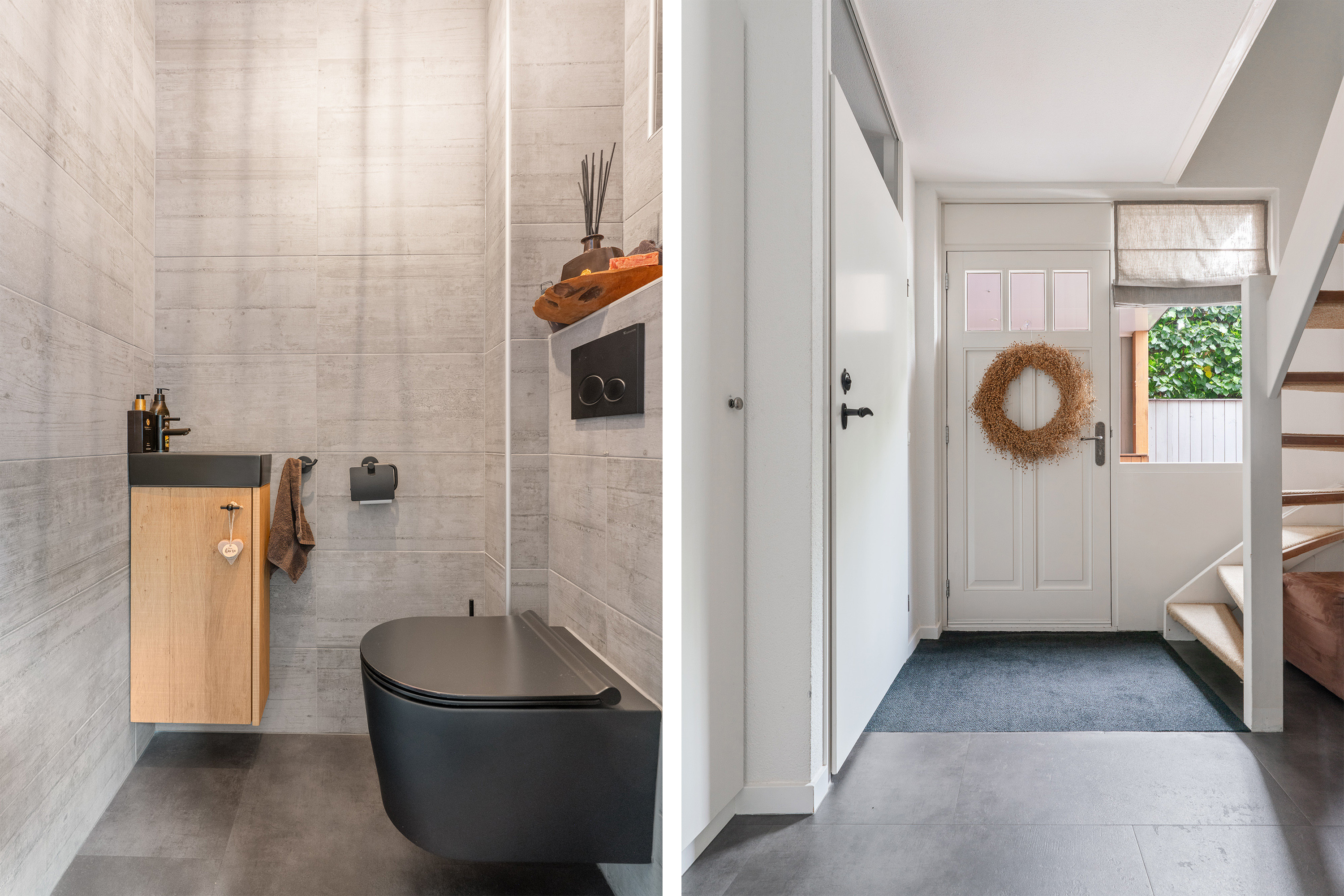 Trendy toilet met zwart design, fonteintje én vloerverwarming