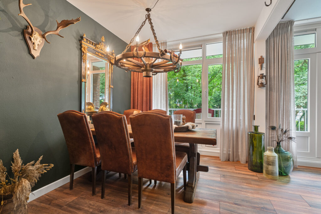 De woonkamer is opvallend breed te noemen. Dat komt doordat de 3e slaapkamer bij de woonkamer is getrokken en er een hele zithoek bijgekomen is. In de huidige setting is er een gezellige zithoek en een eethoek gecreëerd. Noemenswaardig is de prettige lichtinval door de grote raampuien die over de volle breedte van het appartement gesitueerd zijn. Hierdoor kun je ook optimaal genieten van het bosrijke karakter waardoor je de 4 seizoenen op intense wijze zult meekrijgen. Bovendien geniet je hierdoor veel privacy en is er nauwelijks tot geen inkijk. En niet onbelangrijk: het betreft de koele zijde van het complex waardoor het er altijd aangenaam is.
