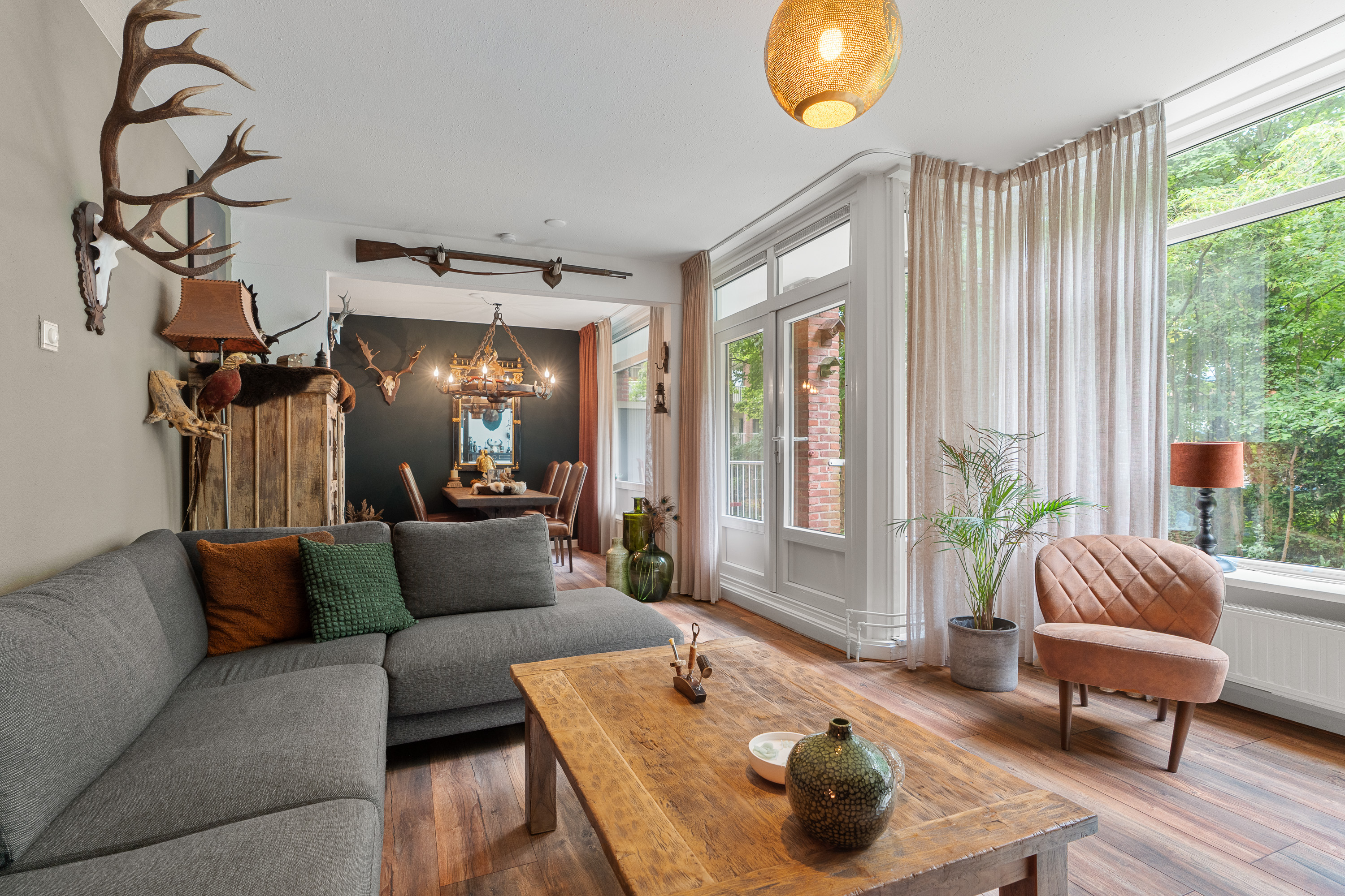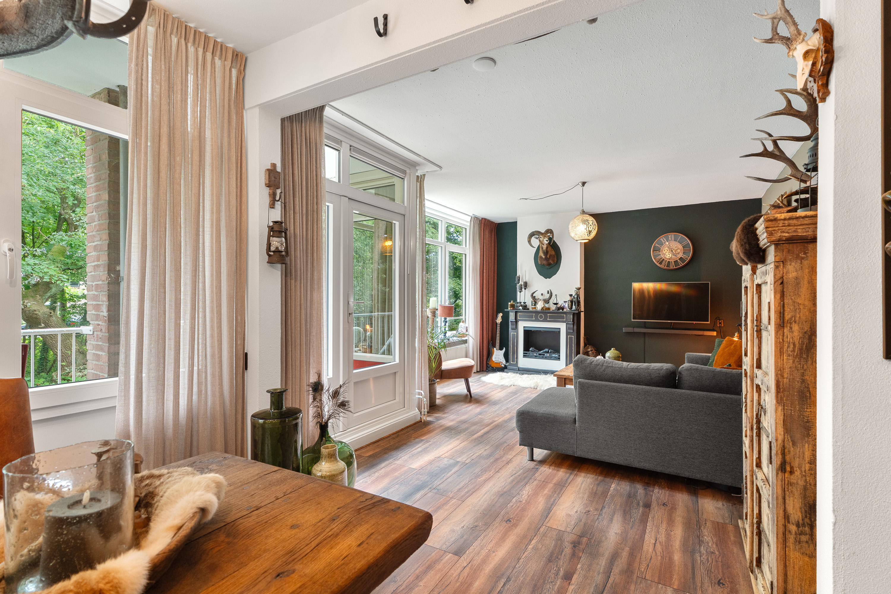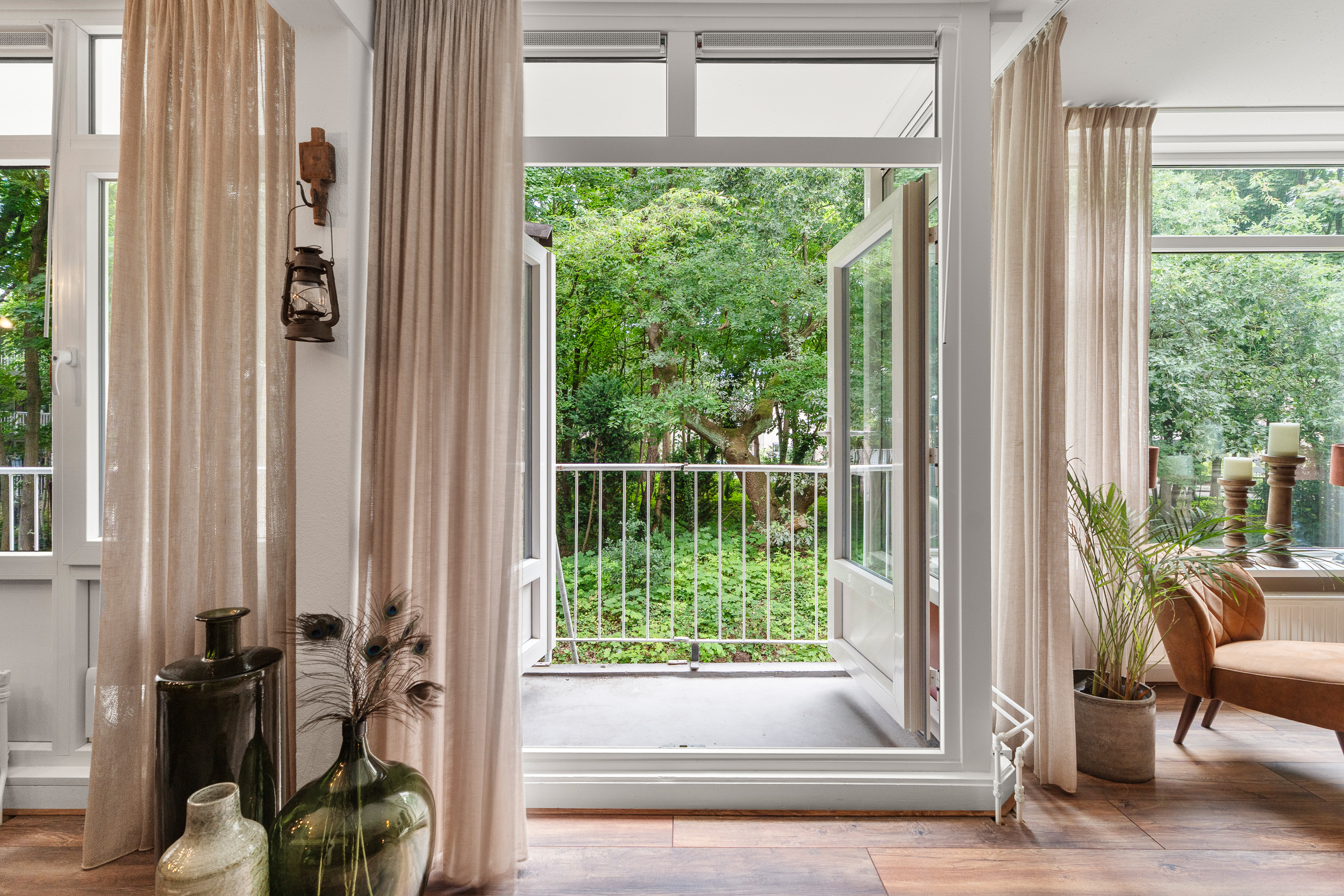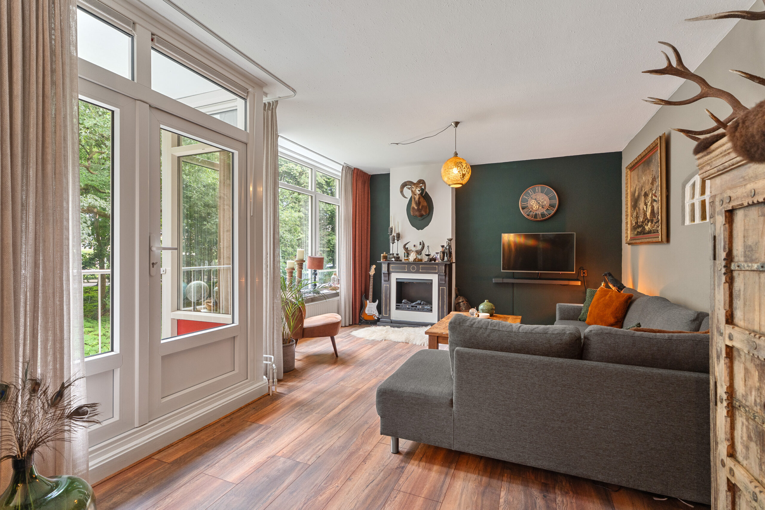 Woonkamer (vergroot) met dubbele deuren naar balkon