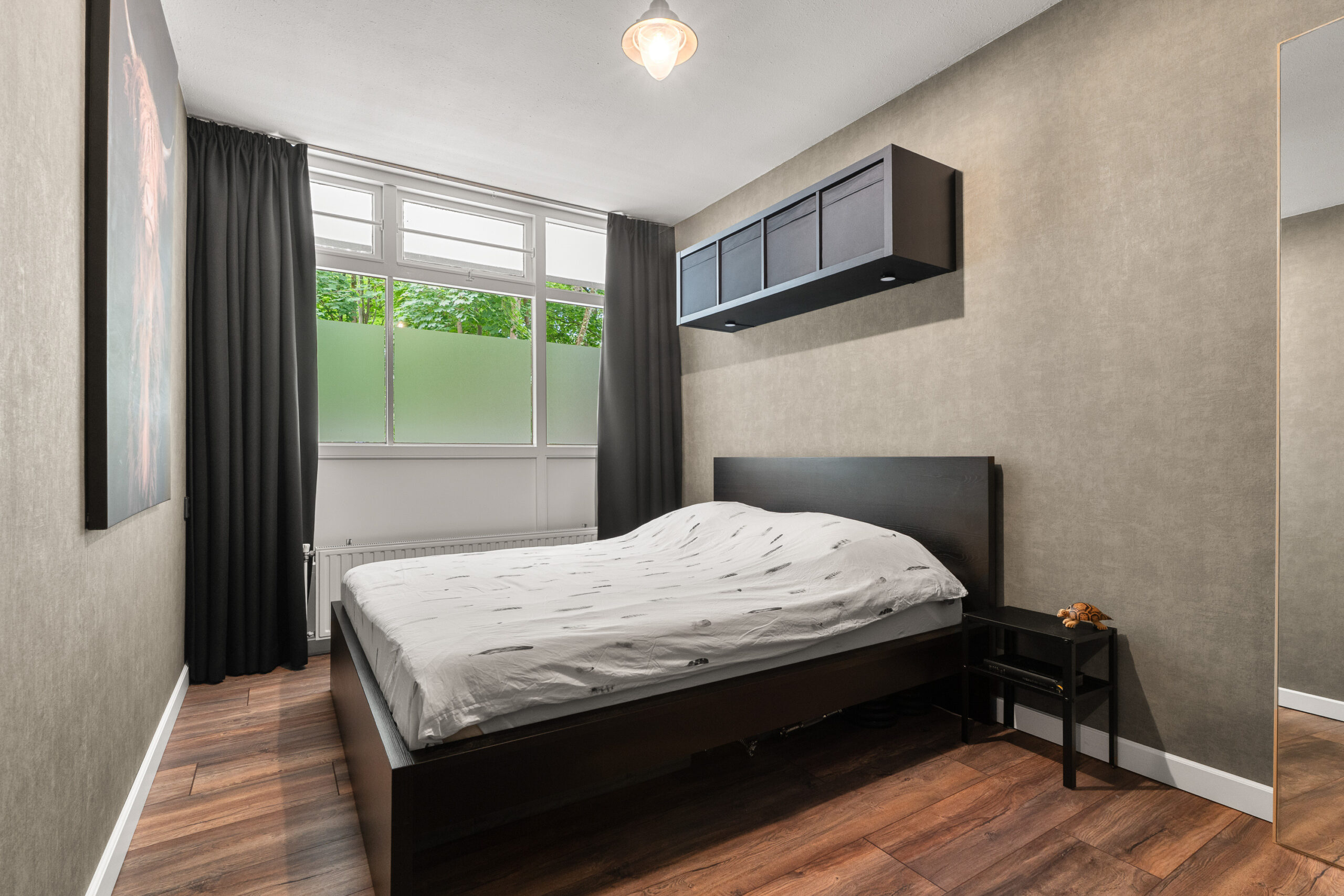 Deze leuke en koele starterswoning heeft een enorm groot pluspunt, namelijk een bijzonder brede woonkamer met veel glas en groen uitzicht. Deze hele achterzijde is volledig voorzien van kunststof kozijnen en HR++ beglazing. Tevens heeft het een brede pui met dubbele deuren naar het balkon. De keuken is eenvoudig te noemen, maar de badkamer is wel gemoderniseerd en voorzien van trendy sanitair en tegelwerk. Het appartement telt verder 2 slaapkamers waarvan de grootste ruimte biedt aan een groot 2-persoons bed en een linnenkast.