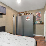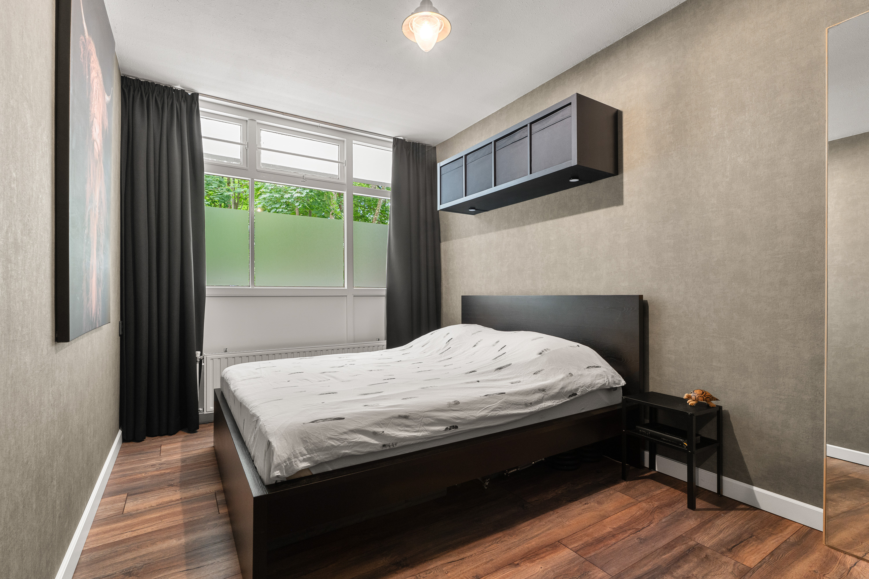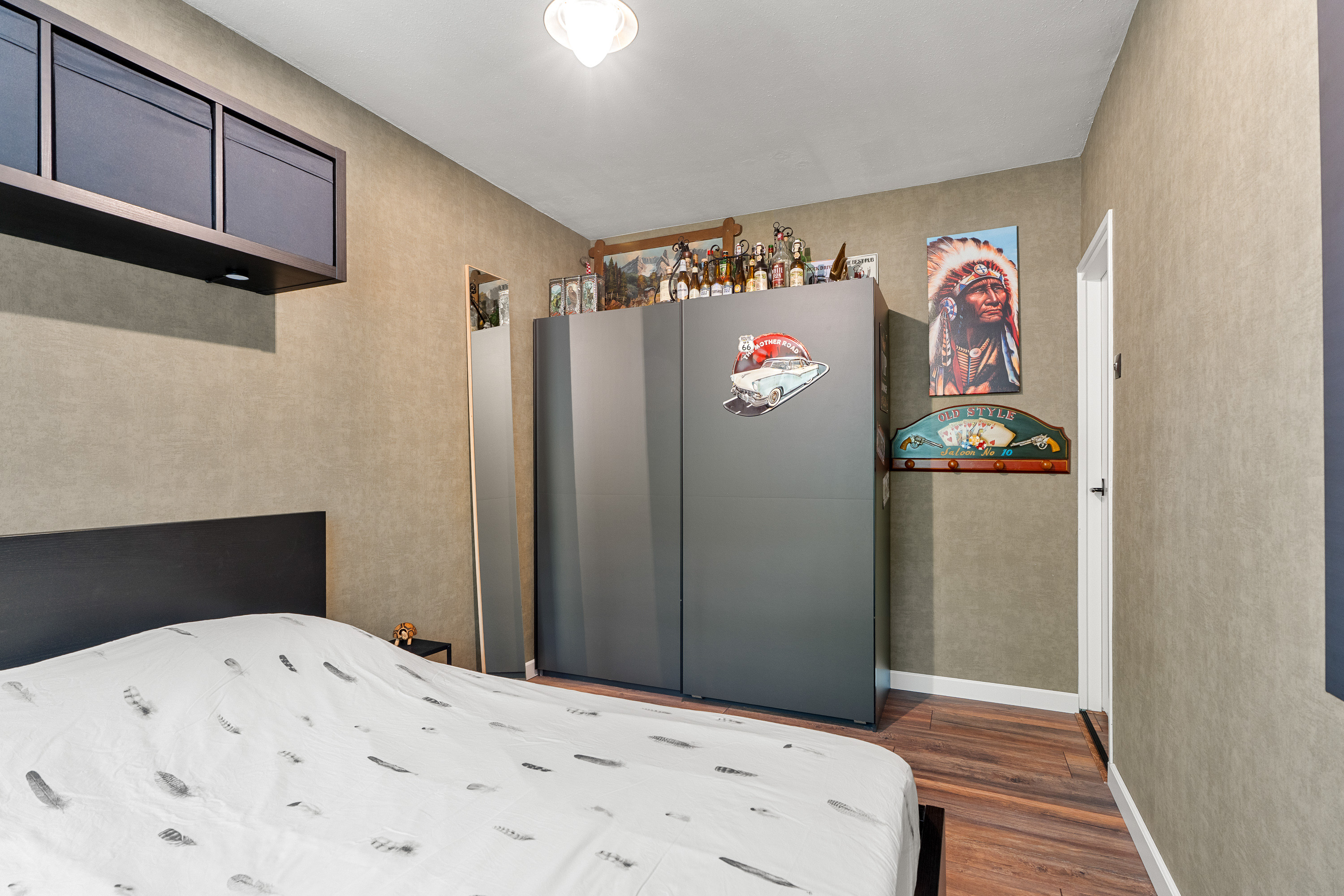 Dit appartement heeft 2 slaapkamers waarvan de grootste ruimte biedt aan een volwaardig 2-persoons bed en een linnenkast. Ondanks grote meubelstukken kun je nog steeds comfortabel om je bed heen lopen. De 2e slaapkamer is ideaal wanneer je veel vanuit huis werkt en een werkkamer nodig hebt of een hobby uitoefent. Het laatste is bij de huidige bewoners het geval. Omdat de 2e slaapkamer erg vol staat, hebben we deze kamer helaas niet kunnen fotograferen. Tijdens een rondleiding kunnen we voor jou de deur open doen…