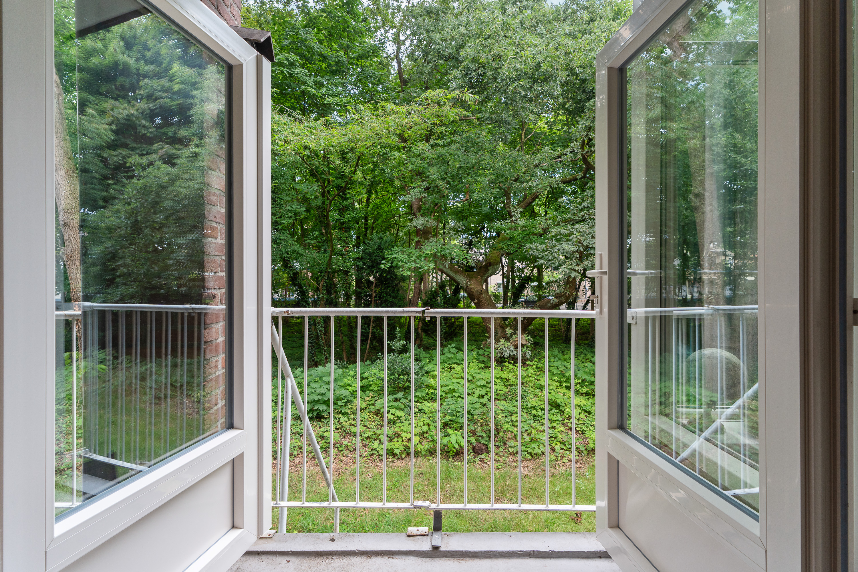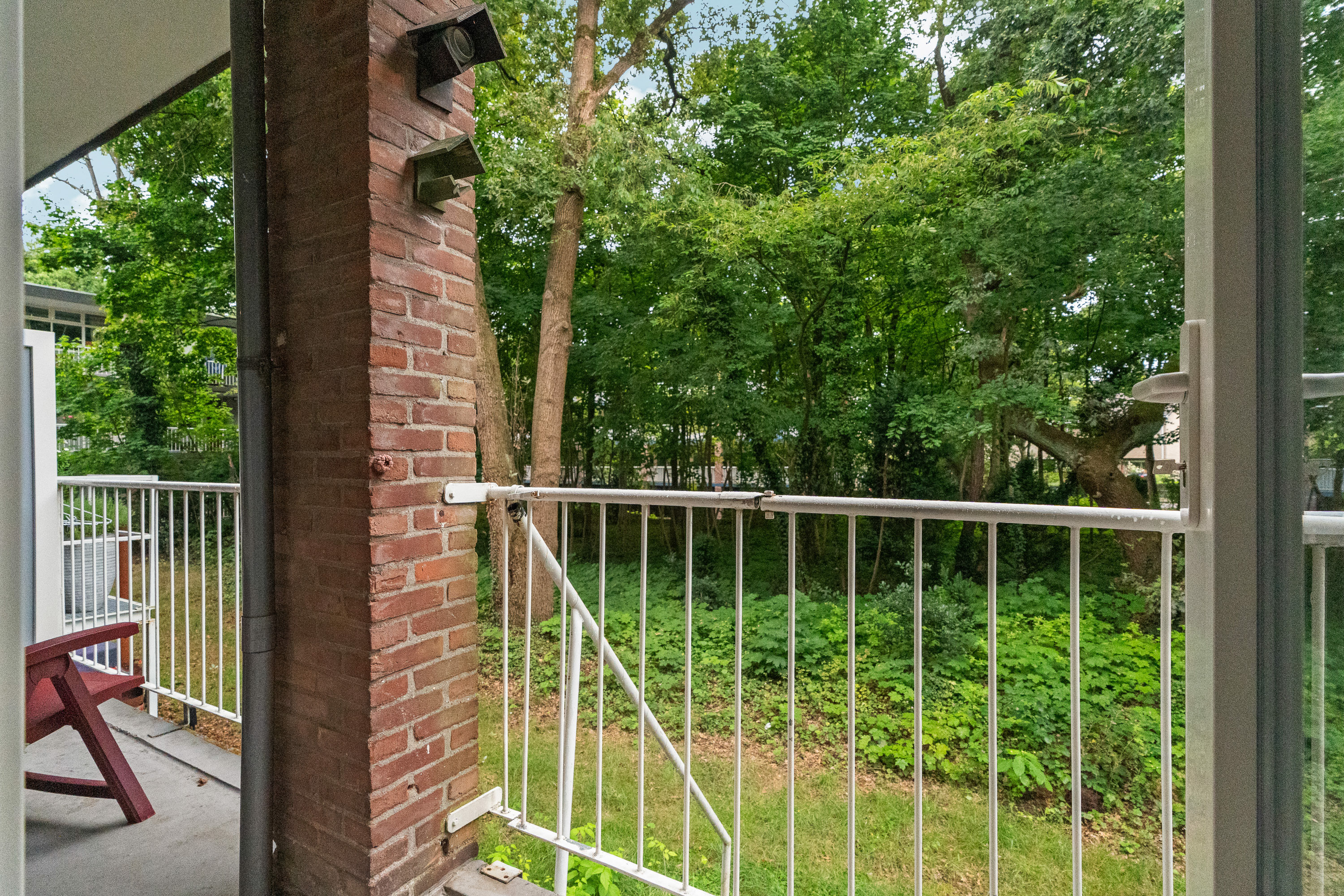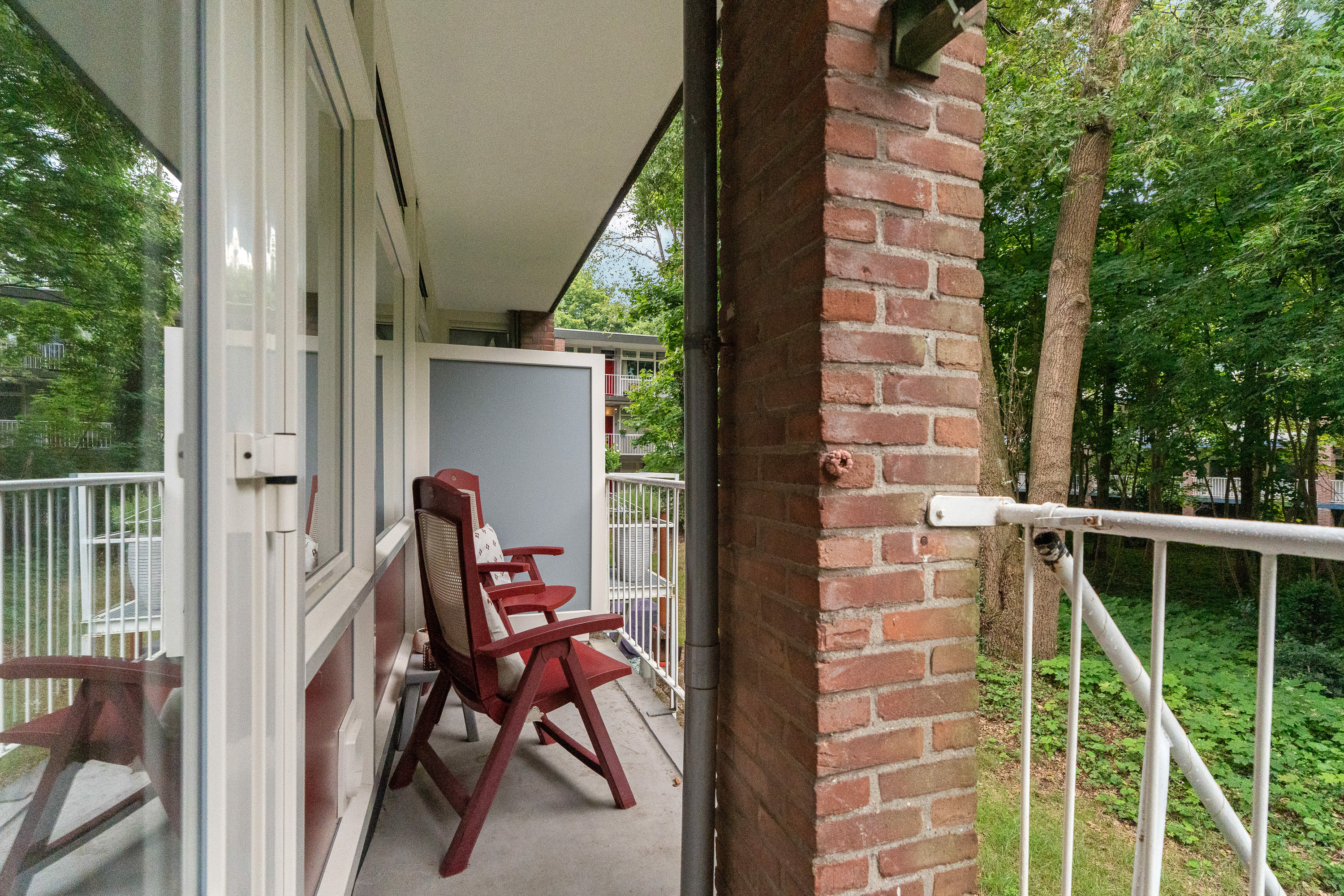 Het balkon grenst direct aan de woonkamer en is toegankelijk middels de dubbele deuren. Hierdoor betrek je het buitenleven eenvoudig bij de woonkamer. Het balkon is inpandig gelegen en daardoor volledig overdekt. Hierdoor kun je droog en beschut buiten zitten, ook wanneer het even iets minder weer is.