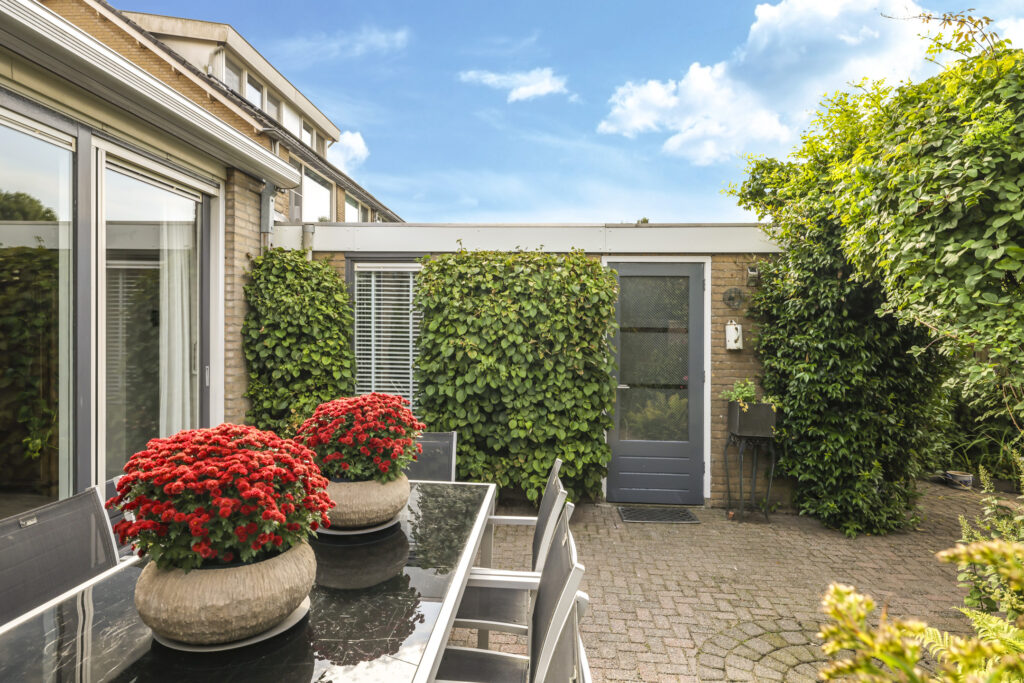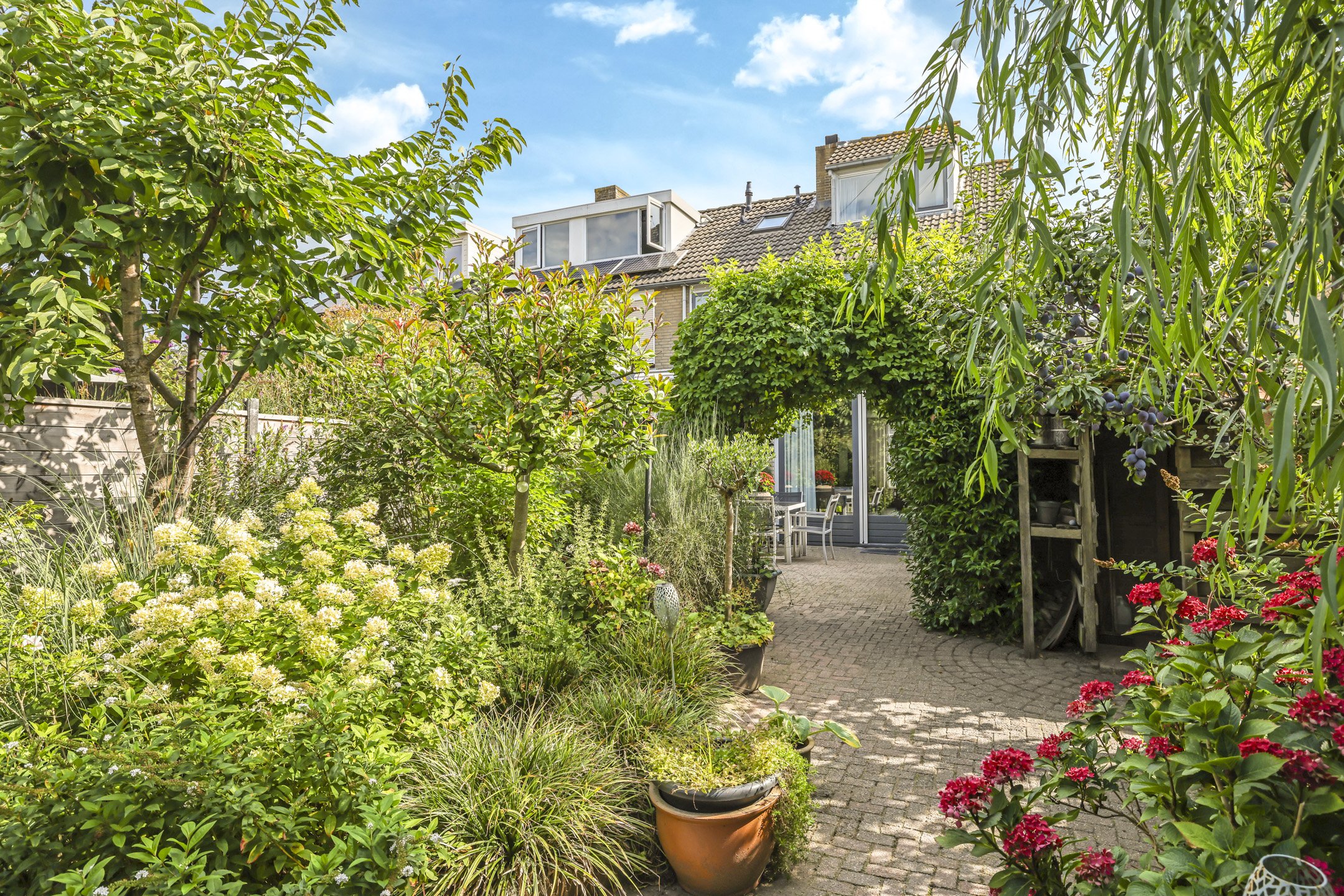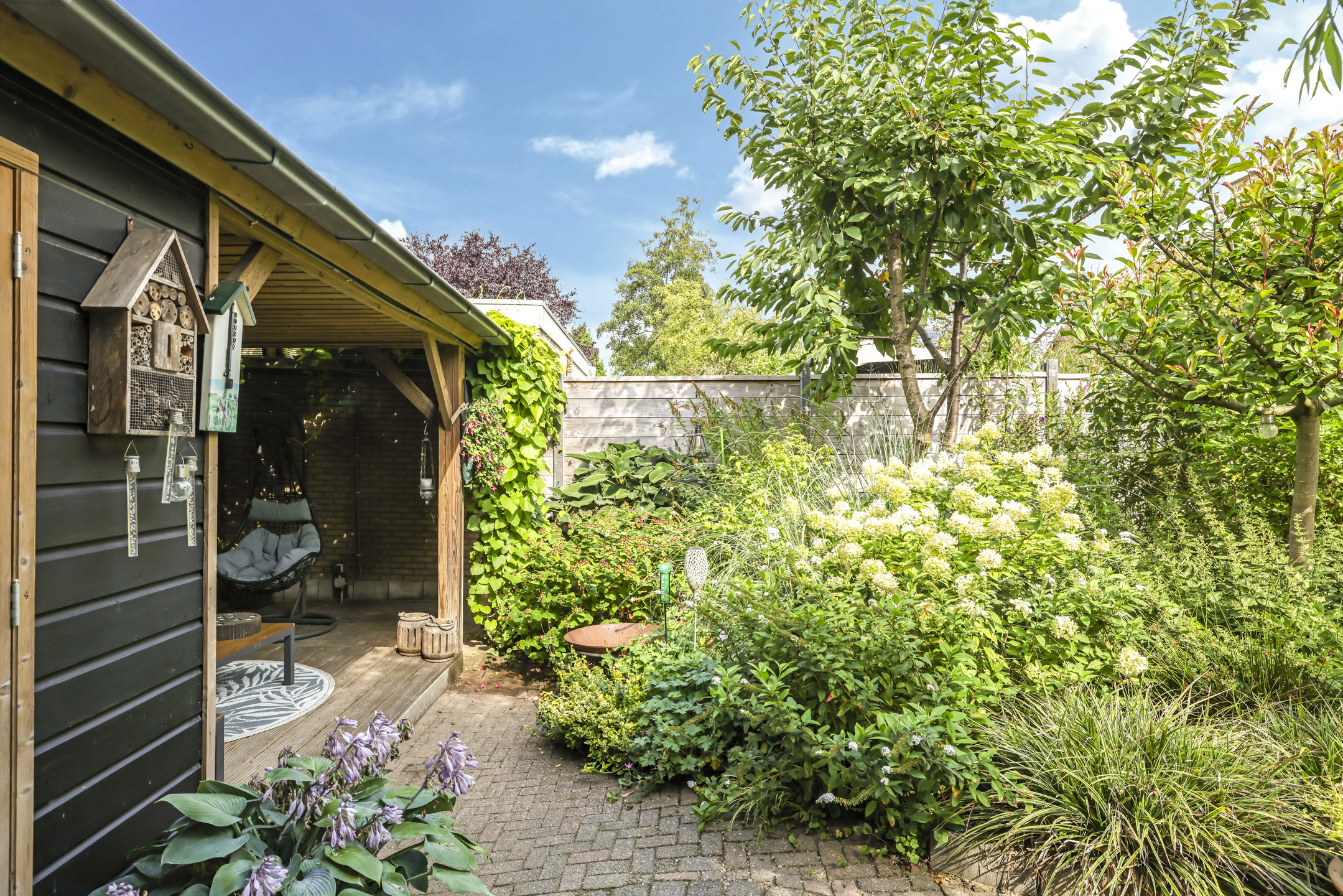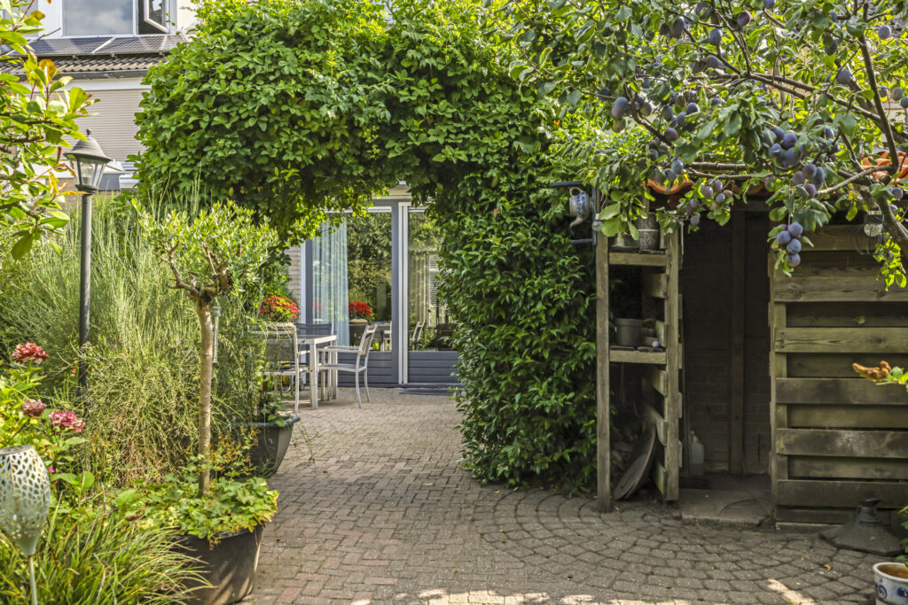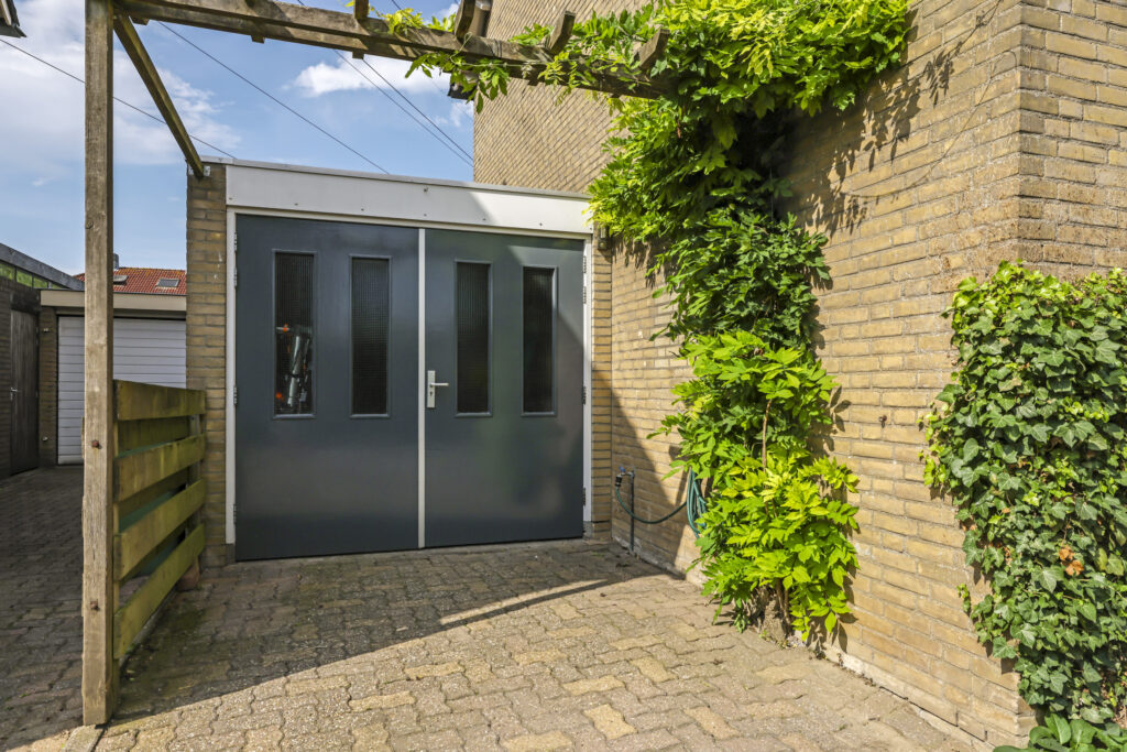 Ben je een tuinliefhebber, dan zal je deze achtertuin zeker aanspreken. Deze tuin is maar liefst ca. 16 meter diep en is daarmee veel dieper dan de gemiddelde achtertuin in het segment. En doordat de woning van zichzelf al vrij breed is en er nog een garage naast staat, is de tuin ook nog eens ca. 9 meter breed. Tevens heeft de tuin veel zonuren doordat het op het zonnige zuidwesten is gelegen. Om schaduw te creëren is er aan de achtergevel elektrisch bedienbare zonwering geplaatst. In het verlengde van de werkkamer tref je nog een stenen berging aan om te klussen en voor het nodige (tuin)gereedschap op te bergen. Is deze ruimte te klein, dan heb je achterin nóg een houten tuinhuis. Dit tuinhuis is opgebouwd uit een berging (3 x 3 m) en een overdekte sfeervolle veranda (3 x 3 m) gebouwd. Hier kan je heerlijk beschut in de schaduw en met veel privacy in de tuin zitten. In deze veranda is elektra en bedraad internet aanwezig.