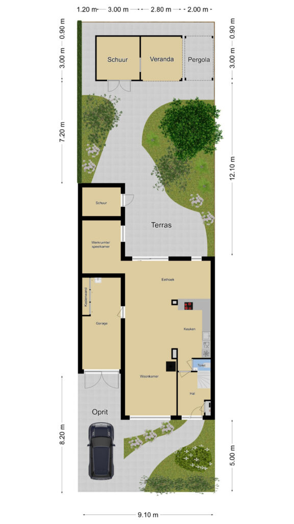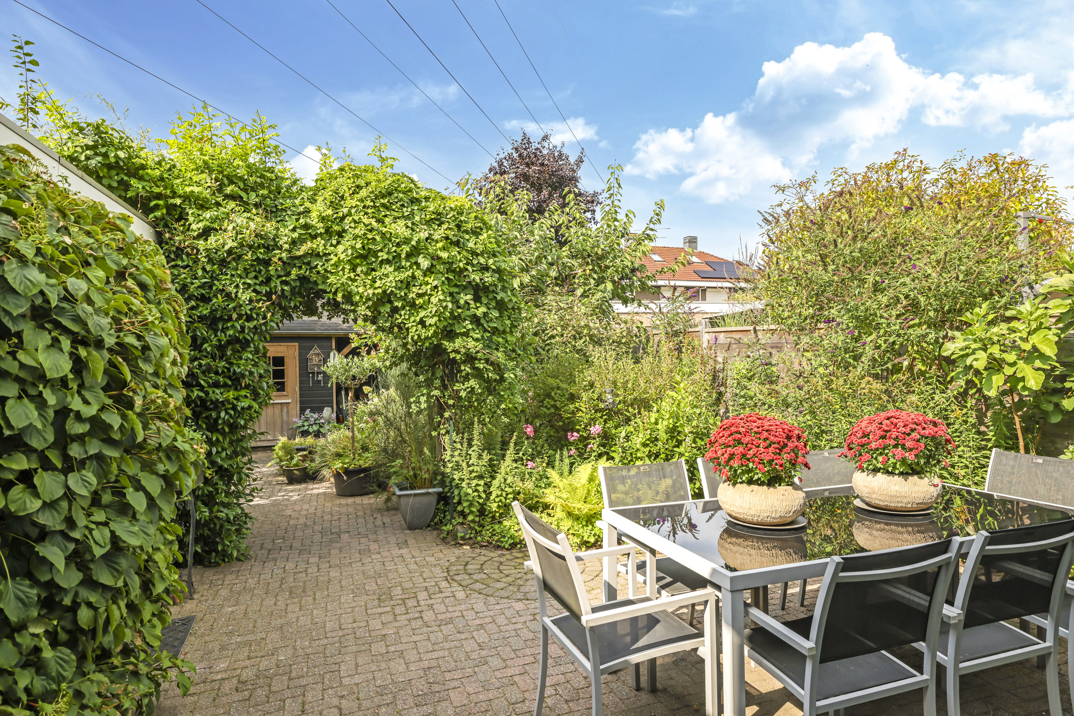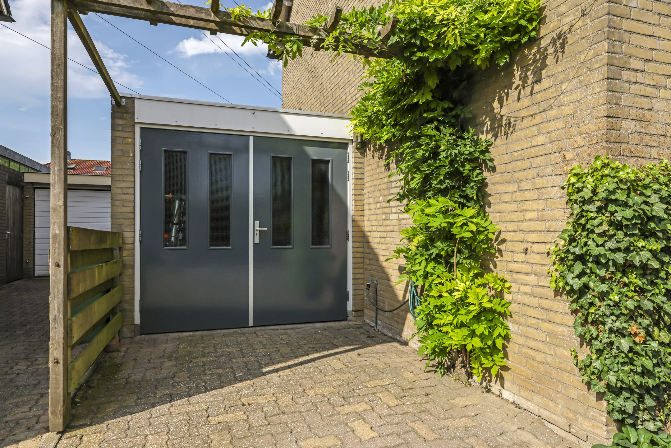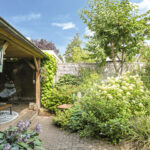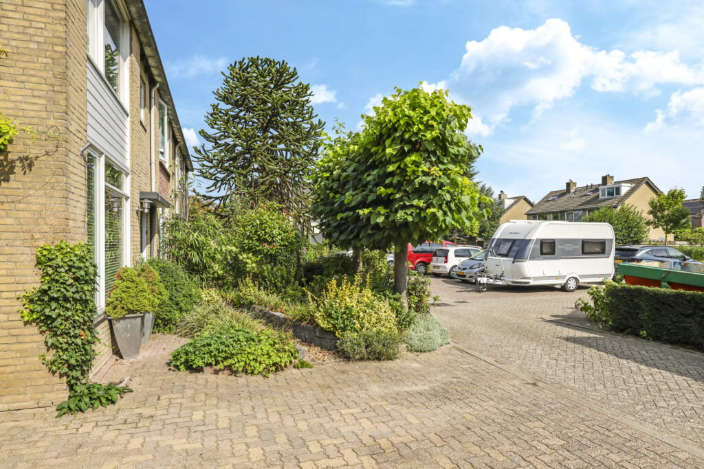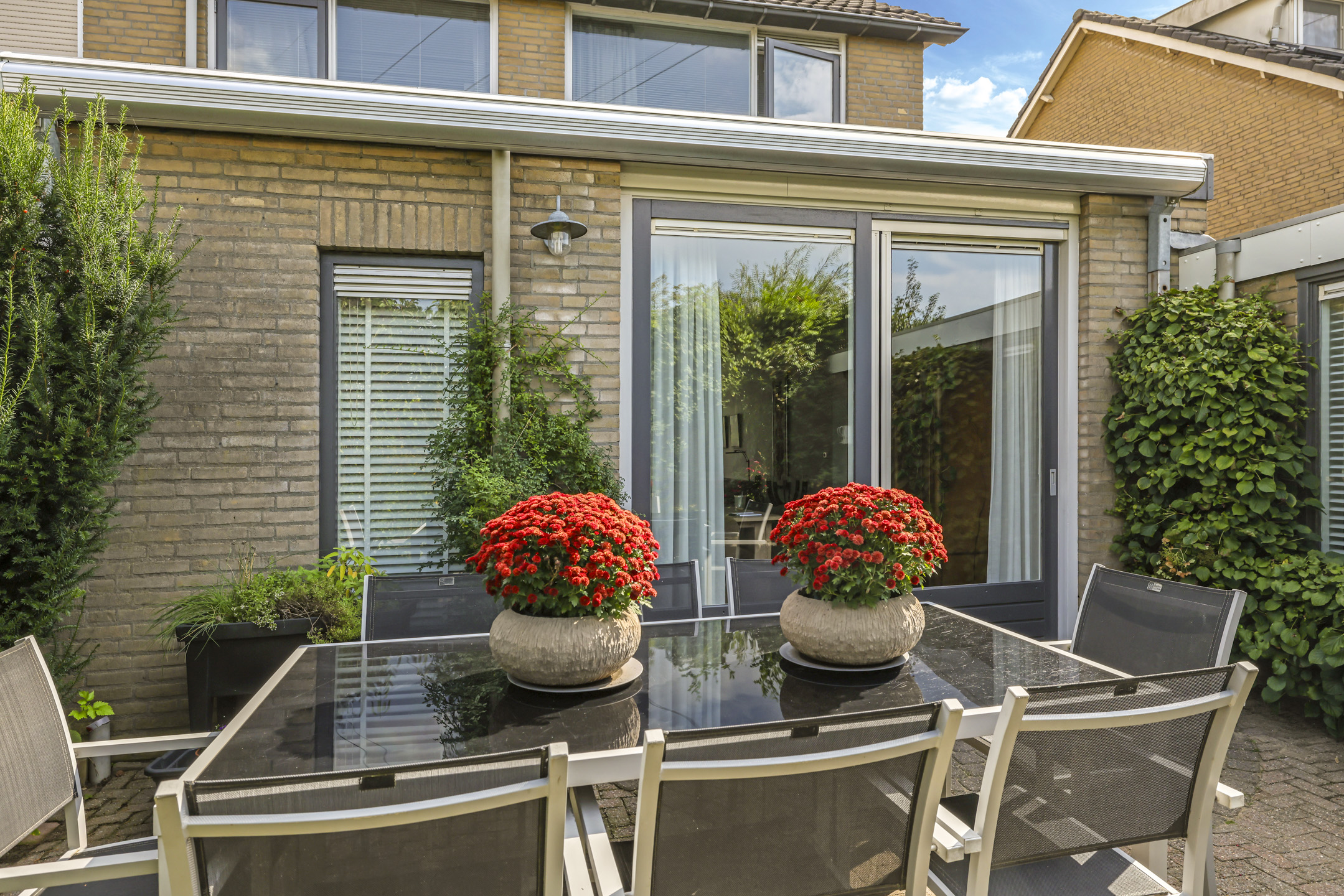 Ben je een tuinliefhebber, dan zal je deze achtertuin zeker aanspreken. Deze tuin is maar liefst ca. 16 meter diep en is daarmee veel dieper dan de gemiddelde achtertuin in het segment. En doordat de woning van zichzelf al vrij breed is en er nog een garage naast staat, is de tuin ook nog eens ca. 9 meter breed. Tevens heeft de tuin veel zonuren doordat het op het zonnige zuidwesten is gelegen. Om schaduw te creëren is er aan de achtergevel elektrisch bedienbare zonwering geplaatst. In het verlengde van de werkkamer tref je nog een stenen berging aan om te klussen en voor het nodige (tuin)gereedschap op te bergen. Is deze ruimte te klein, dan heb je achterin nóg een houten tuinhuis. Dit tuinhuis is opgebouwd uit een berging (3 x 3 m) en een overdekte sfeervolle veranda (3 x 3 m) gebouwd. Hier kan je heerlijk beschut in de schaduw en met veel privacy in de tuin zitten. In deze veranda is elektra en bedraad internet aanwezig.