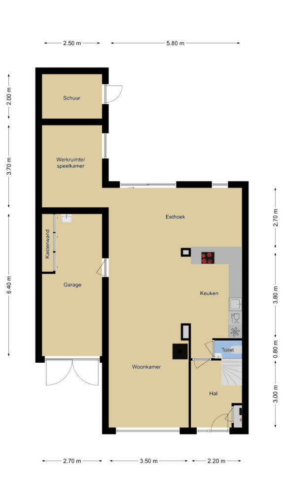 Een groot pluspunt aan deze woning is de aangebouwde werkruimte/speelkamer. Voorheen was dit de garage. Doordat de woning is uitgebouwd is de voormalige garage bereikbaar geworden vanuit de woonkamer waarna de garage is verbouwd tot woonruimte. Dit is een zeer praktische ruimte geworden voor bijvoorbeeld een fijne thuiswerkplek (met bedraad internet) of een hoek waar de kinderen kunnen spelen. De vloerverwarming is ook hier doorgetrokken.