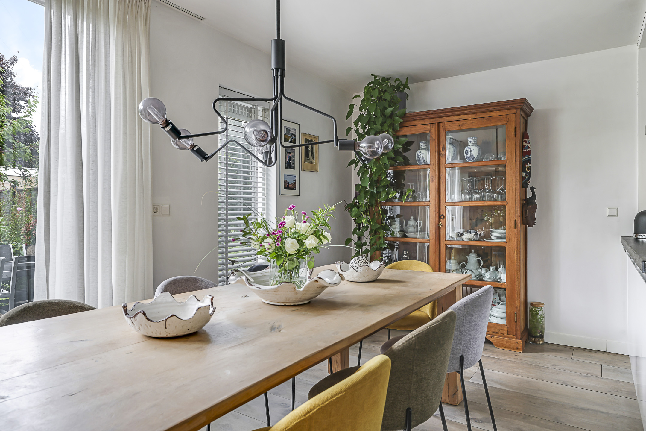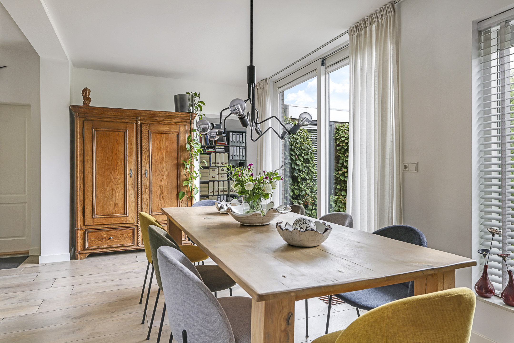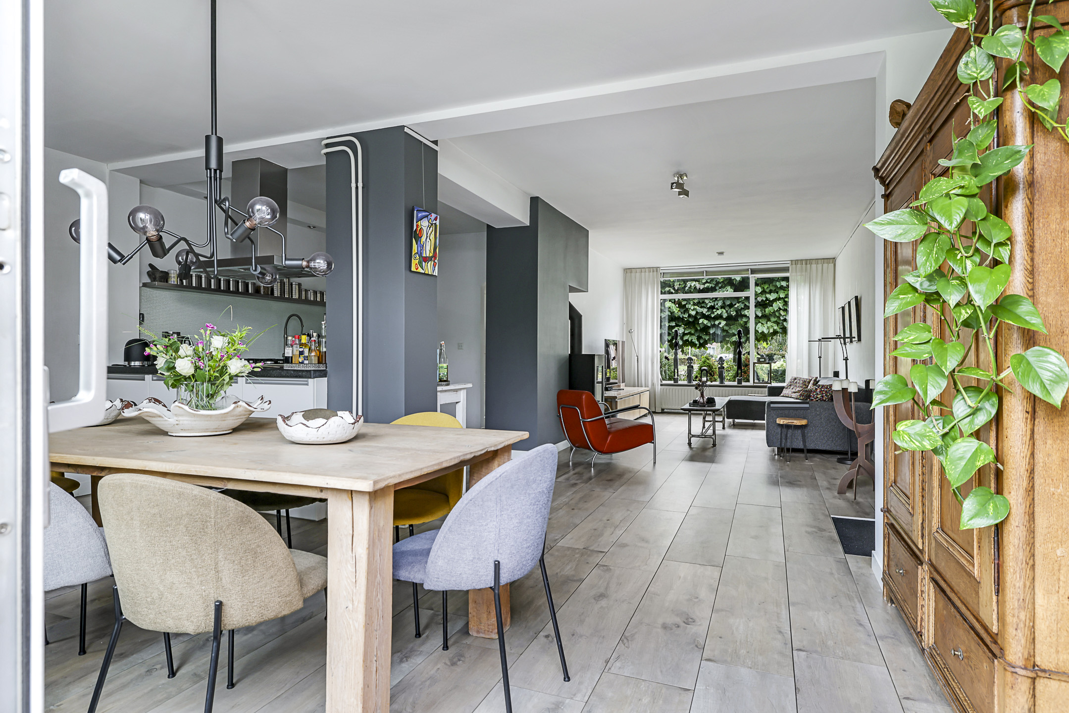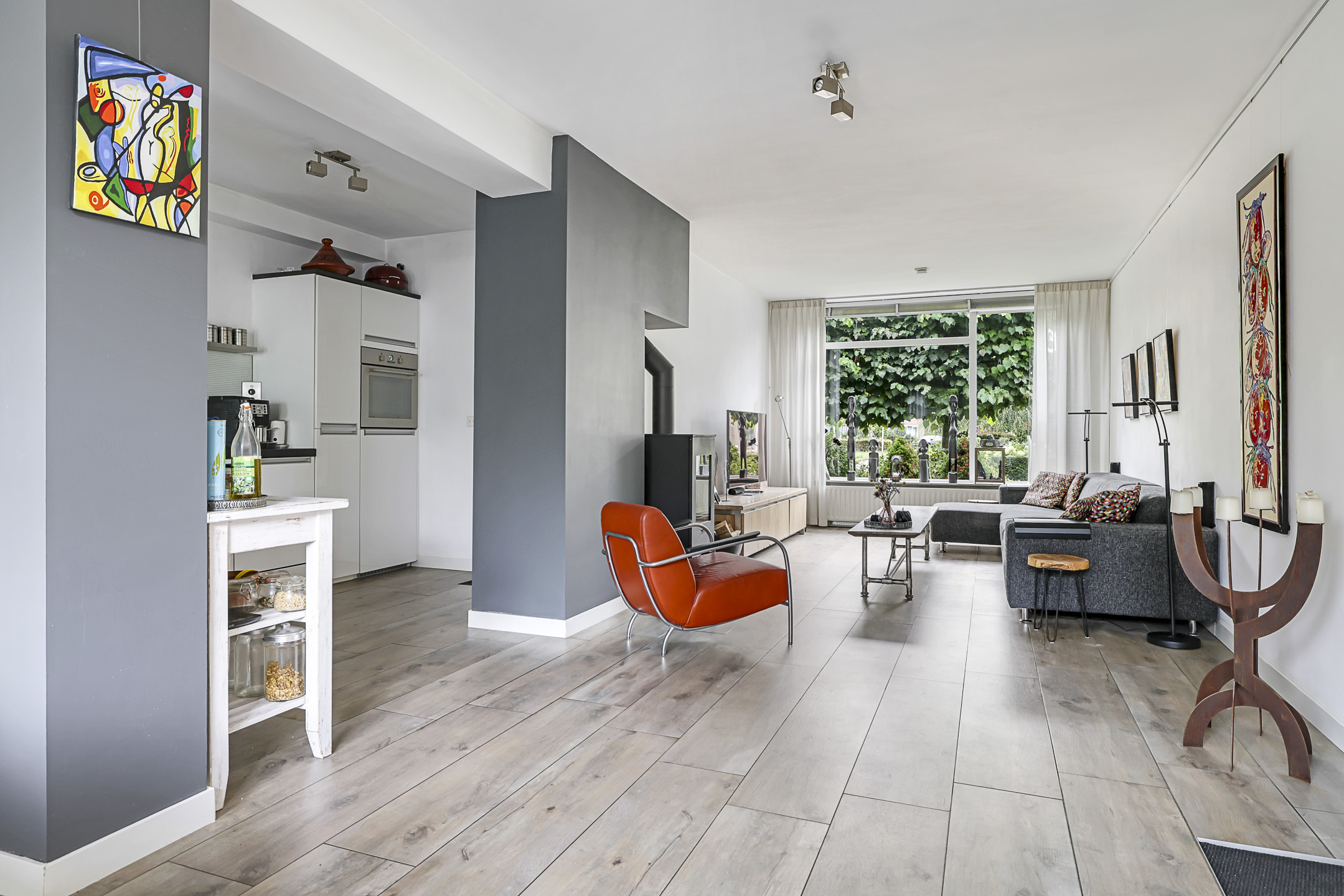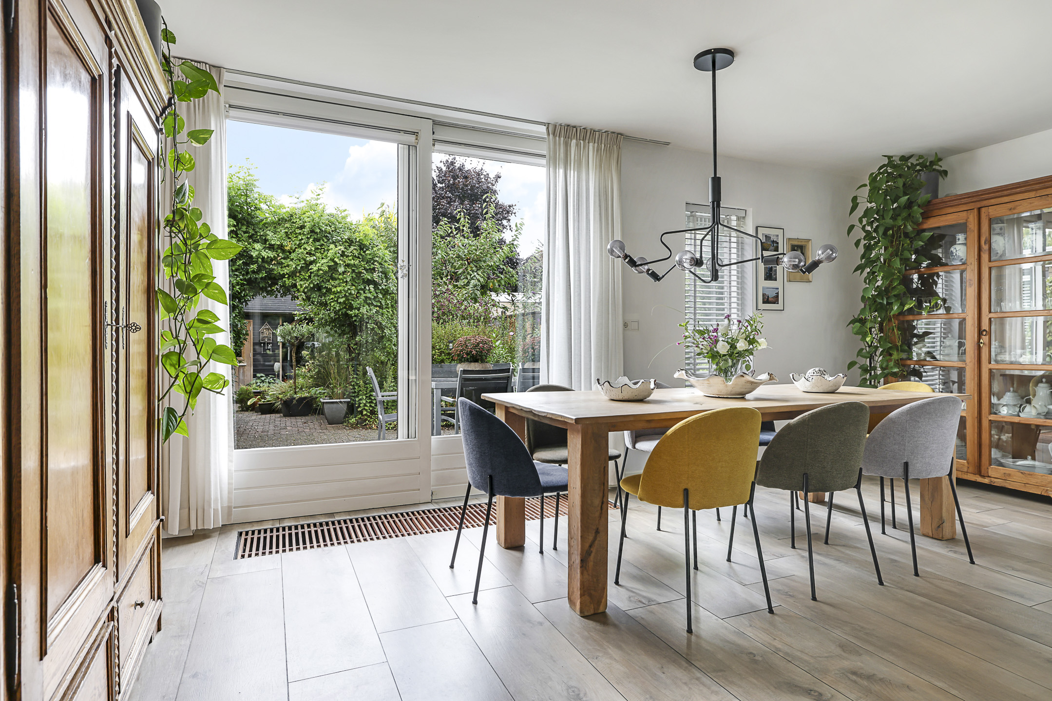 Uitgebouwde doorzonwoonkamer met houtkachel en schuifpui