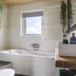 Badkamer met ligbad, douche, wastafel en 2e toilet