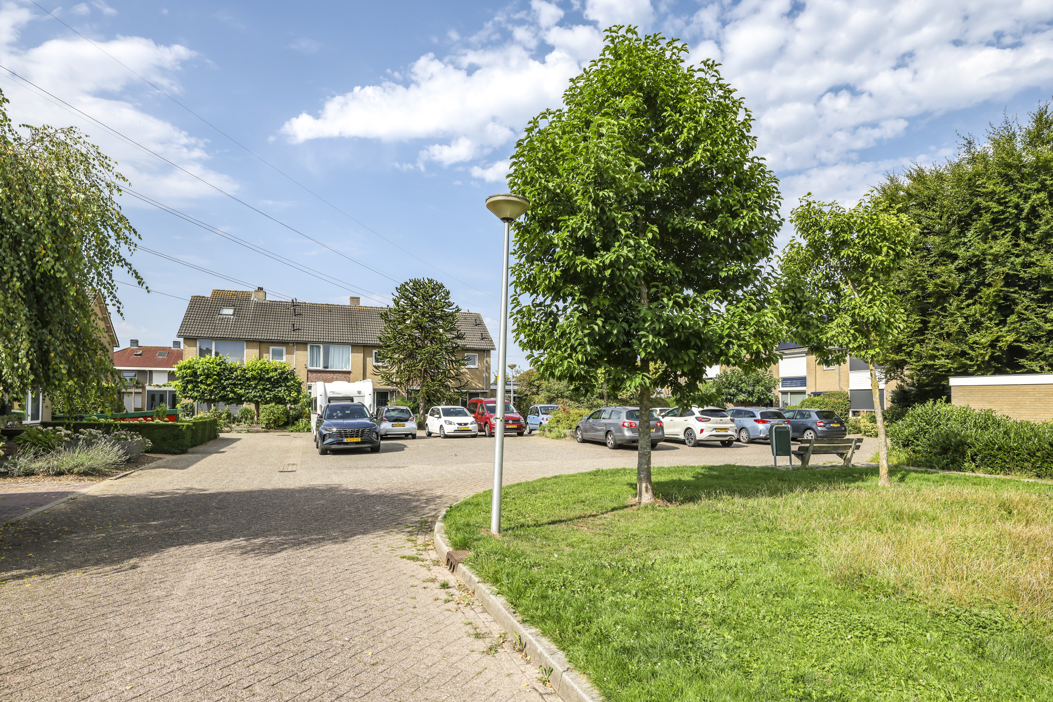 De originele garage is bij de woning betrokken. Echter is het hebben van een garage een zeer fijne bijkomstigheid. Vandaar dat er voor de originele garage een nieuwe garage is gebouwd. Deze is tevens binnendoor bereikbaar gemaakt via een toegangsdeur met de woonkamer. Dubbele deuren aan de voorzijde geven toegang tot de oprit. In de garage is elektra en warm- en koud water aanwezig. Een vaste kastenwand zorgt voor veel opbergruimte. Vóór de garage is een oprit gelegen waardoor je ten alle tijden een auto op eigen terrein parkeert. In het midden van het hofje is nog voldoende parkeergelegenheid voor een 2e auto.