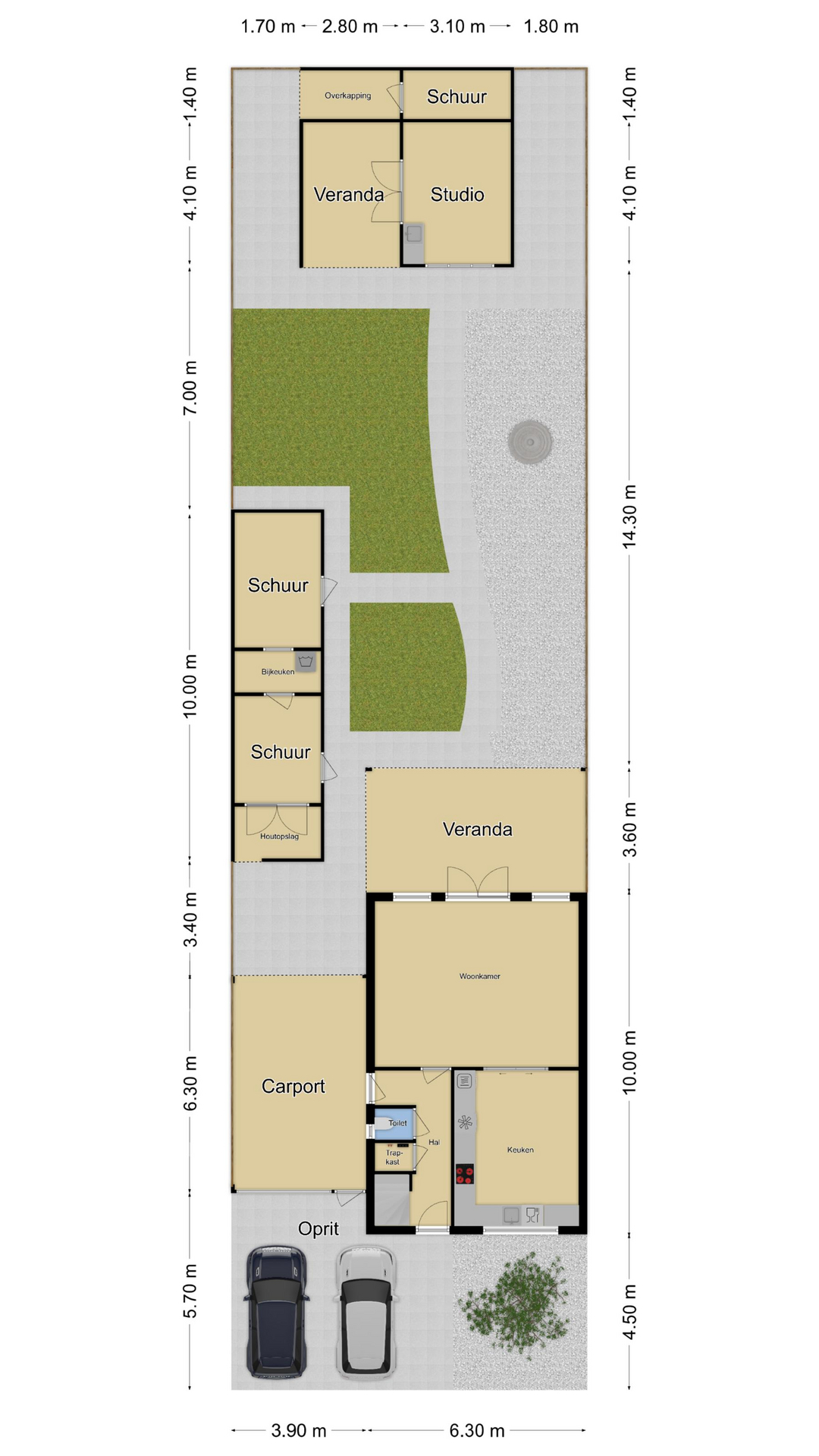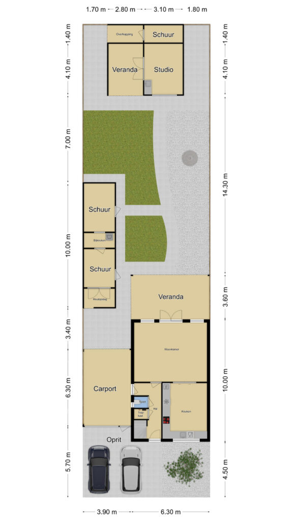 – Oprit voor de carport gelegen, plaats voor 2 auto’s naast elkaar
