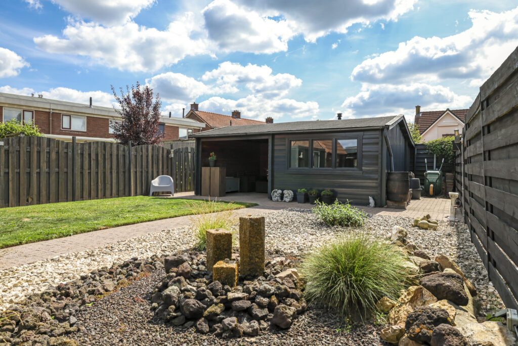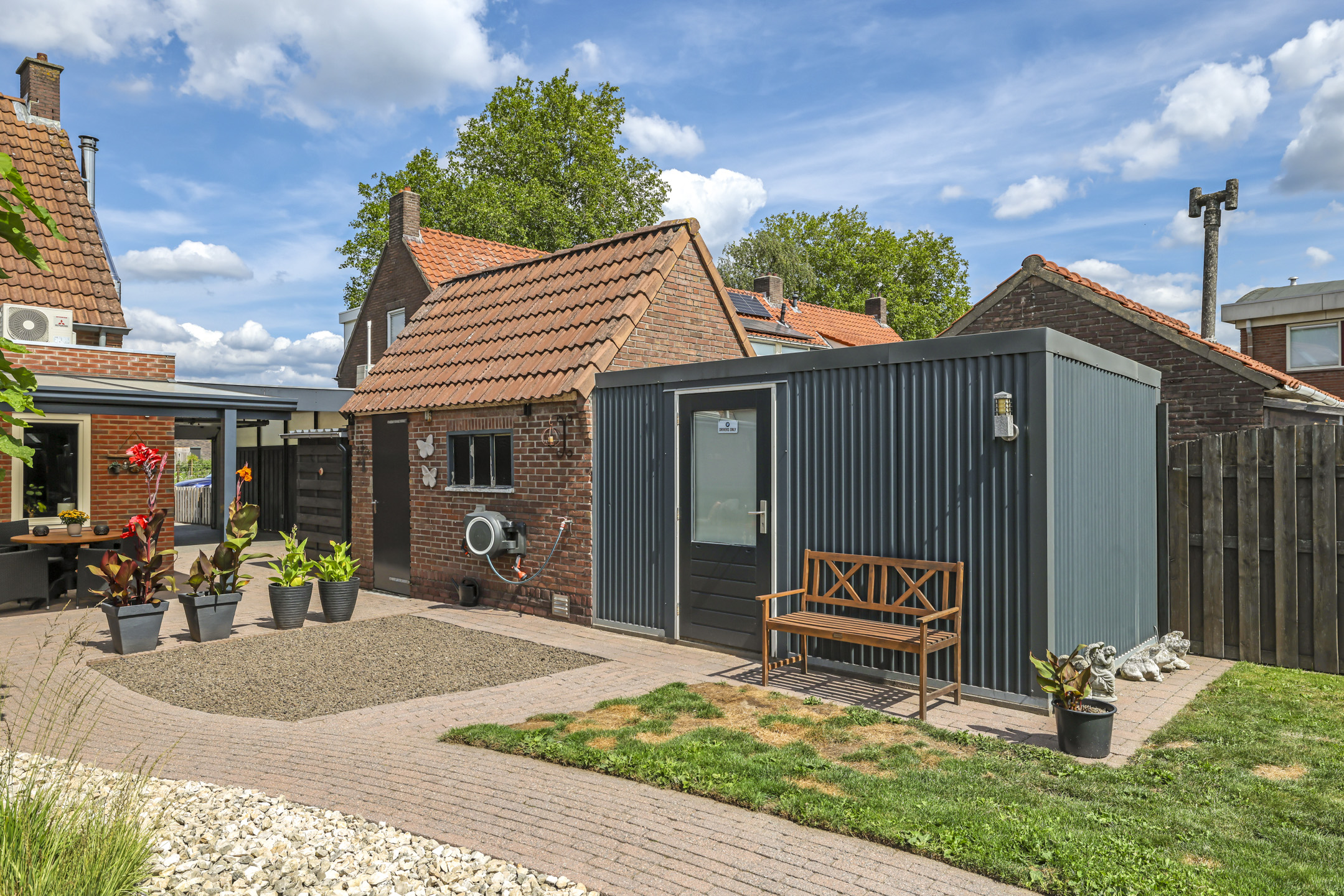 Rondom de woning is pas echt veel te vinden. Direct naast de woning is een brede, hoge carport geplaatst met elektrische deur. In totaal zijn er 3 schuren aanwezig waardoor opbergruimte geen gebrek zal zijn. Achter in de tuin staat zelfs een studio, compleet met een kitchenette met warm en koud water, een gaskachel én airconditioning. Ideaal om te gebruiken als werk/praktijkruimte, maar ook een zoon of dochter kan hier ‘op zichzelf’ wonen. Daarbij tref je nog een overkapping én een veranda waardoor er altijd een rustige zithoek te vinden is. Met de tuin pal op het zuiden kom je ook geen zonnestraal te kort.