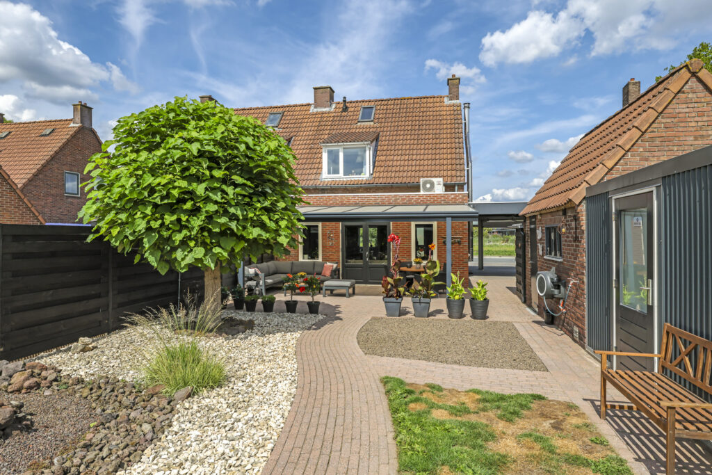 Quote van de makelaar: “Dit is geen standaard 2-kapper meer te noemen. Met o.a. een uitbouw en 2 dakkapellen heeft de woning veel extra leefruimte. Daarbij kom je buiten zeker geen ruimte tekort met 2 overkappingen, een royale carport, maar liefst 3 schuren én een studio. Bovendien woon je hier aan de rand van het dorp met een vrij uitzicht aan de voorzijde, en toch met de dorpskern en basisscholen binnen handbereik.”
