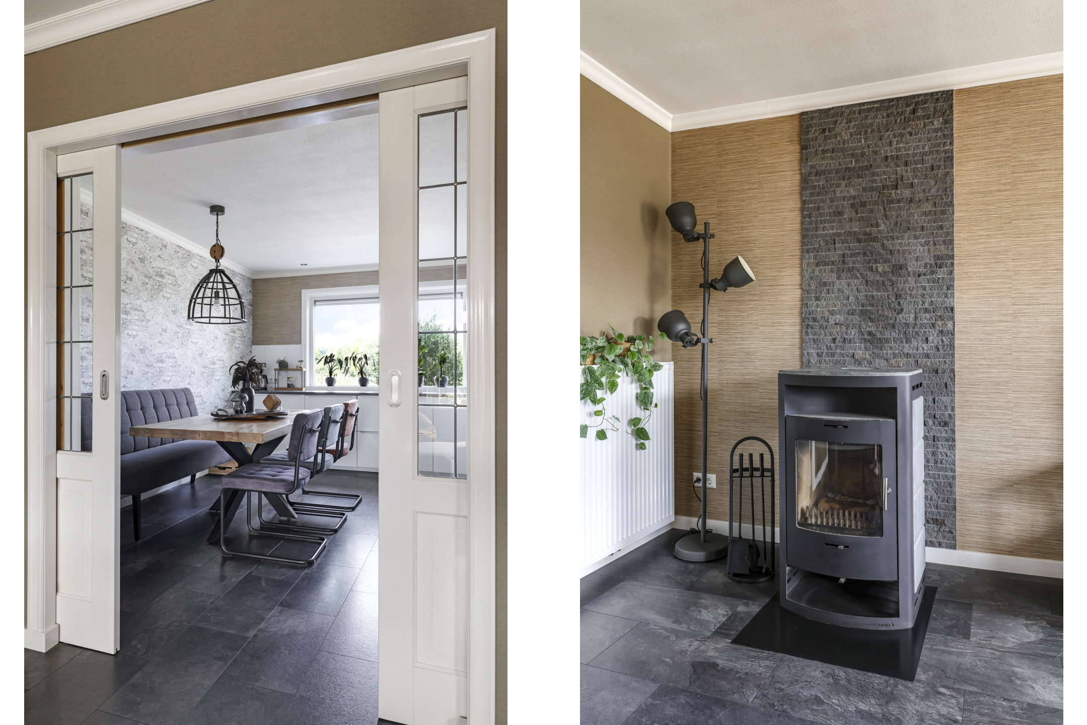 – Glas-in-lood ensuite deuren tussen woonkamer en keuken