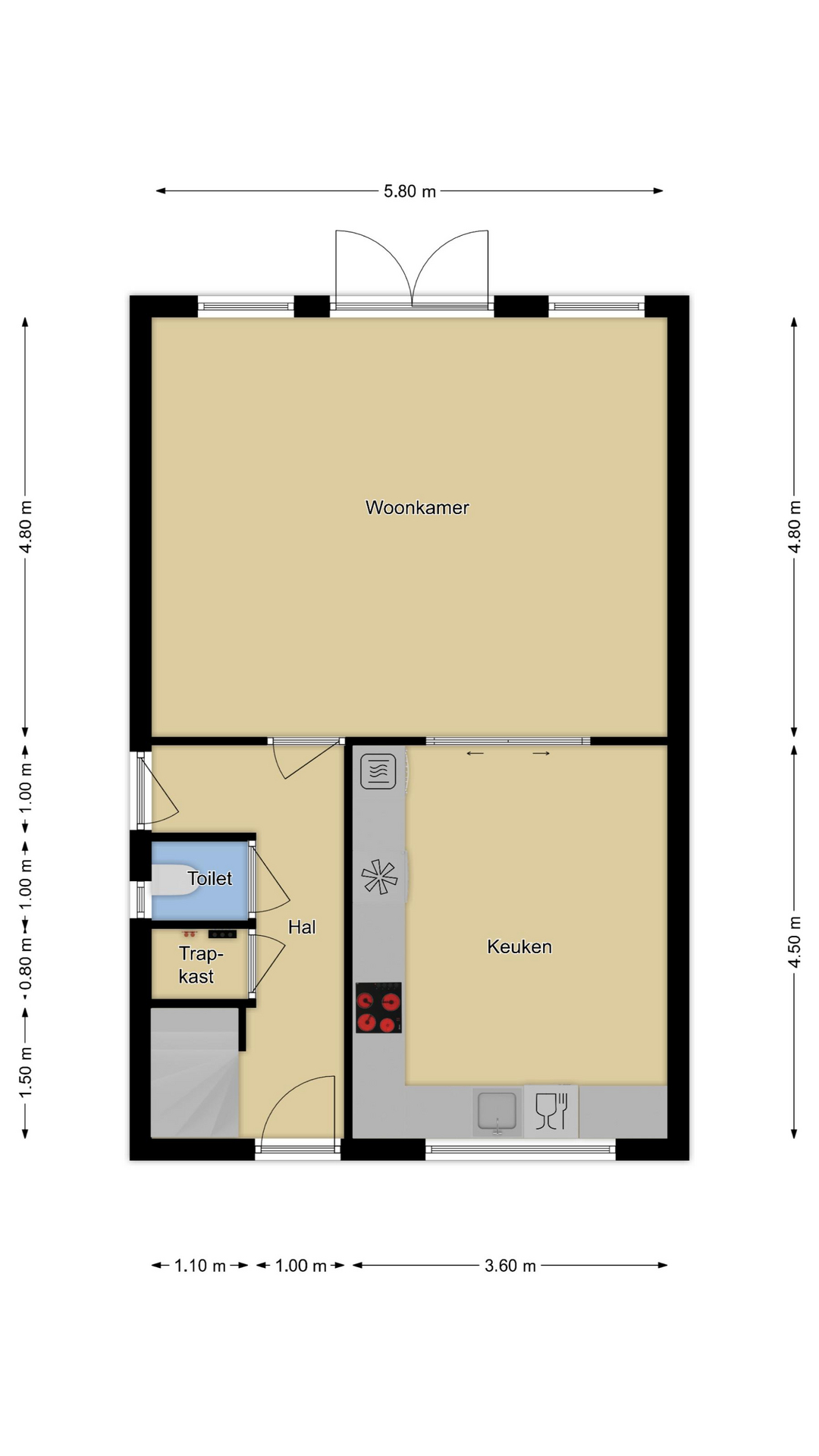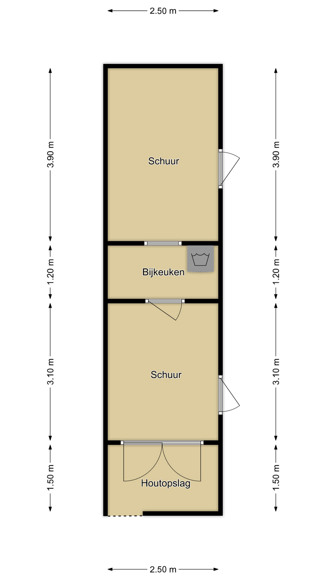 – Openslaande deuren, nu niet in gebruik door aanwezigheid houthok